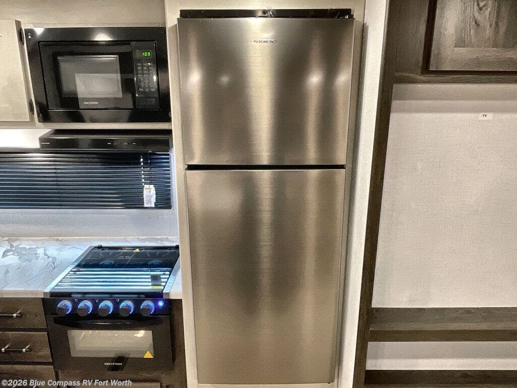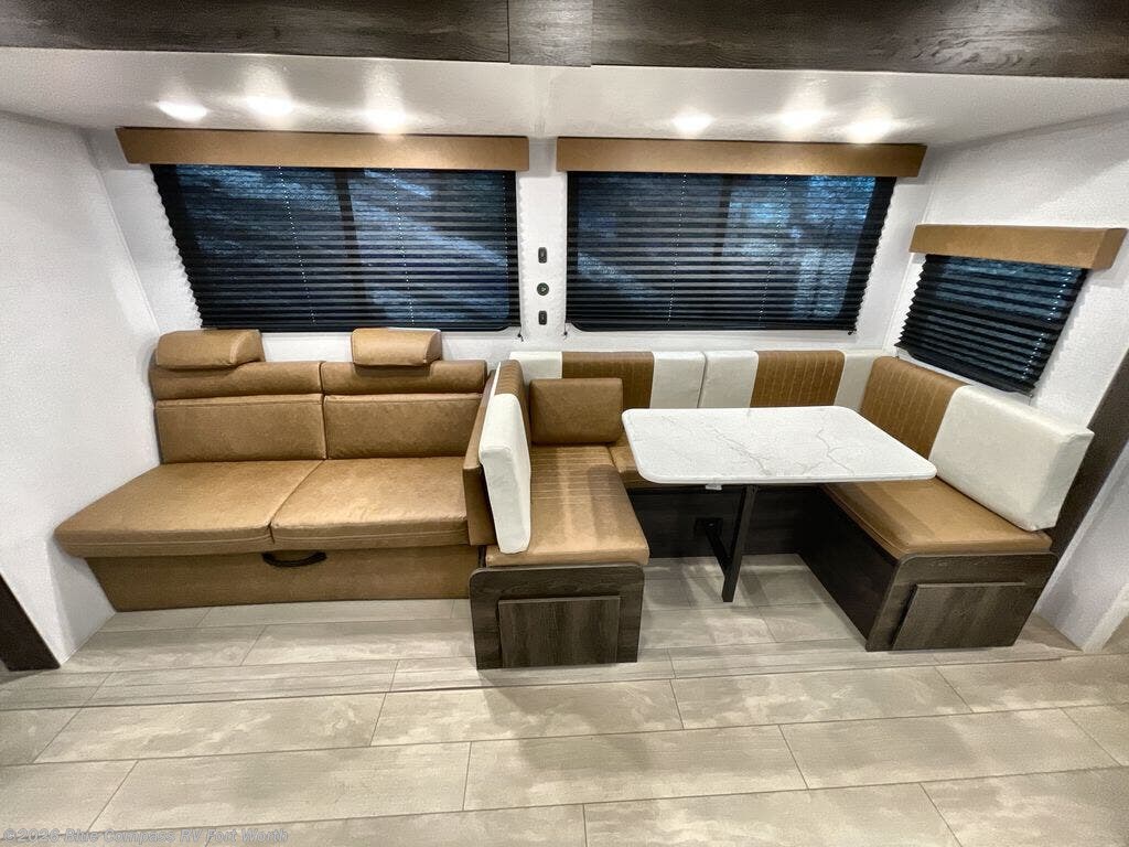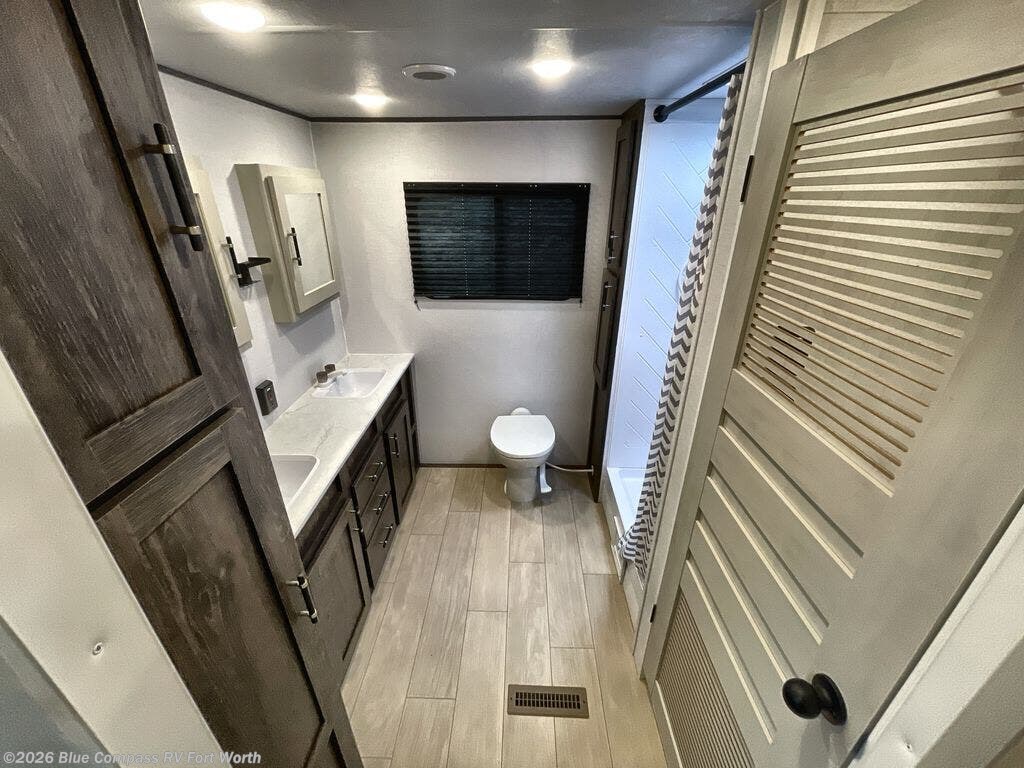 You need this award-winning travel trailer for your next weekend getaway! The full rear bathroom is decked out in features you're going to love like the dual-sink vanity for two to get ready at once, the linen closet next to the 30" x 36" shower and the second linen closet across from the closet with washer and dryer prep. After a fun-filled day outdoors, you can head inside and relax on either the 60" jackknife sofa and enjoy the entertainment center with a fireplace or grab a snack from the 10-cu. ft. refrigerator and play a few card games at the U-shaped dinette. The front private bedroom features a 60" x 74" RV queen bed with shirt closets on either side of it to keep your clothes looking nice!