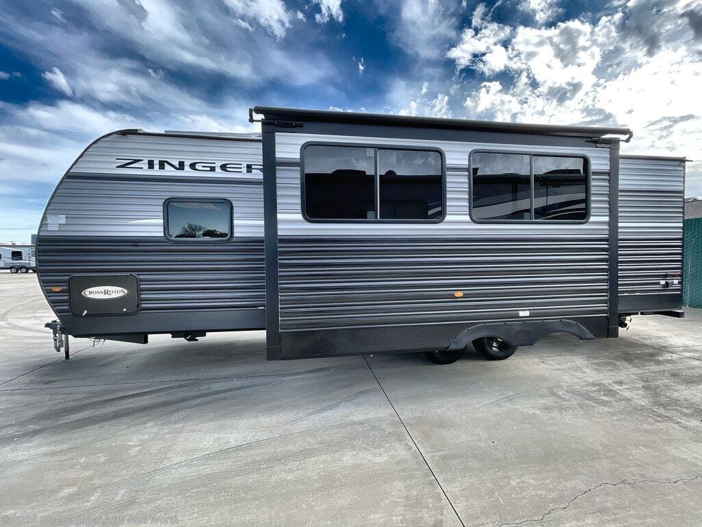Lead your family to a great vacation getaway in any one of these CrossRoads RV Zinger travel trailers! They feature an aerodynamic front end, Keyed-Alike door locks, Secure Stance entry steps, and exterior speakers with LED accents. The interior of each model includes kitchen backsplash and pressed countertops, along with generous storage, designer valances, and LED lighting to keep your space well lit. You will also appreciate USB ports to keep your electronics charged up, and there is an AM/FM stereo with a Bluetooth soundbar to keep the party going!