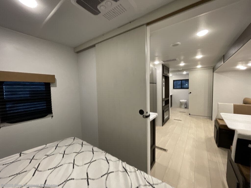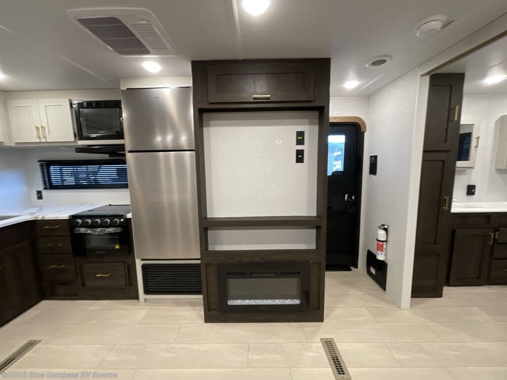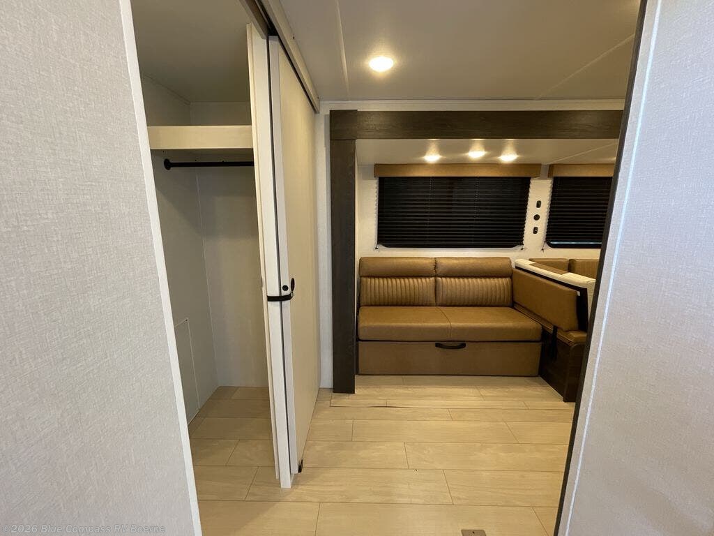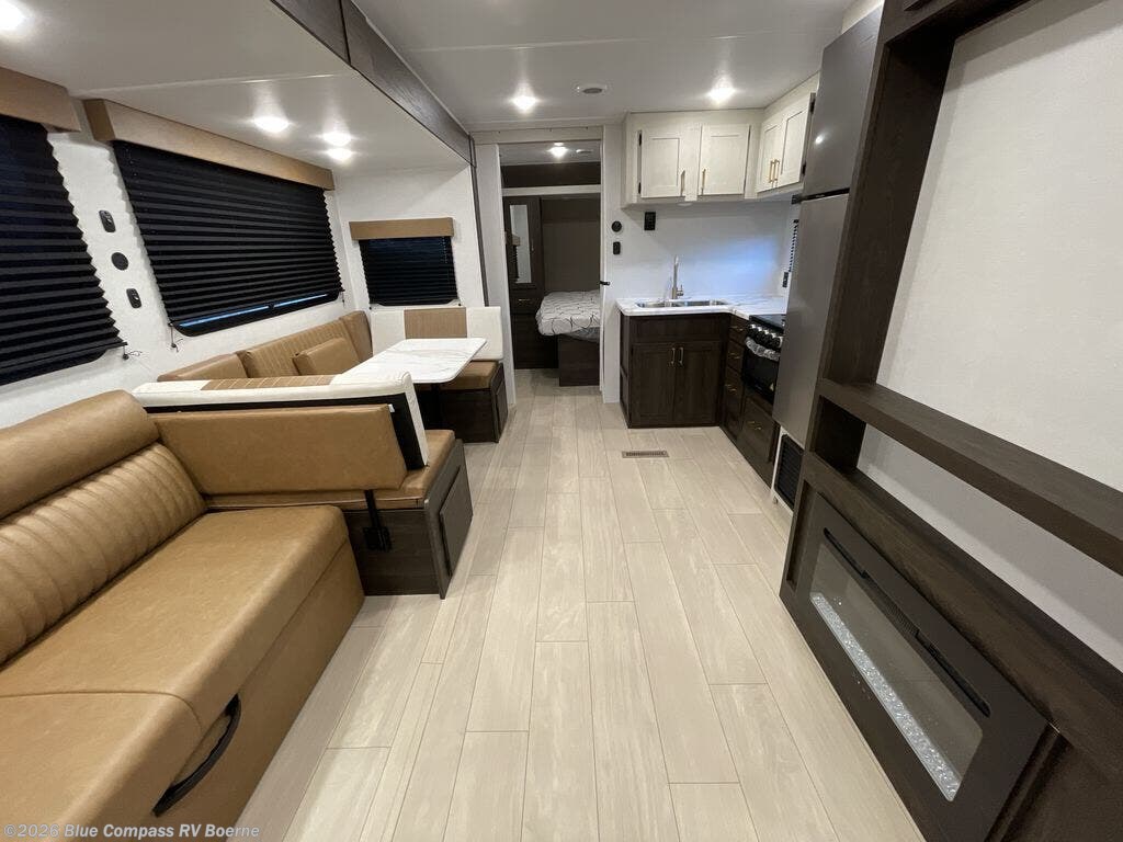 You need this award-winning travel trailer for your next weekend getaway! The full rear bathroom is decked out in features you're going to love like the dual-sink vanity for two to get ready at once, the linen closet next to the 30" x 36" shower and the second linen closet across from the closet with washer and dryer prep. After a fun-filled day outdoors, you can head inside and relax on either the 60" jackknife sofa and enjoy the entertainment center with a fireplace or grab a snack from the 10-cu. ft. refrigerator and play a few card games at the U-shaped dinette. The front private bedroom features a 60" x 74" RV queen bed with shirt closets on either side of it to keep your clothes looking nice!