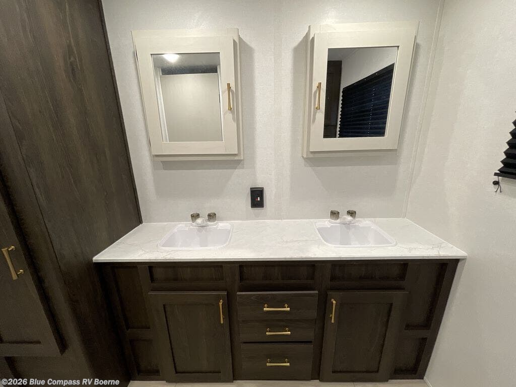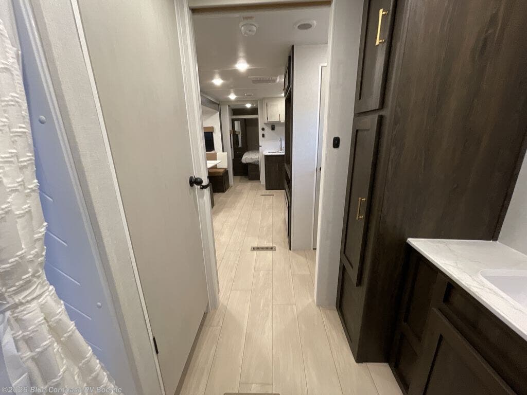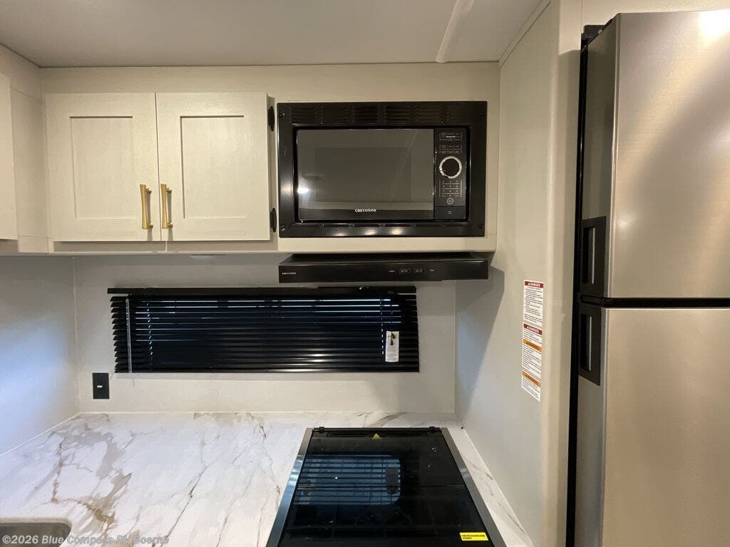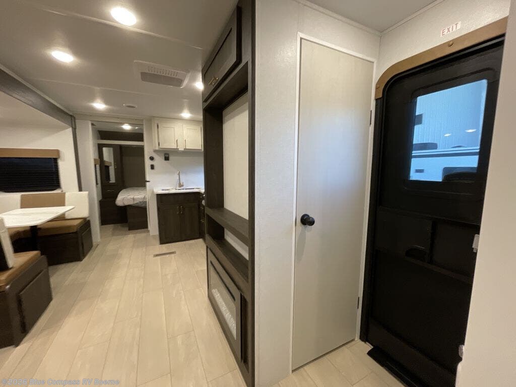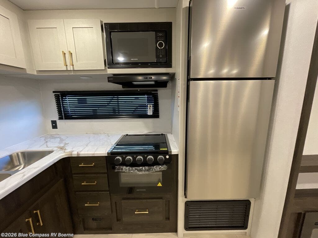You need this award-winning travel trailer for your next weekend getaway! The full rear bathroom is decked out in features you're going to love like the dual-sink vanity for two to get ready at once, the linen closet next to the 30" x 36" shower and the second linen closet across from the closet with washer and dryer prep. After a fun-filled day outdoors, you can head inside and relax on either the 60" jackknife sofa and enjoy the entertainment center with a fireplace or grab a snack from the 10-cu. ft. refrigerator and play a few card games at the U-shaped dinette. The front private bedroom features a 60" x 74" RV queen bed with shirt closets on either side of it to keep your clothes looking nice!
