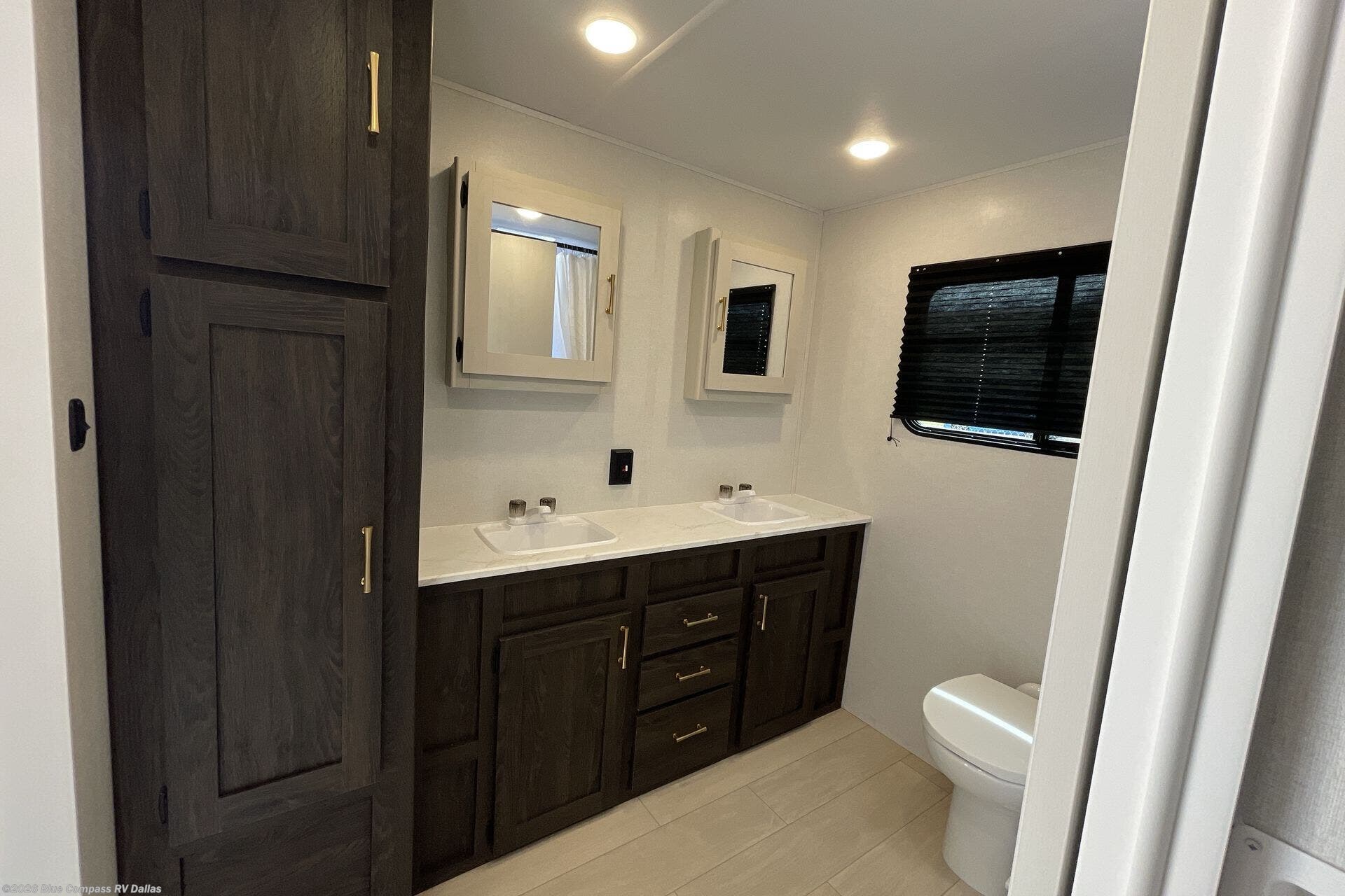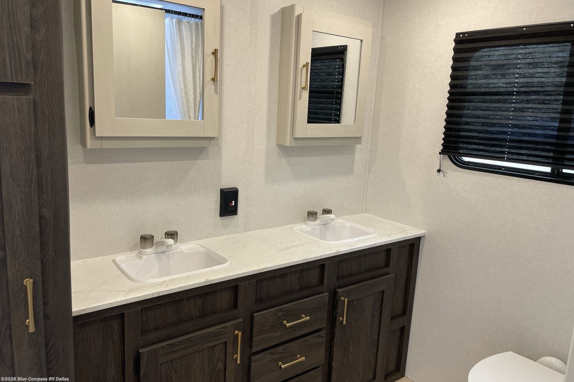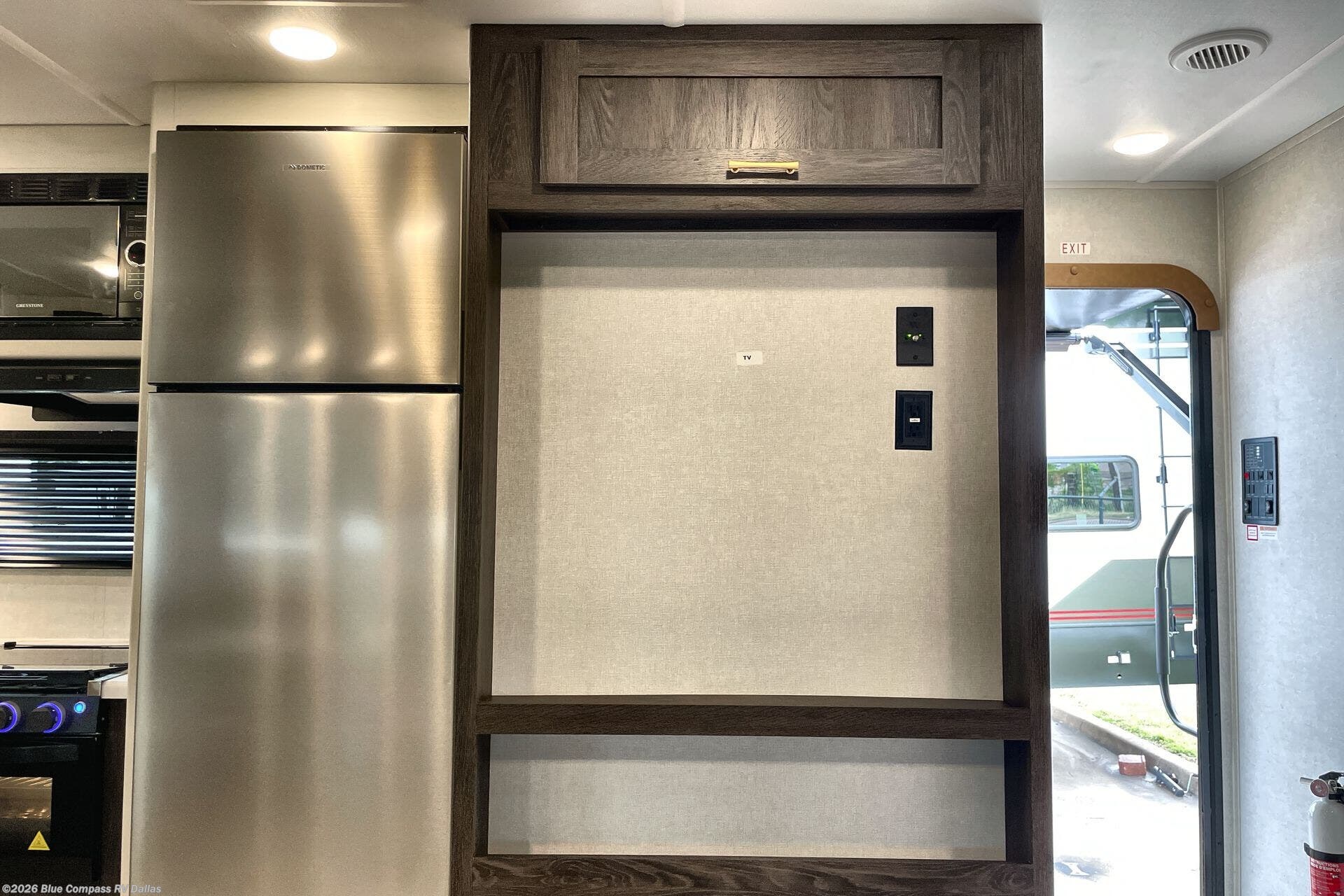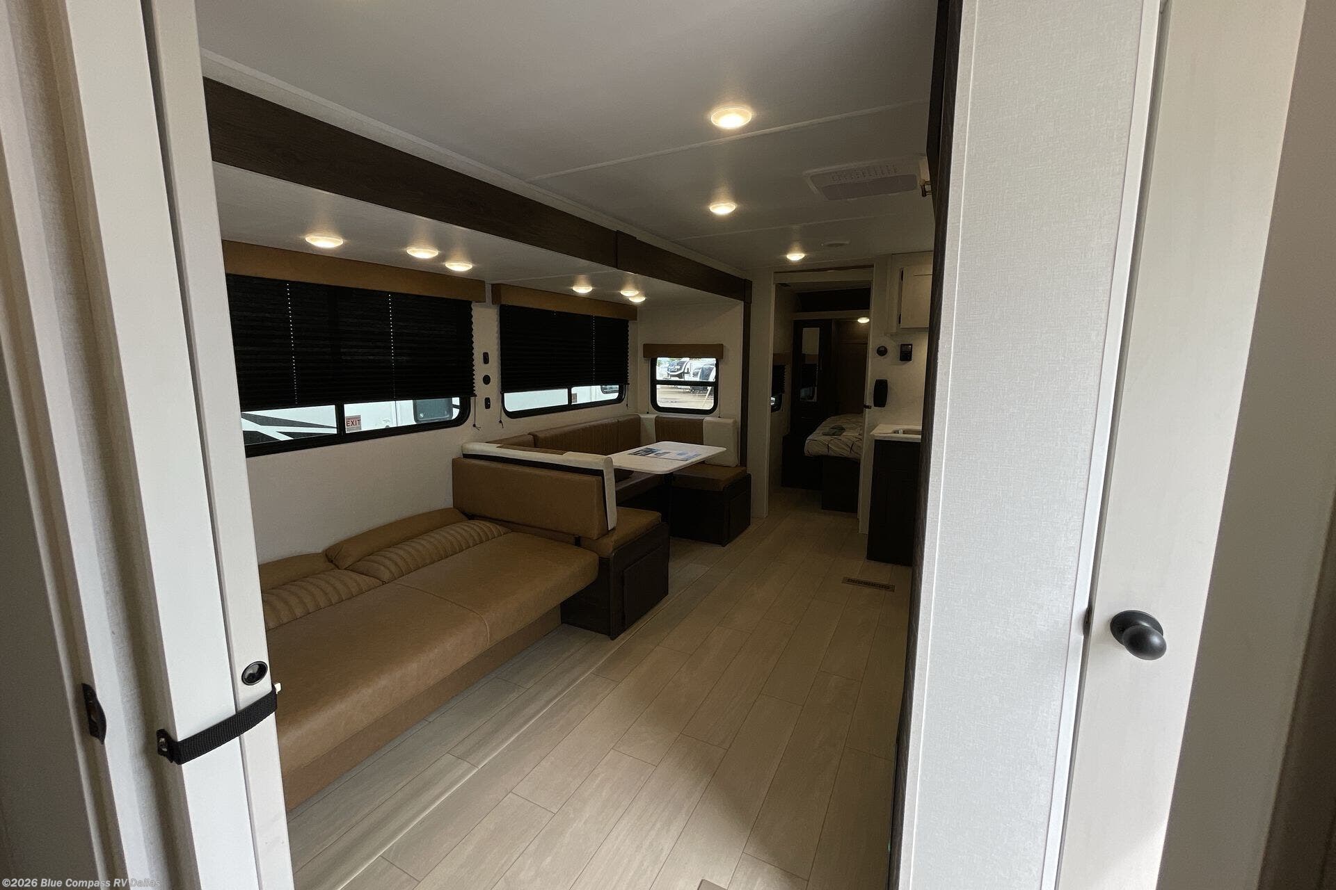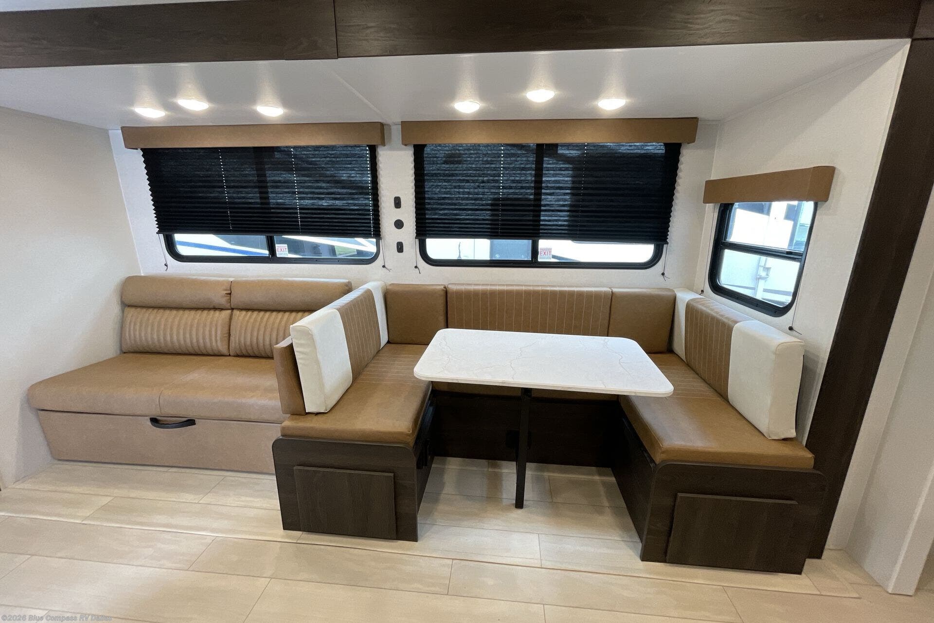 You need this award-winning travel trailer for your next weekend getaway! The full rear bathroom is decked out in features you're going to love like the dual-sink vanity for two to get ready at once, the linen closet next to the 30" x 36" shower and the second linen closet across from the closet with washer and dryer prep. After a fun-filled day outdoors, you can head inside and relax on either the 60" jackknife sofa and enjoy the entertainment center with a fireplace or grab a snack from the 10-cu. ft. refrigerator and play a few card games at the U-shaped dinette. The front private bedroom features a 60" x 74" RV queen bed with shirt closets on either side of it to keep your clothes looking nice!
