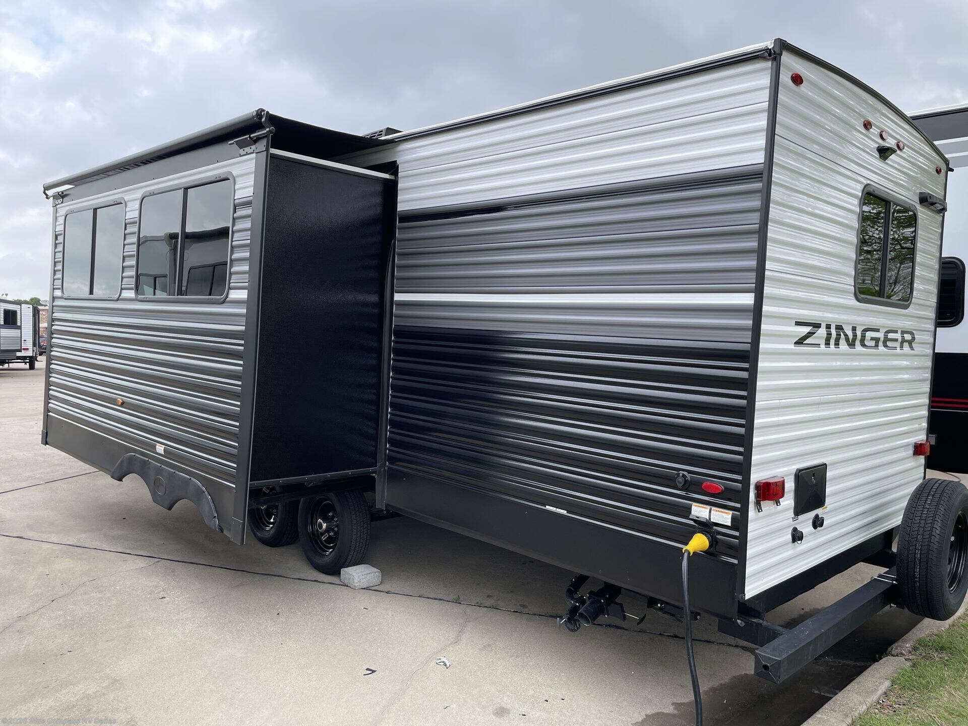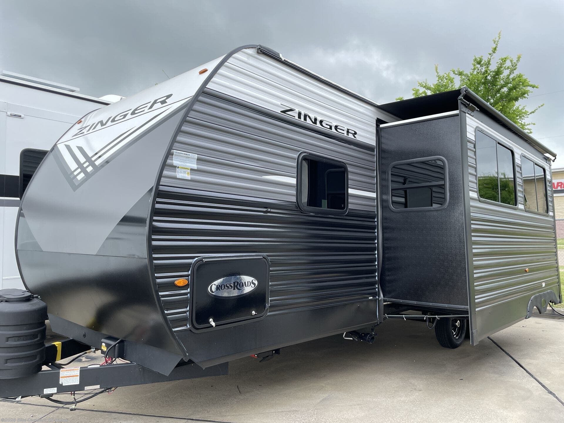 Lead your family to a great vacation getaway in any one of these CrossRoads RV Zinger travel trailers! They feature an aerodynamic front end, Keyed-Alike door locks, Secure Stance entry steps, and exterior speakers with LED accents. The interior of each model includes kitchen backsplash and pressed countertops, along with generous storage, designer valances, and LED lighting to keep your space well lit. You will also appreciate USB ports to keep your electronics charged up, and there is an AM/FM stereo with a Bluetooth soundbar to keep the party going!