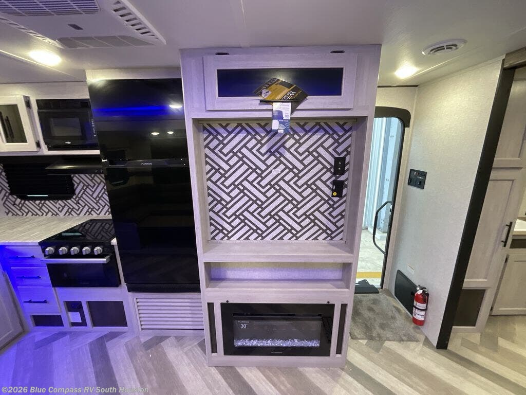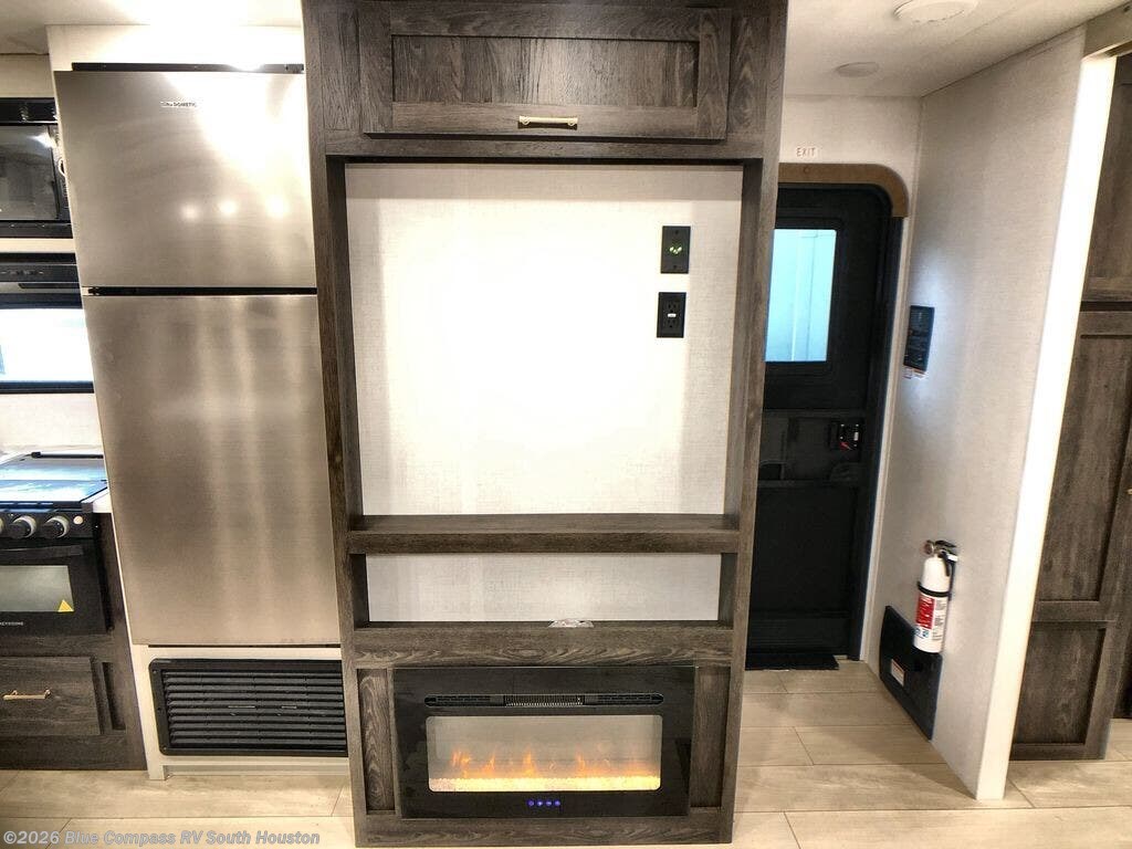 You need this award-winning travel trailer for your next weekend getaway! The full rear bathroom is decked out in features you're going to love like the dual-sink vanity for two to get ready at once, the linen closet next to the 30" x 36" shower and the second linen closet across from the closet with washer and dryer prep. After a fun-filled day outdoors, you can head inside and relax on either the 60" jackknife sofa and enjoy the entertainment center with a fireplace or grab a snack from the 10-cu. ft. refrigerator and play a few card games at the U-shaped dinette. The front private bedroom features a 60" x 74" RV queen bed with shirt closets on either side of it to keep your clothes looking nice!