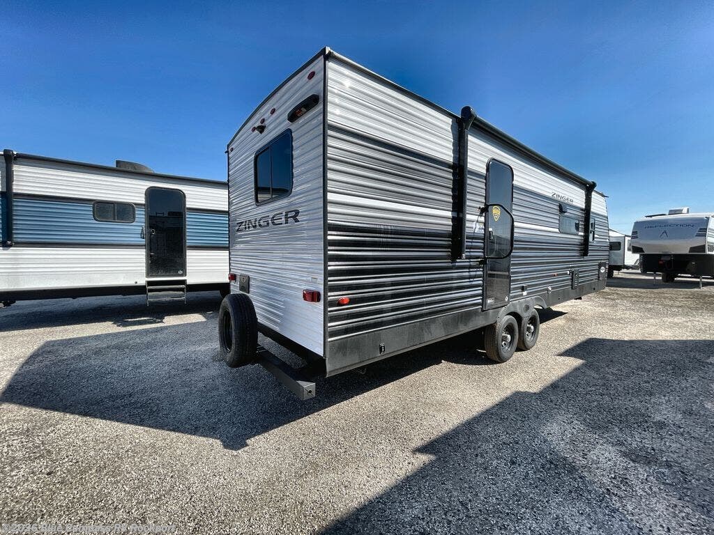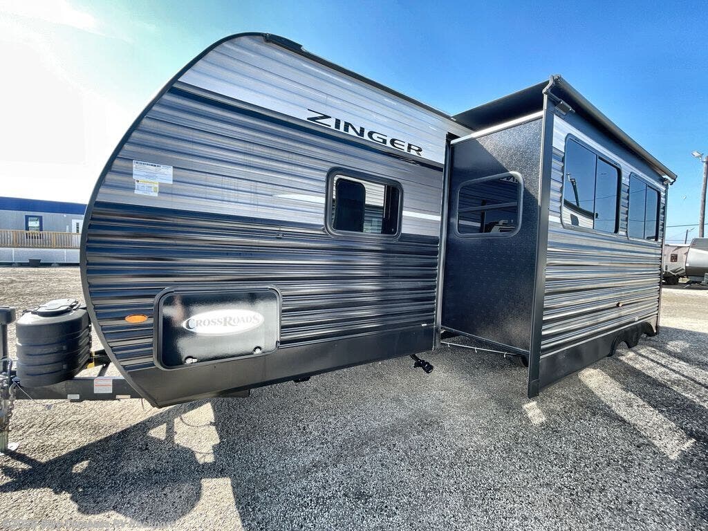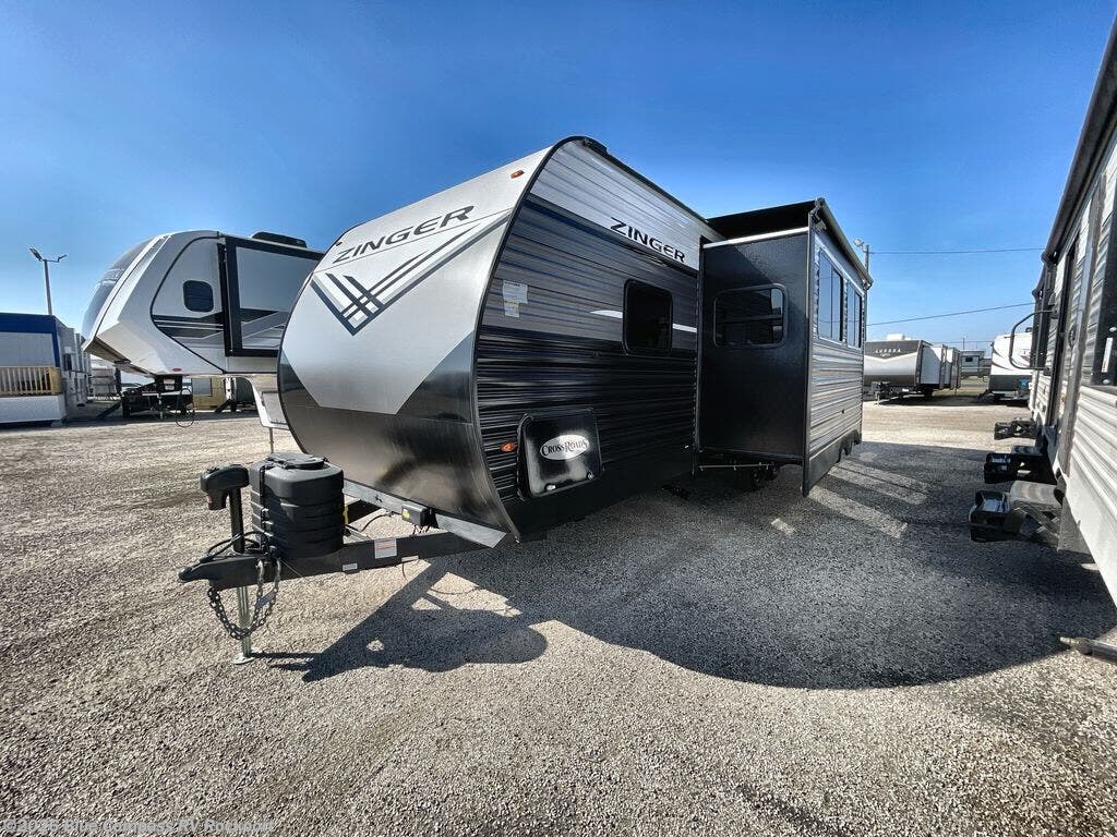 Lead your family to a great vacation getaway in any one of these CrossRoads RV Zinger travel trailers! They feature an aerodynamic front end, Keyed-Alike door locks, Secure Stance entry steps, and exterior speakers with LED accents. The interior of each model includes kitchen backsplash and pressed countertops, along with generous storage, designer valances, and LED lighting to keep your space well lit. You will also appreciate USB ports to keep your electronics charged up, and there is an AM/FM stereo with a Bluetooth soundbar to keep the party going!