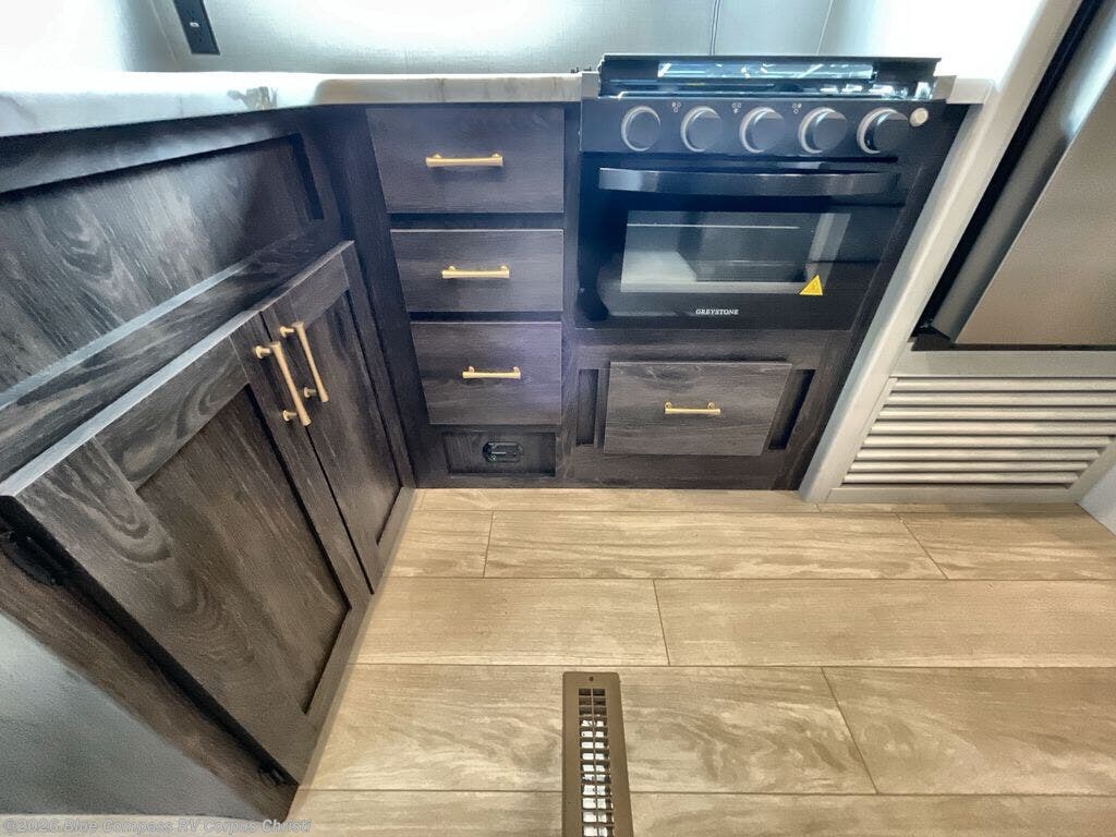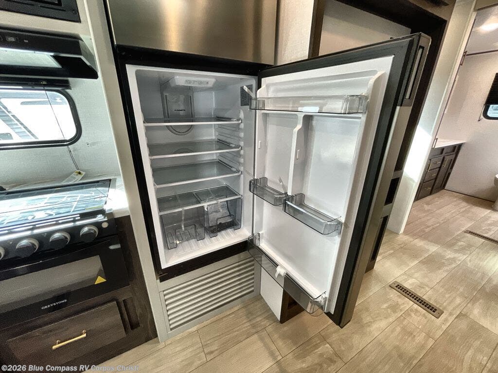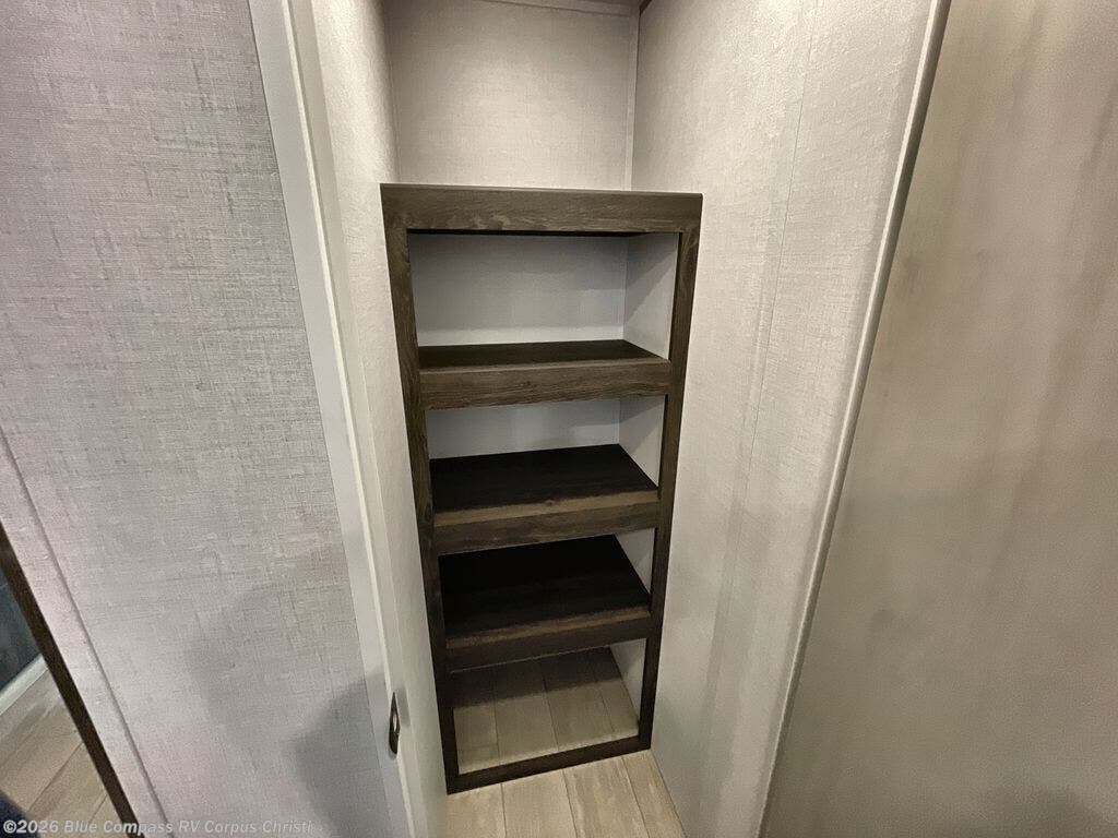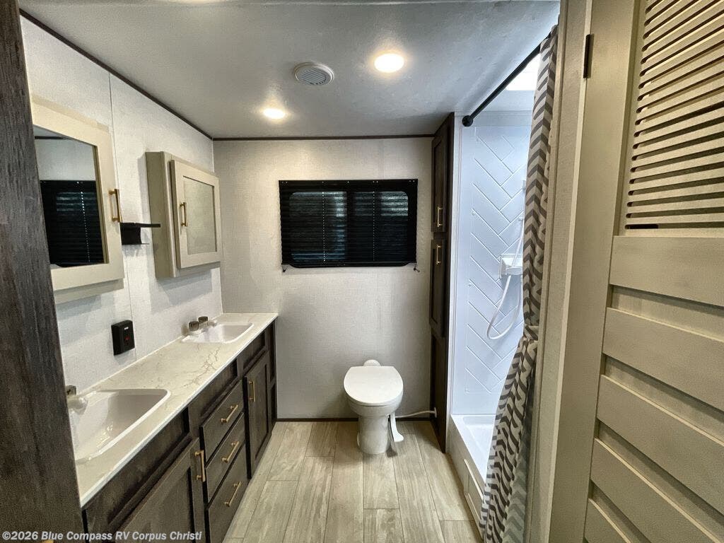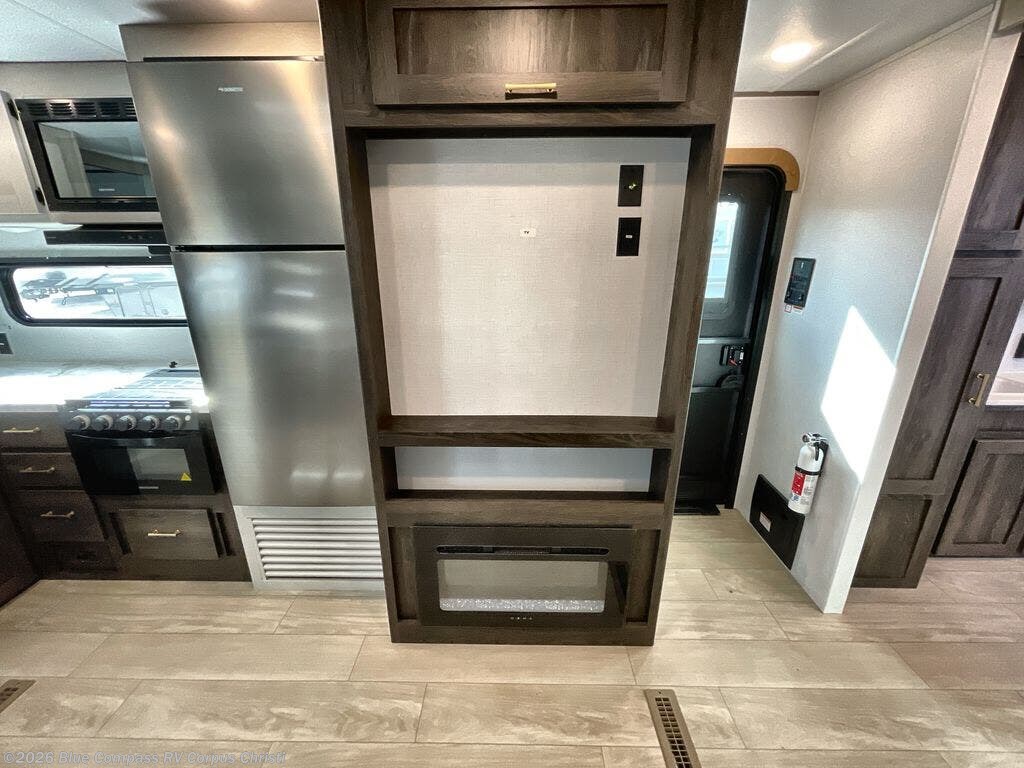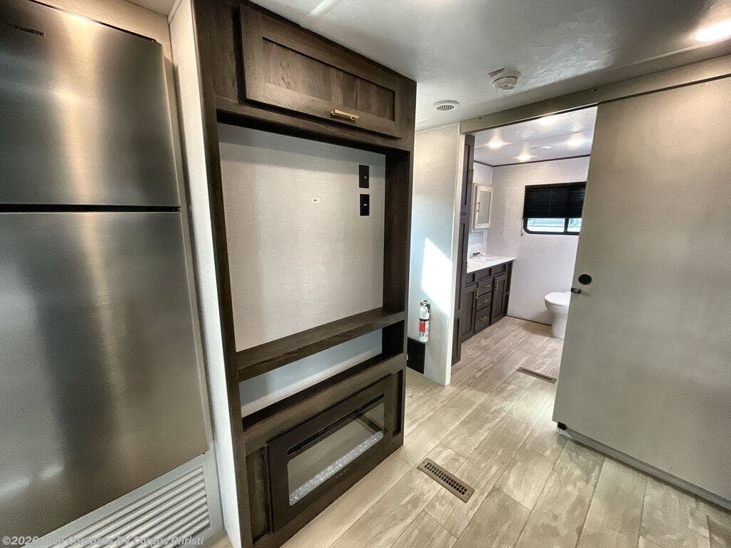 You need this award-winning travel trailer for your next weekend getaway! The full rear bathroom is decked out in features you're going to love like the dual-sink vanity for two to get ready at once, the linen closet next to the 30" x 36" shower and the second linen closet across from the closet with washer and dryer prep. After a fun-filled day outdoors, you can head inside and relax on either the 60" jackknife sofa and enjoy the entertainment center with a fireplace or grab a snack from the 10-cu. ft. refrigerator and play a few card games at the U-shaped dinette. The front private bedroom features a 60" x 74" RV queen bed with shirt closets on either side of it to keep your clothes looking nice!
