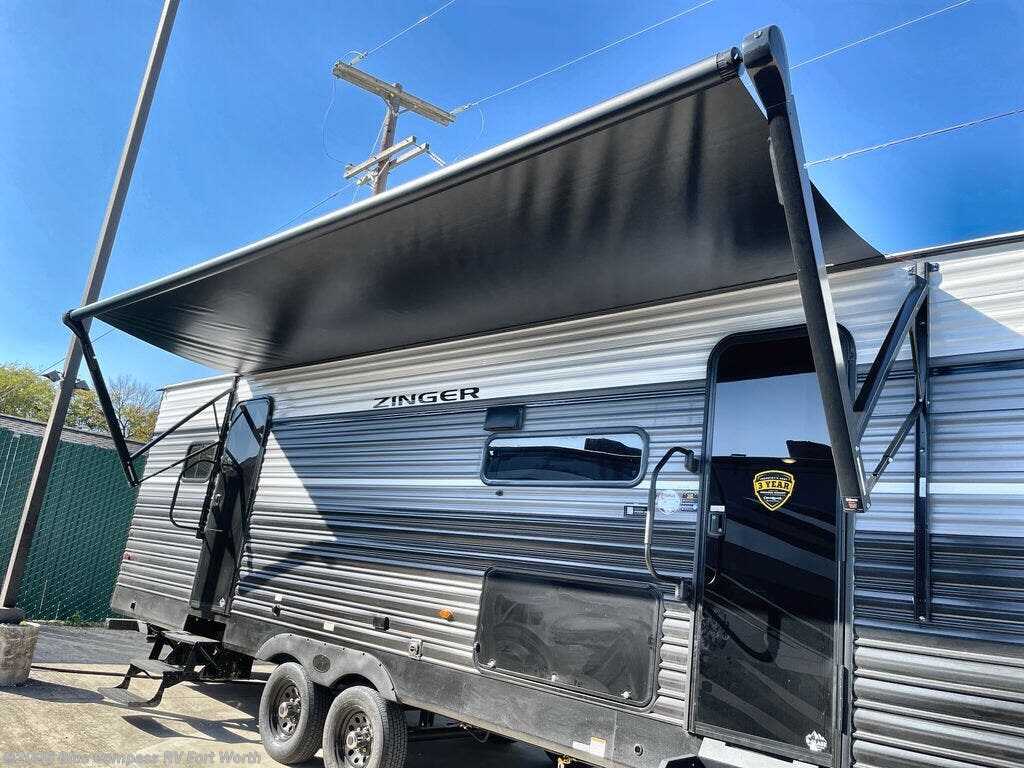 Lead your family to a great vacation getaway in any one of these CrossRoads RV Zinger travel trailers! They feature an aerodynamic front end, Keyed-Alike door locks, Secure Stance entry steps, and exterior speakers with LED accents. The interior of each model includes kitchen backsplash and pressed countertops, along with generous storage, designer valances, and LED lighting to keep your space well lit. You will also appreciate USB ports to keep your electronics charged up, and there is an AM/FM stereo with a Bluetooth soundbar to keep the party going!