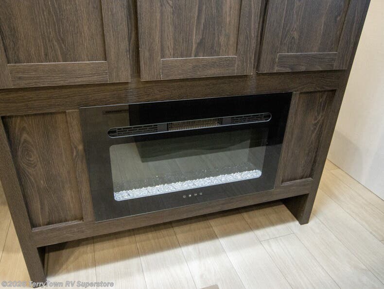 With dual entry doors, you will experience a smooth flow of traffic in and out of this travel trailer! The rear private bunkhouse includes two sets of bunk beds plus a fifth bunk over a jack knife sofa, so your kids can invite a few friends to come along. Across from the full bathroom is a linen closet to keep your towels close by and a U-shaped dinette to enjoy your meals at, play games, and even transform into an extra sleeping space. At night you can either relax on the 60" jackknife sofa by the fireplace or head to the front private bedroom and lie down on the 60" x 74" RV queen bed with closets on either side to keep your clothes looking their best!