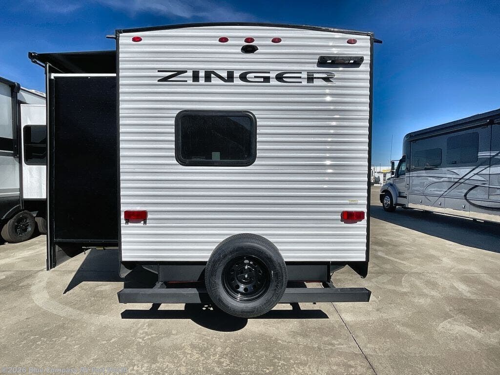 Lead your family to a great vacation getaway in any one of these CrossRoads RV Zinger travel trailers! They feature an aerodynamic front end, Keyed-Alike door locks, Secure Stance entry steps, and exterior speakers with LED accents. The interior of each model includes kitchen backsplash and pressed countertops, along with generous storage, designer valances, and LED lighting to keep your space well lit. You will also appreciate USB ports to keep your electronics charged up, and there is an AM/FM stereo with a Bluetooth soundbar to keep the party going!