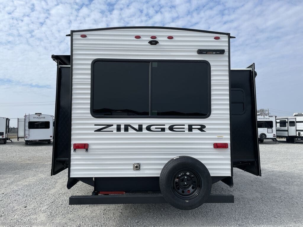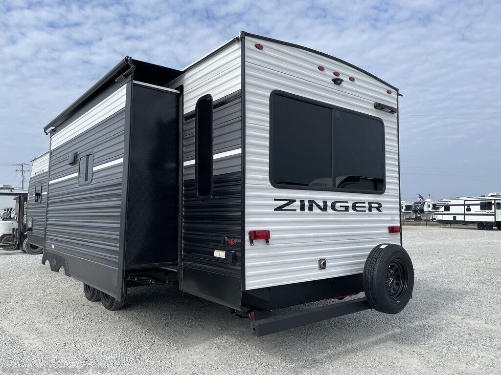 Lead your family to a great vacation getaway in any one of these CrossRoads RV Zinger travel trailers! They feature an aerodynamic front end, Keyed-Alike door locks, Secure Stance entry steps, and exterior speakers with LED accents. The interior of each model includes kitchen backsplash and pressed countertops, along with generous storage, designer valances, and LED lighting to keep your space well lit. You will also appreciate USB ports to keep your electronics charged up, and there is an AM/FM stereo with a Bluetooth soundbar to keep the party going!