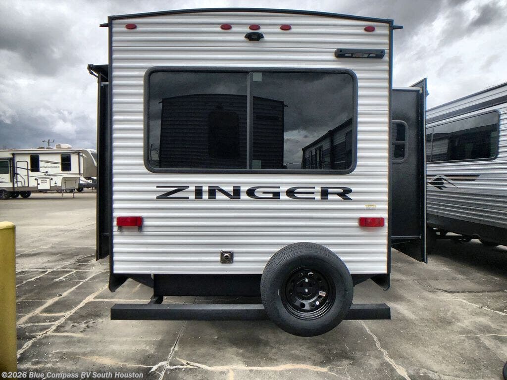 Lead your family to a great vacation getaway in any one of these CrossRoads RV Zinger travel trailers! They feature an aerodynamic front end, Keyed-Alike door locks, Secure Stance entry steps, and exterior speakers with LED accents. The interior of each model includes kitchen backsplash and pressed countertops, along with generous storage, designer valances, and LED lighting to keep your space well lit. You will also appreciate USB ports to keep your electronics charged up, and there is an AM/FM stereo with a Bluetooth soundbar to keep the party going!