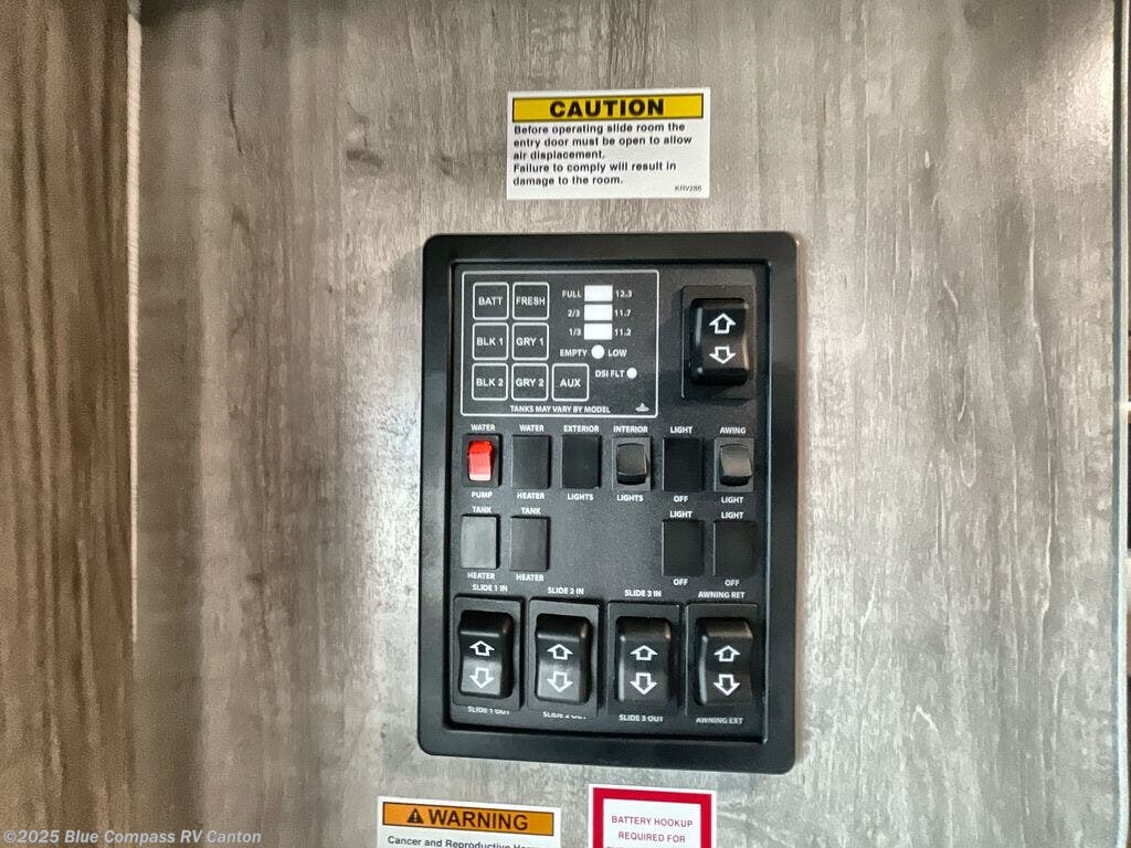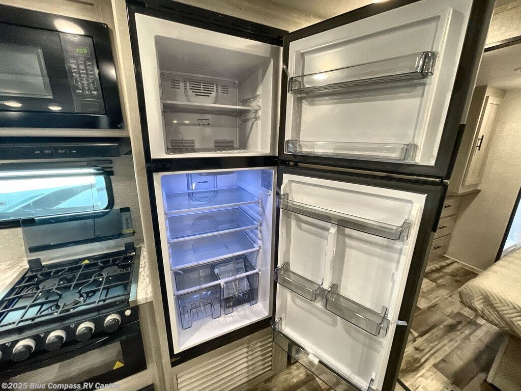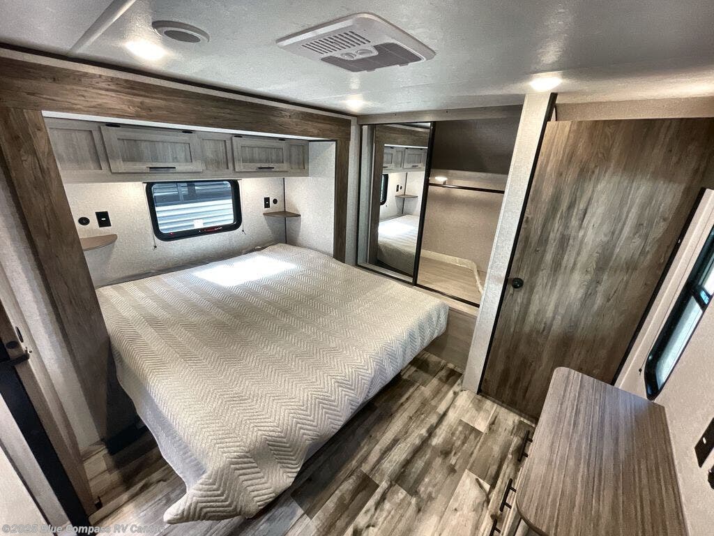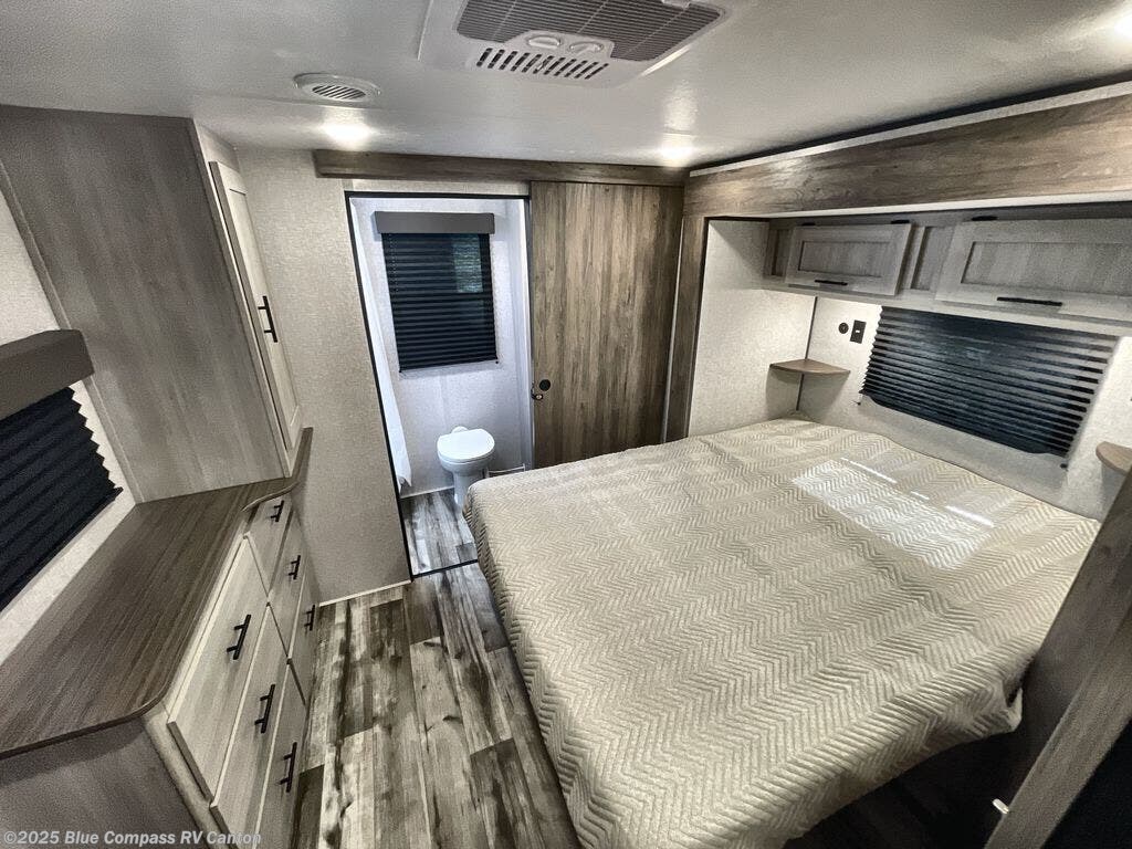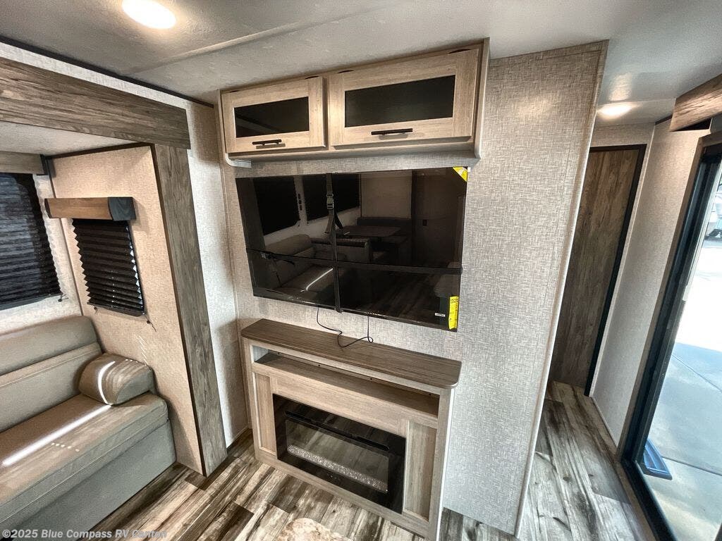 Pack your bags and invite your friends to tag along in this travel trailer! The master suite has an RV queen bed slide across from a dresser next to a wardrobe and it's own rear full bathroom with a 30" x 36" shower. The front private bedroom has a king bed slide across from a dresser and a front wardrobe, washer and dryer prep, plus an entrance into the dual entry bathroom which has a 34" radius shower. Both bedrooms have an entrance/exit door to the unit, and the 60" x 72" patio door leads directly into the kitchen/living area. The chef can prepare delicious meals with the three burner cooktop then you can enjoy them at the 38" booth dinette next to a 60" jackknife sofa for a relaxing evening by the 50" TV at the entertainment center.
