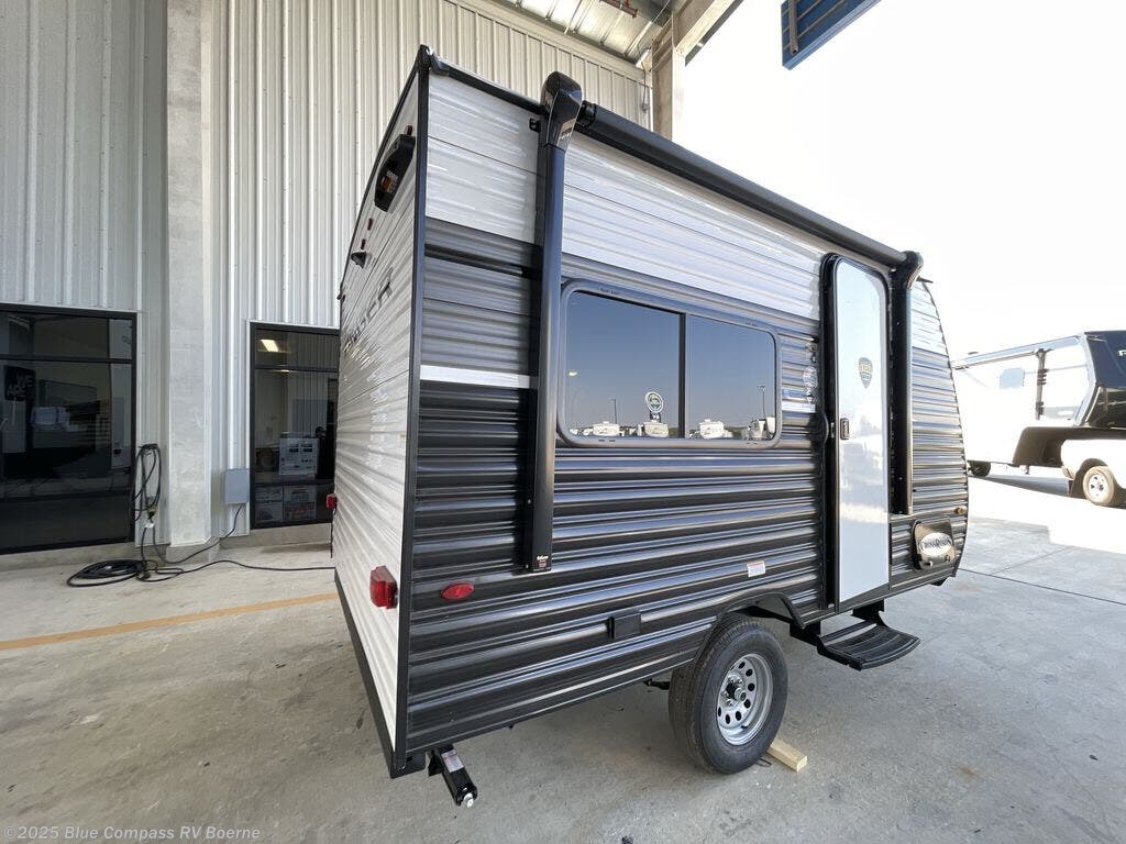 This compact, yet cozy travel trailer is perfect for weekend trips to the lake. There is a full-size bed up front with an overhead cabinet for your belongings. A functional kitchenette will let you make meals for your crew, and there is a booth dinette where you can dine together. There are also overhead cabinets above the dinette for snacks, board games and more!