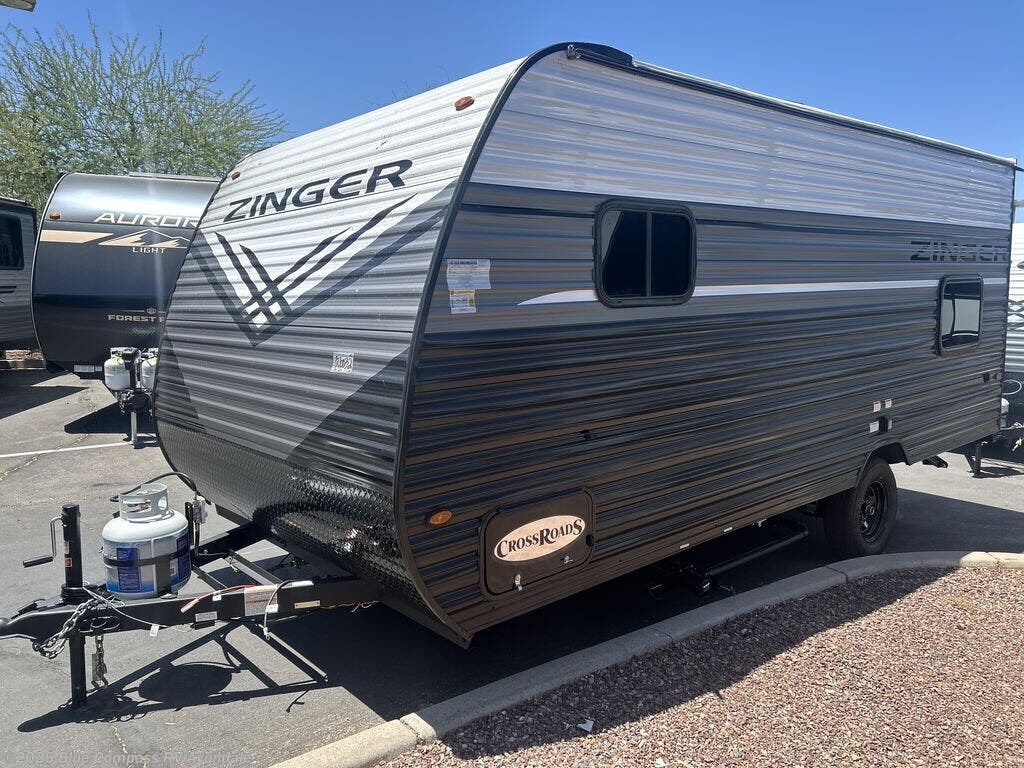 Join the CrossRoads family with a Zinger Lite travel trailer! You'll enjoy an abundance of standard features you would usually find with higher priced travel trailers. Each model features a Super Flex Alpha Roof and front diamond plate for added strength and durability. There is also an electric awning outdoors, along with pass-through storage, rear ladder prep, and a tankless on-demand water heater for added convenience. The interior features pleated shades/mini blinds/fabric window treatments, a 12V refrigerator, comfortable seating and seating spaces, plus plenty of storage for your personal belongings and camp gear!