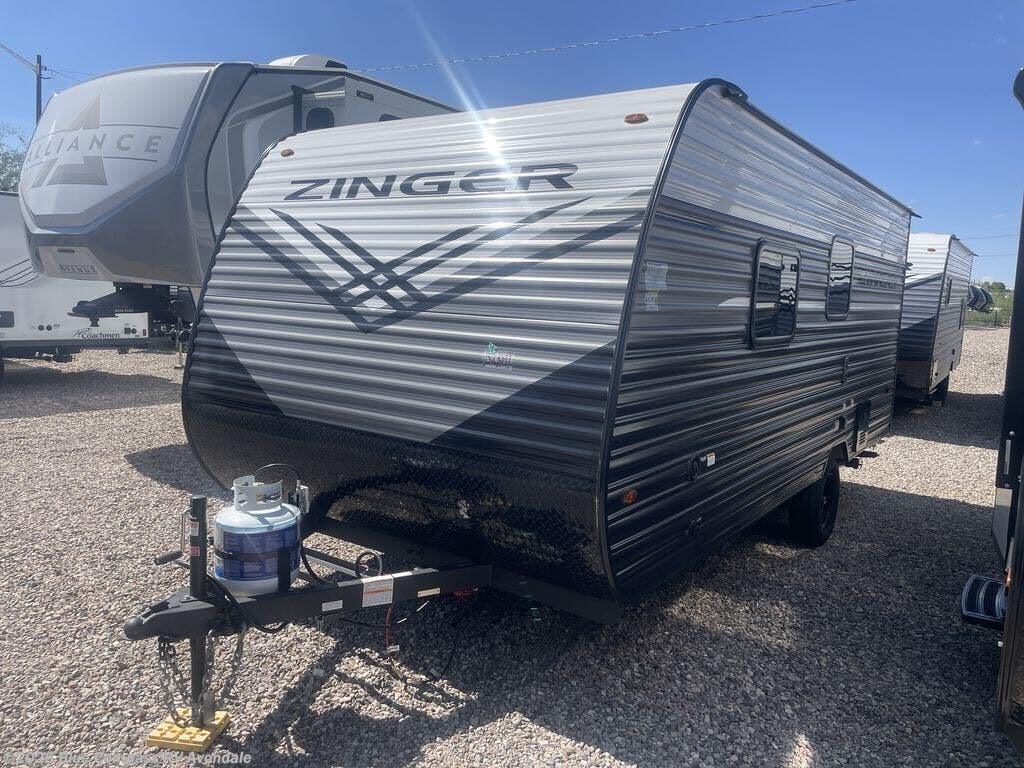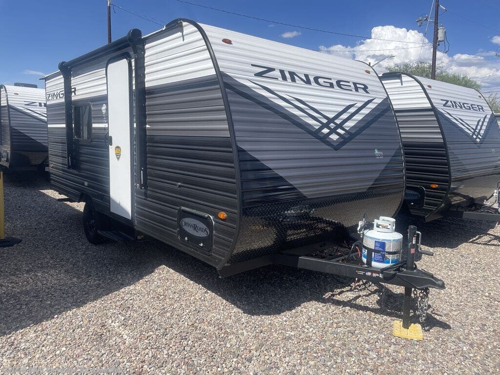 Join the CrossRoads family with a Zinger Lite travel trailer! You'll enjoy an abundance of standard features you would usually find with higher priced travel trailers. Each model features a Super Flex Alpha Roof and front diamond plate for added strength and durability. There is also an electric awning outdoors, along with pass-through storage, rear ladder prep, and a tankless on-demand water heater for added convenience. The interior features pleated shades/mini blinds/fabric window treatments, a 12V refrigerator, comfortable seating and seating spaces, plus plenty of storage for your personal belongings and camp gear!
