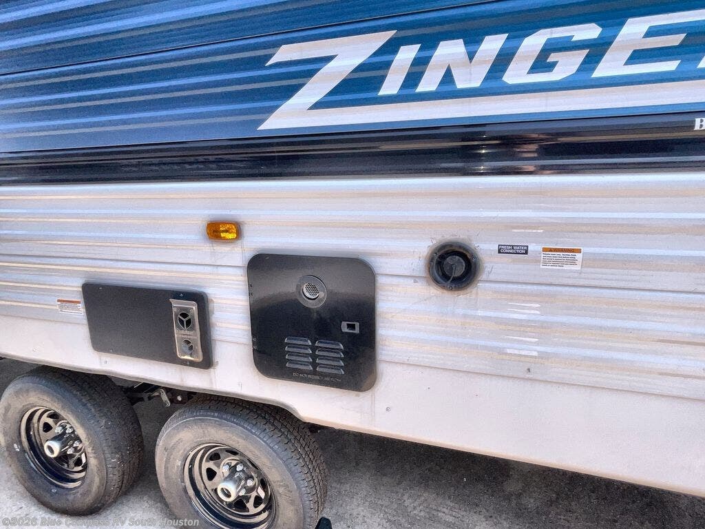Join the CrossRoads family with a Zinger Lite travel trailer! You'll enjoy an abundance of standard features you would usually find with higher priced travel trailers. Each model features a Super Flex Alpha Roof and front diamond plate for added strength and durability. There is also an electric awning outdoors, along with pass-through storage, rear ladder prep, and a tankless on-demand water heater for added convenience. The interior features pleated shades/mini blinds/fabric window treatments, a 12V refrigerator, comfortable seating and seating spaces, plus plenty of storage for your personal belongings and camp gear!