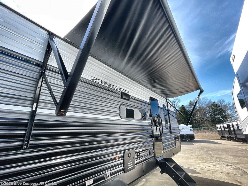 Join the CrossRoads family with a Zinger Lite travel trailer! You'll enjoy an abundance of standard features you would usually find with higher priced travel trailers. Each model features a Super Flex Alpha Roof and front diamond plate for added strength and durability. There is also an electric awning outdoors, along with pass-through storage, rear ladder prep, and a tankless on-demand water heater for added convenience. The interior features pleated shades/mini blinds/fabric window treatments, a 12V refrigerator, comfortable seating and seating spaces, plus plenty of storage for your personal belongings and camp gear!