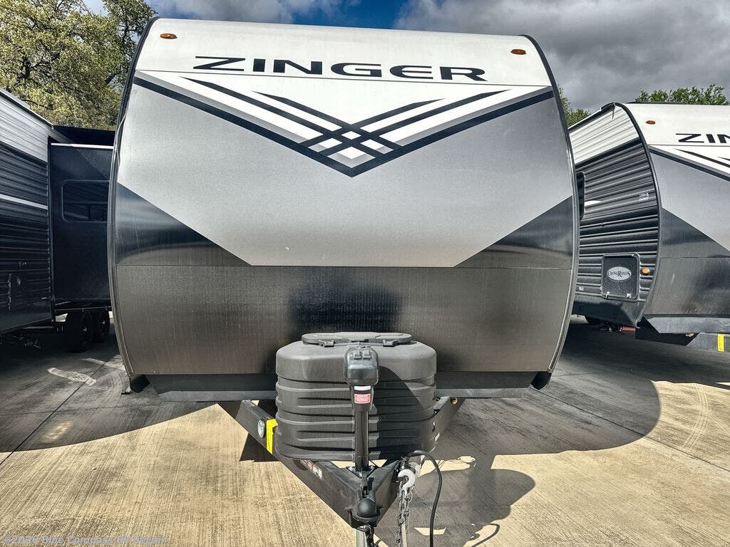Join the CrossRoads family with a Zinger Lite travel trailer! You'll enjoy an abundance of standard features you would usually find with higher priced travel trailers. Each model features a Super Flex Alpha Roof and front diamond plate for added strength and durability. There is also an electric awning outdoors, along with pass-through storage, rear ladder prep, and a tankless on-demand water heater for added convenience. The interior features pleated shades/mini blinds/fabric window treatments, a 12V refrigerator, comfortable seating and seating spaces, plus plenty of storage for your personal belongings and camp gear!