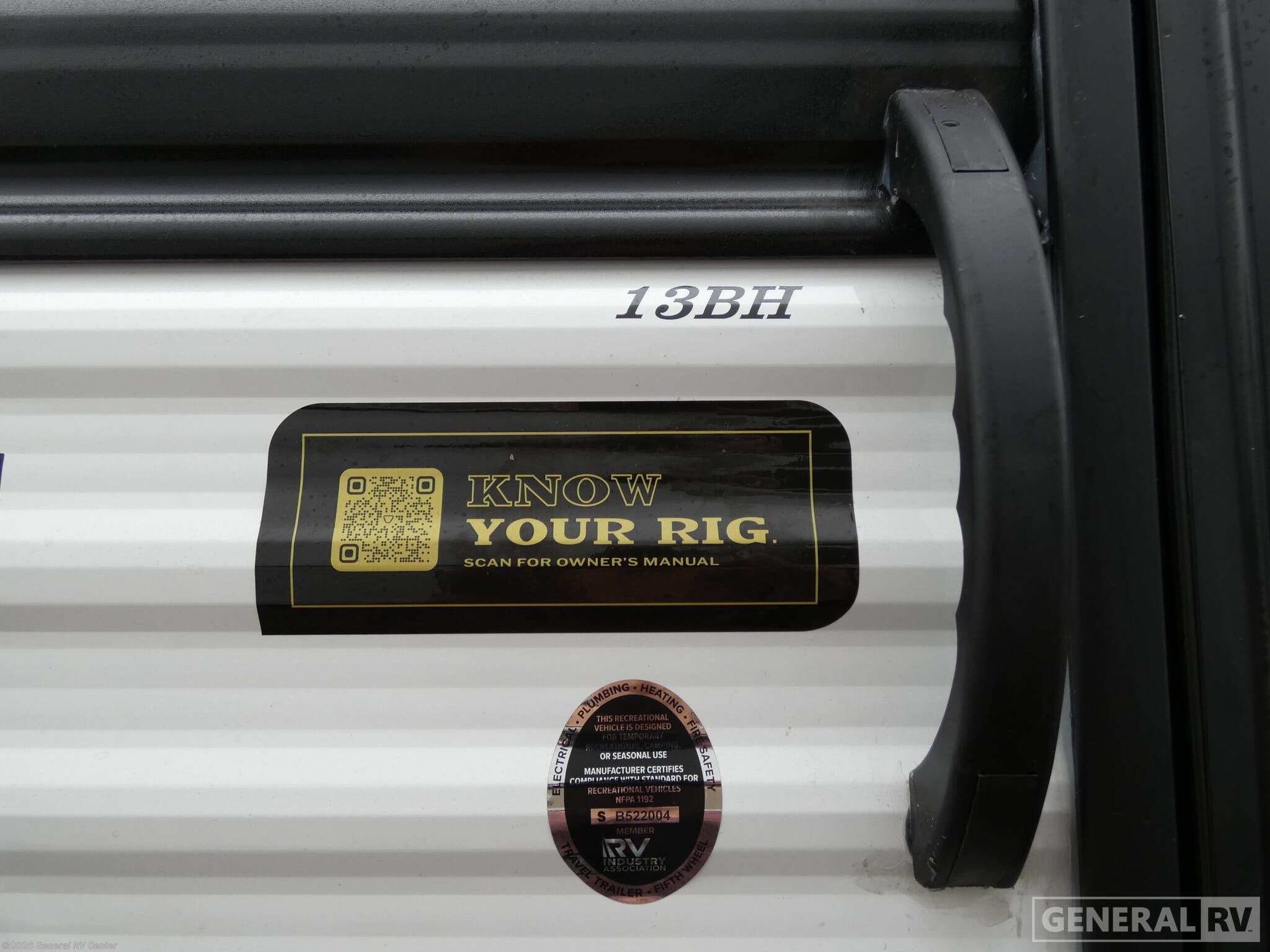 Dutchmen Aspen Trail Mini travel trailer 13BH highlights: Front Queen Bed 8' Power Awning Private Bath Sleeps Four This lightweight unit may surprise you with the comfort found inside. You can sleep comfortably each night on the front queen bed with overhead cabinets, while your guests or littles ones take the bunk beds with a hinged top bunk. A two-burner cooktop and microwave oven will let you make breakfast for everyone in the morning, and the private shower and toilet inside means you won't have to use the camp's facilities to get ready. Any Aspen Trail Mini travel trailer by Dutchmen RV will provide you and your family a lightweight and compact unit filled with comfort and style. Each unit features an 8' 0" wide-body chassis, a power awning, and tinted safety glass windows. The 6' 4" interior height and pleated night shades will make you feel right at home, and you'll appreciate ample storage space for your personal belongings, camp gear and more! Each model also includes a 20,000 BTU furnace and 8,000 BTU roof-mounted A/C to keep you comfortable!