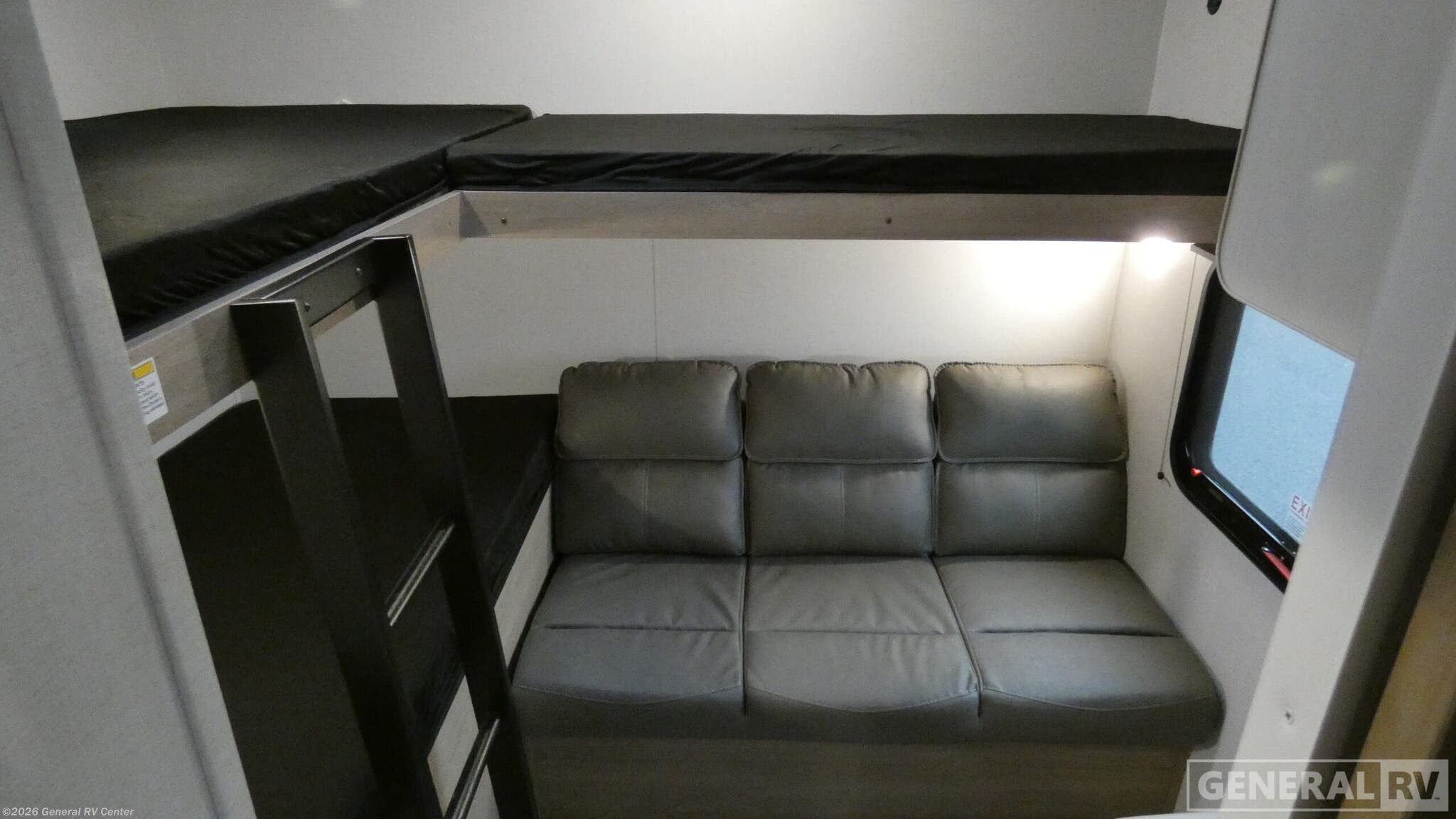 The private bunkhouse might be the main reason you chose this trailer or maybe it was the spacious interior, either way you will enjoy camping with your family and friends every chance you get. The bunkhouse offers triple bunk beds and a sofa, allowing four people to sleep in privacy. You will have your own bedroom up front to sleep on a residential queen bed with dual access, closets and windows to enjoy the campsite view. The full bathroom offers convenience, and the large slide out offers more floor space to move about. There is a booth dinette and jackknife sofa to relax on as well as provide more sleeping space for friends and family. The cook will have full amenities including a three burner range top, a galley sink with high rise faucet, plus a 10 cu. ft. 12V refrigerator to store the cold items. With any Aspen Trail LE travel trailer by Dutchmen, you will have front diamond plate protection, magnetic baggage door catches, and easy lube axles for smooth towing. The interior offers a Home Series interior design collection for an at-home feel, full extension drawer guides throughout, oversized windows, pleated shades, and no carpet to quickly clean up sand and water from the lake. You'll also appreciate the high efficiency furnace, on-demand tankless water heater, and the Solar Spirit Packages for off-grid capabilities. Make your selection today and enjoy a smaller, lighter-weight RV!