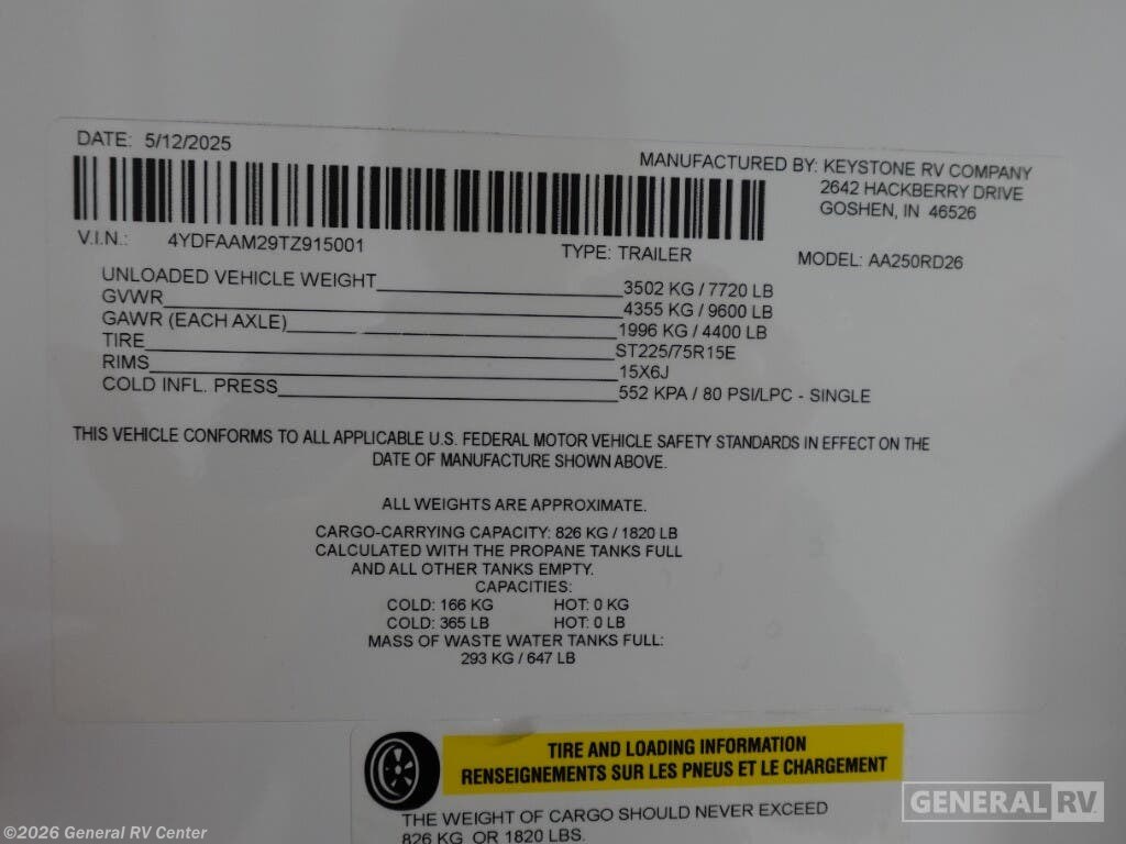 2026 Dutchmen Astoria 250RD Specifications