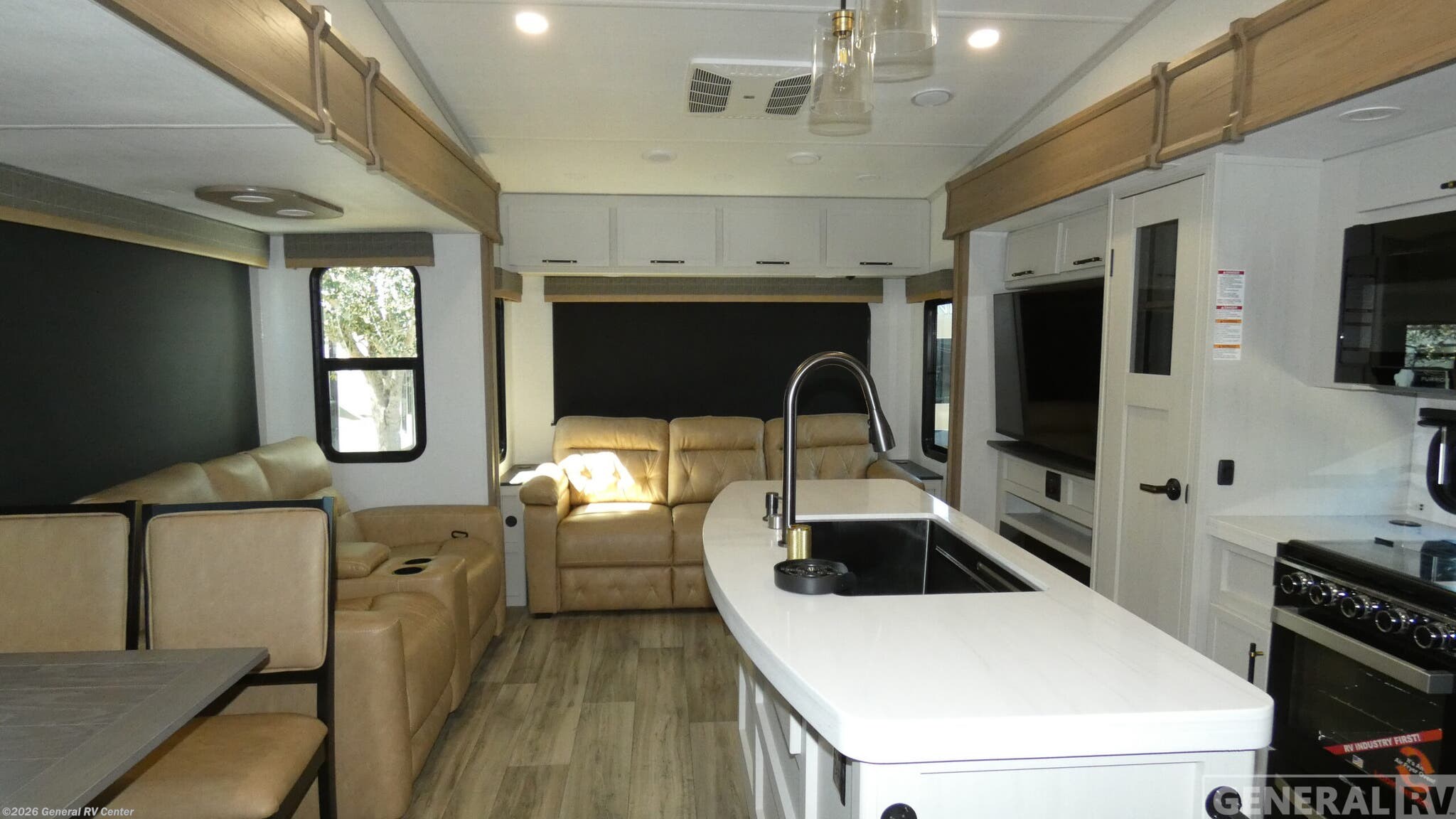 **Dutchmen Astoria Platinum Series fifth wheel 3173RLP highlights:** - Kitchen Island - 16 Cu. Ft. Refrigerator - King Bed - Free Standing Dinette - Fireplace - Pass-Through Storage Two can get ready at once with a dual sink vanity in the full bathroom of this fifth wheel! Enjoy a good night's rest and interior space with the king bed slide in the front private bedroom which also has a front wardrobe to keep your clothes looking their best, and a closet with washer/dryer prep. The chef will have an easy time preparing meals in the kitchen with the island, the extra countertop space below the hutch, and the glass top three burner cooktop with the oven. The rear living area has a tri-fold sofa and theater seating across from an entertainment center with a fireplace and an HD LED TV! Each one of these Dutchmen RV Astoria Platinum fifth wheels feature a fiberglass exterior for added durability and an All Weather Thermal Package so you can camp all year long! There are also MorRyde Solid entry steps, slam latch baggage doors, and many more exterior conveniences. You'll enjoy a 200W solar panel for off-grid capabilities, slam latch baggage doors, and a power awning with LED lights for an inviting outdoor space. The interior is designed with bathroom backsplash, night shades throughout the living area, and Thomas Payne furniture collection. The on-demand tankless water heater will provide endless hot showers, and the dual ducted A/C will keep you cool all summer long.