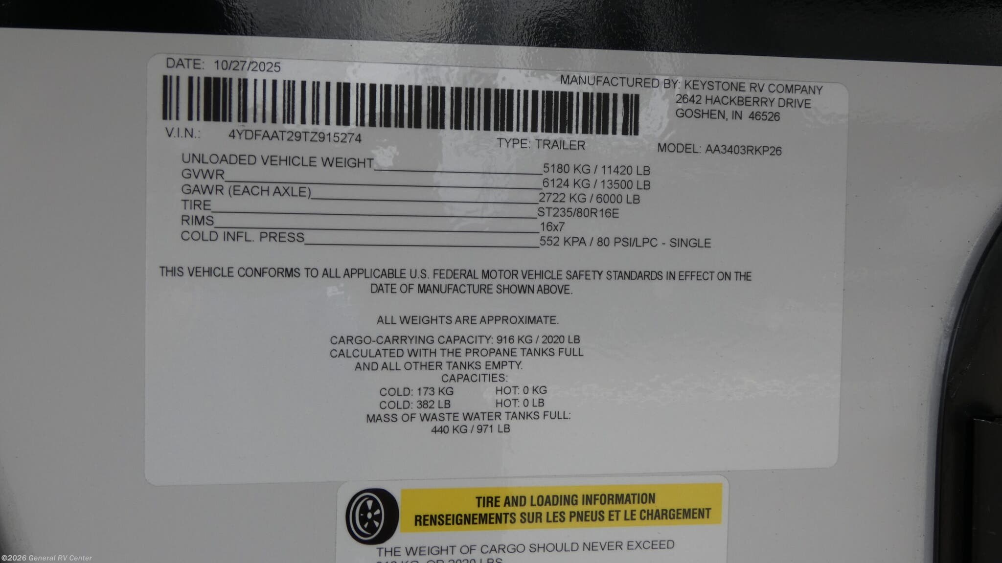 2026 Dutchmen Astoria 3403RKP Specifications