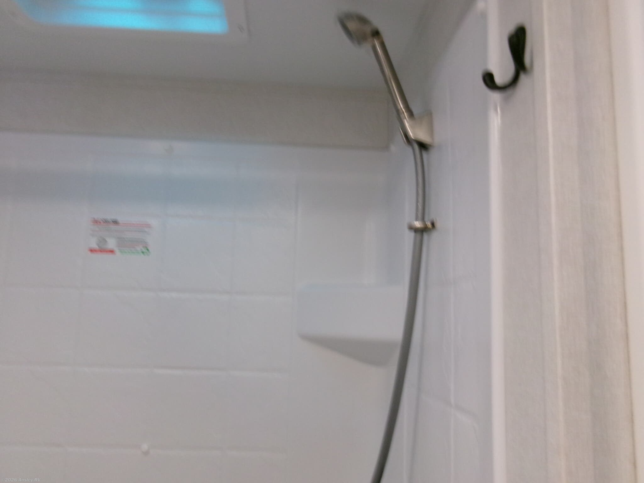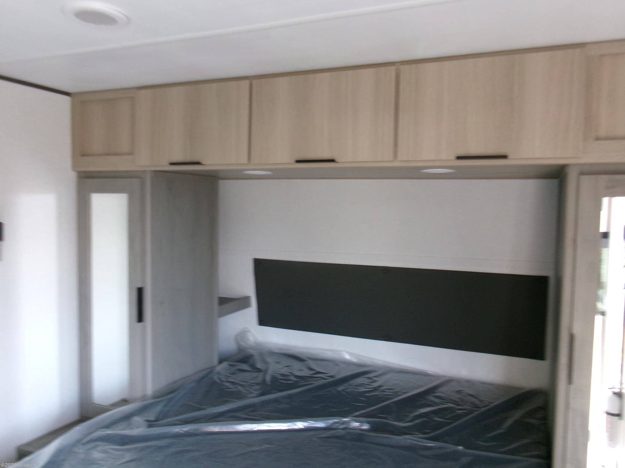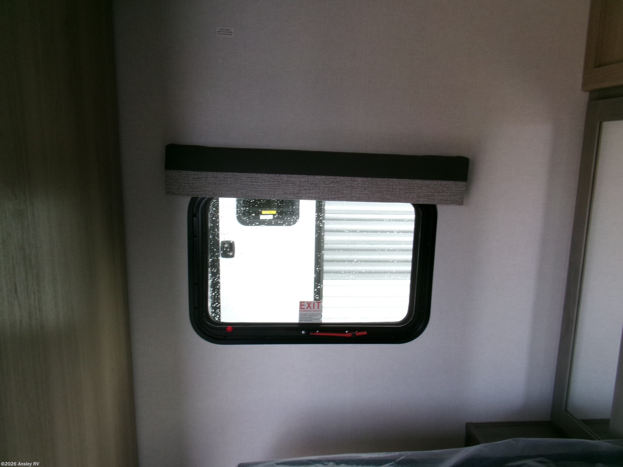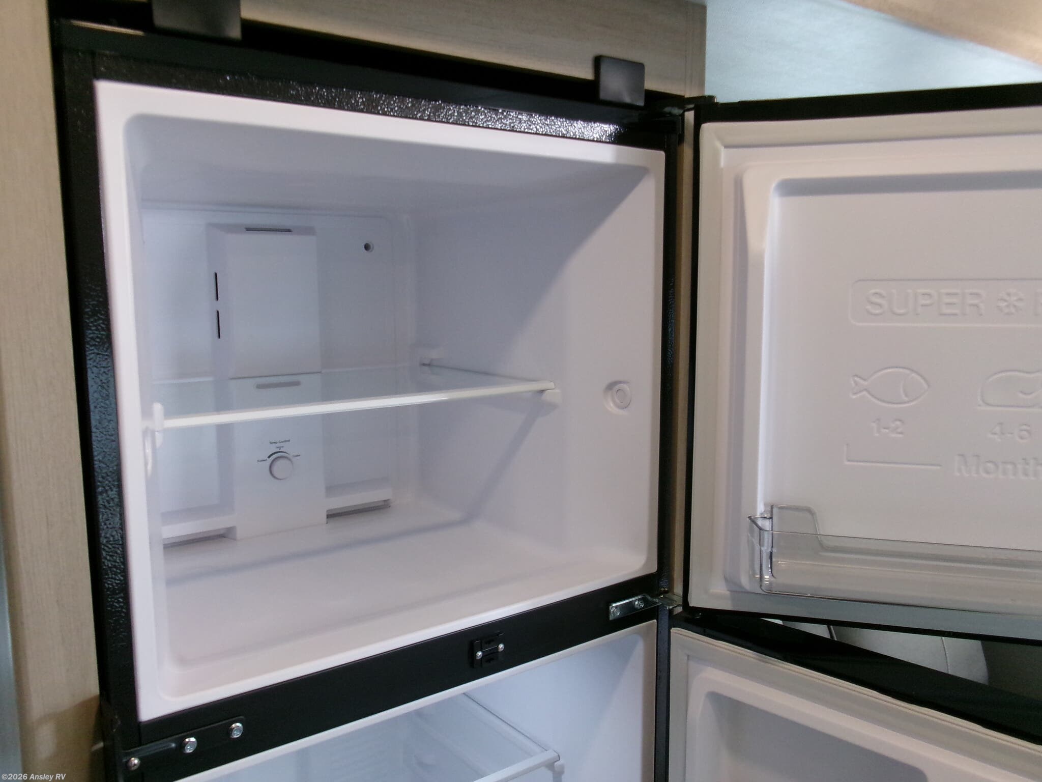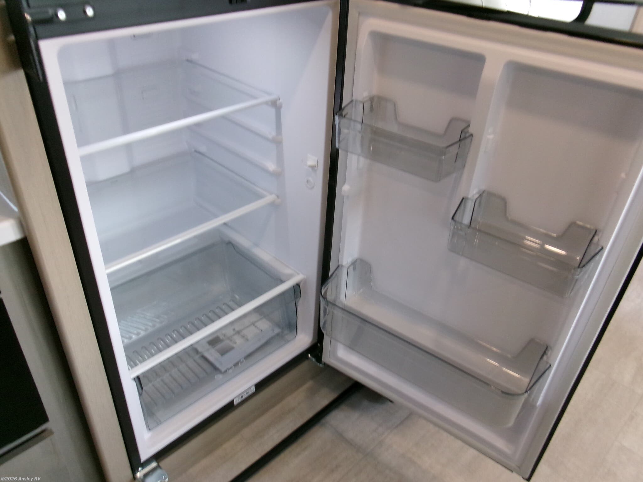 You'll love camping in this spacious travel trailer with a queen bed in the private bedroom, just like at home! The large slide out houses the theater seating and kitchen appliances, and there is a booth dinette across from the slide where you can dine at. The back of this unit includes ample counter space and a sink to clean dishes, plus a full bath with a shower, toilet, and linen closet for towels. You will also love the fiberglass exterior of this travel trailer for a sleeker look!