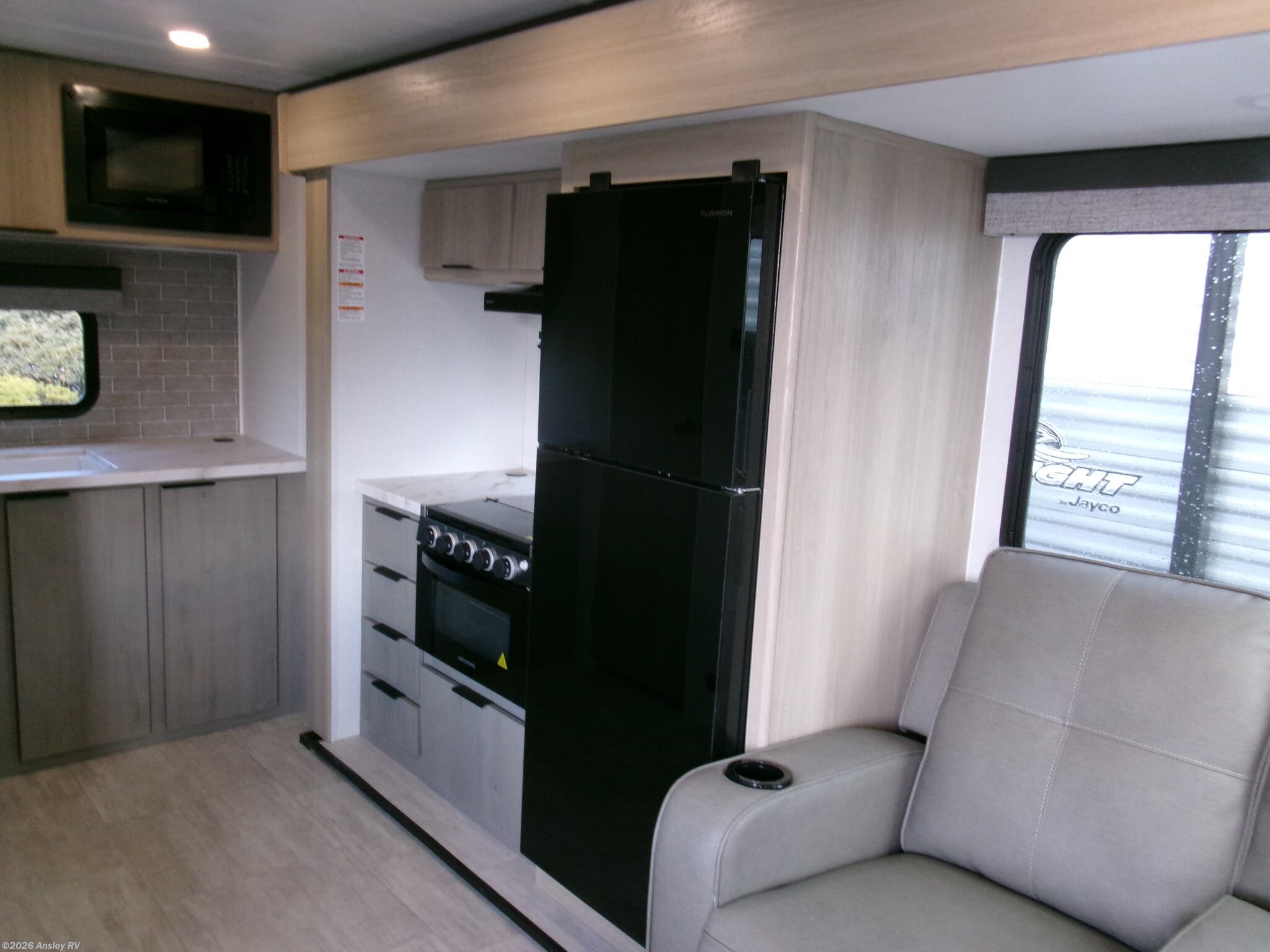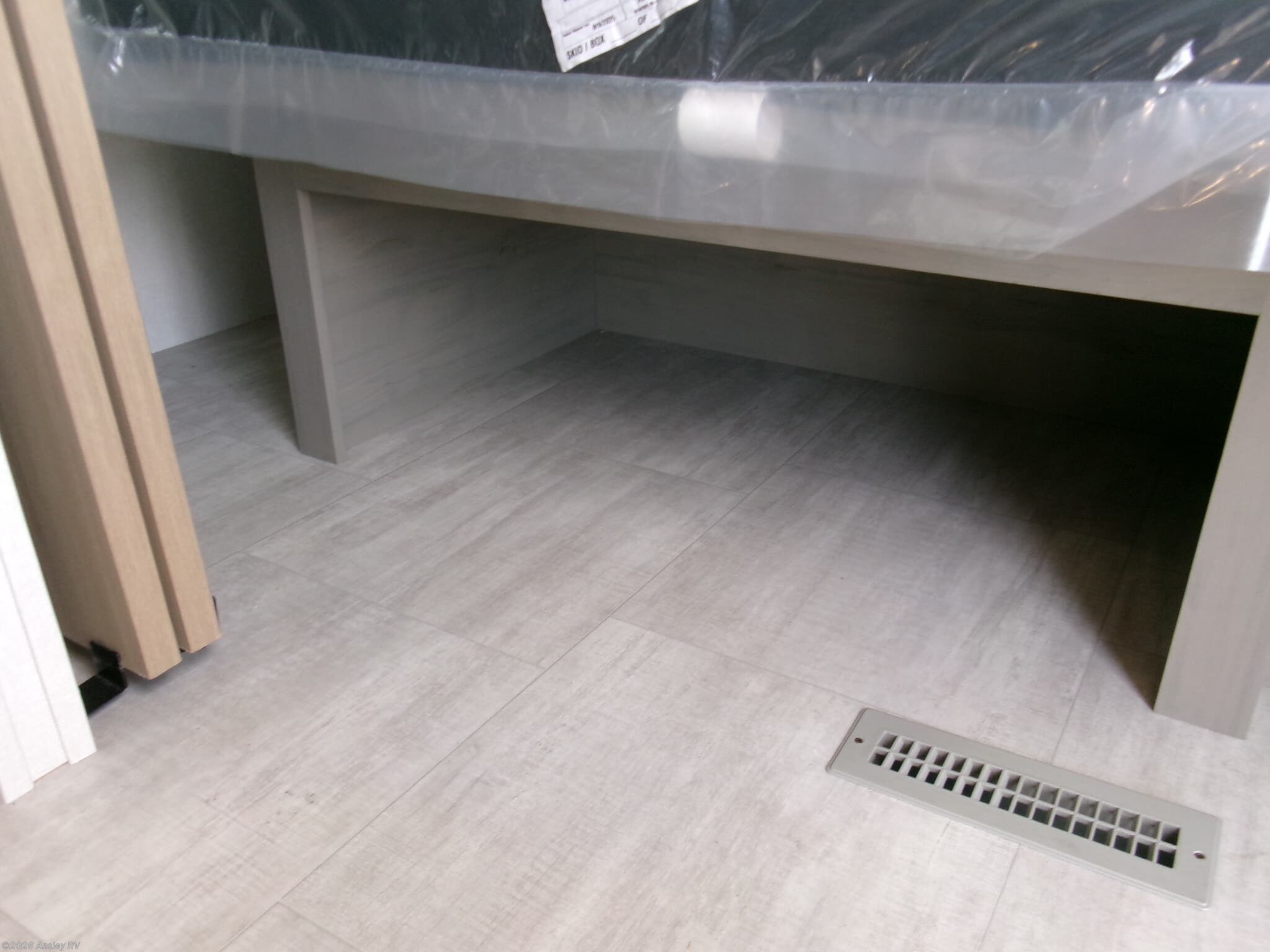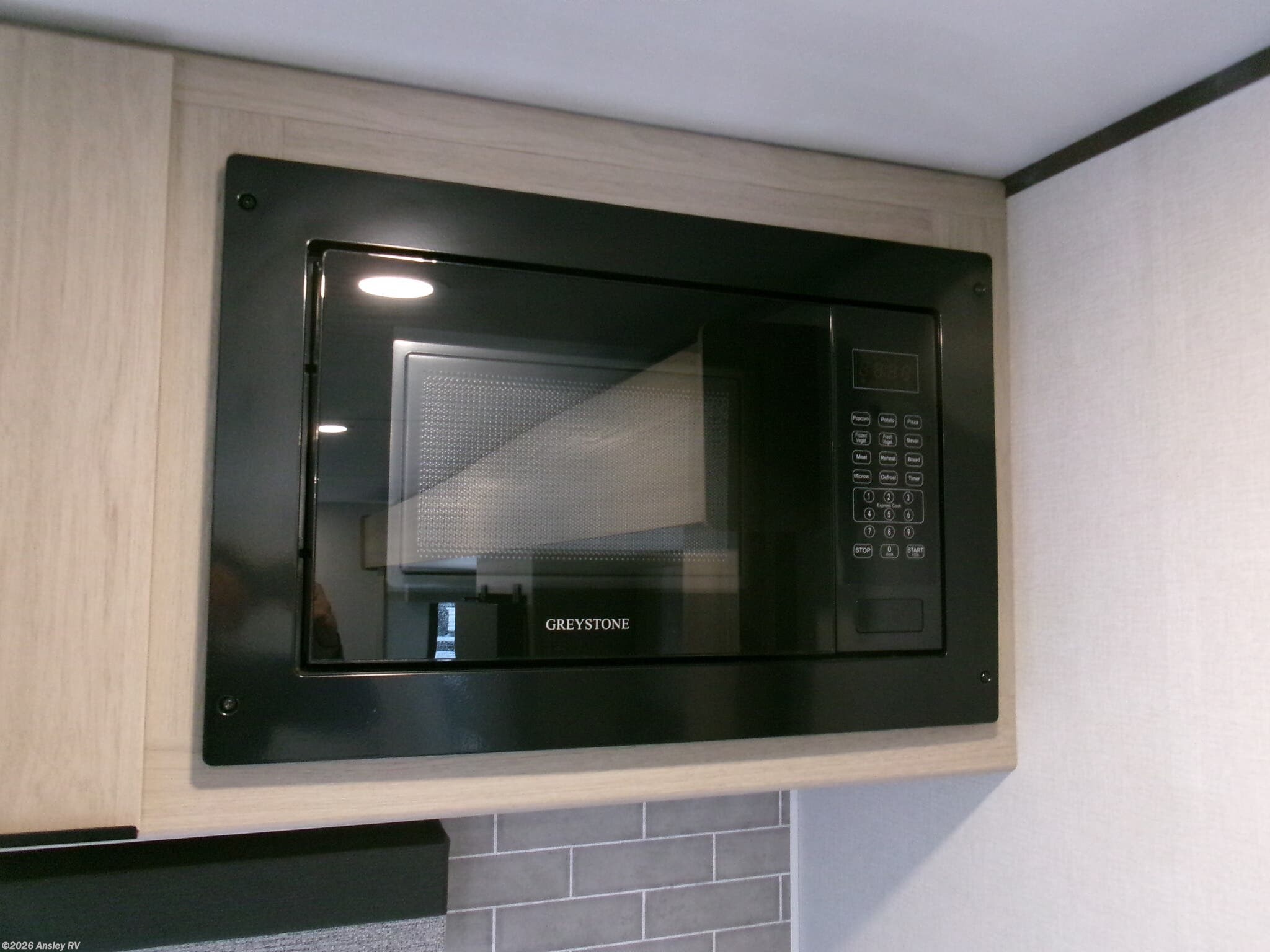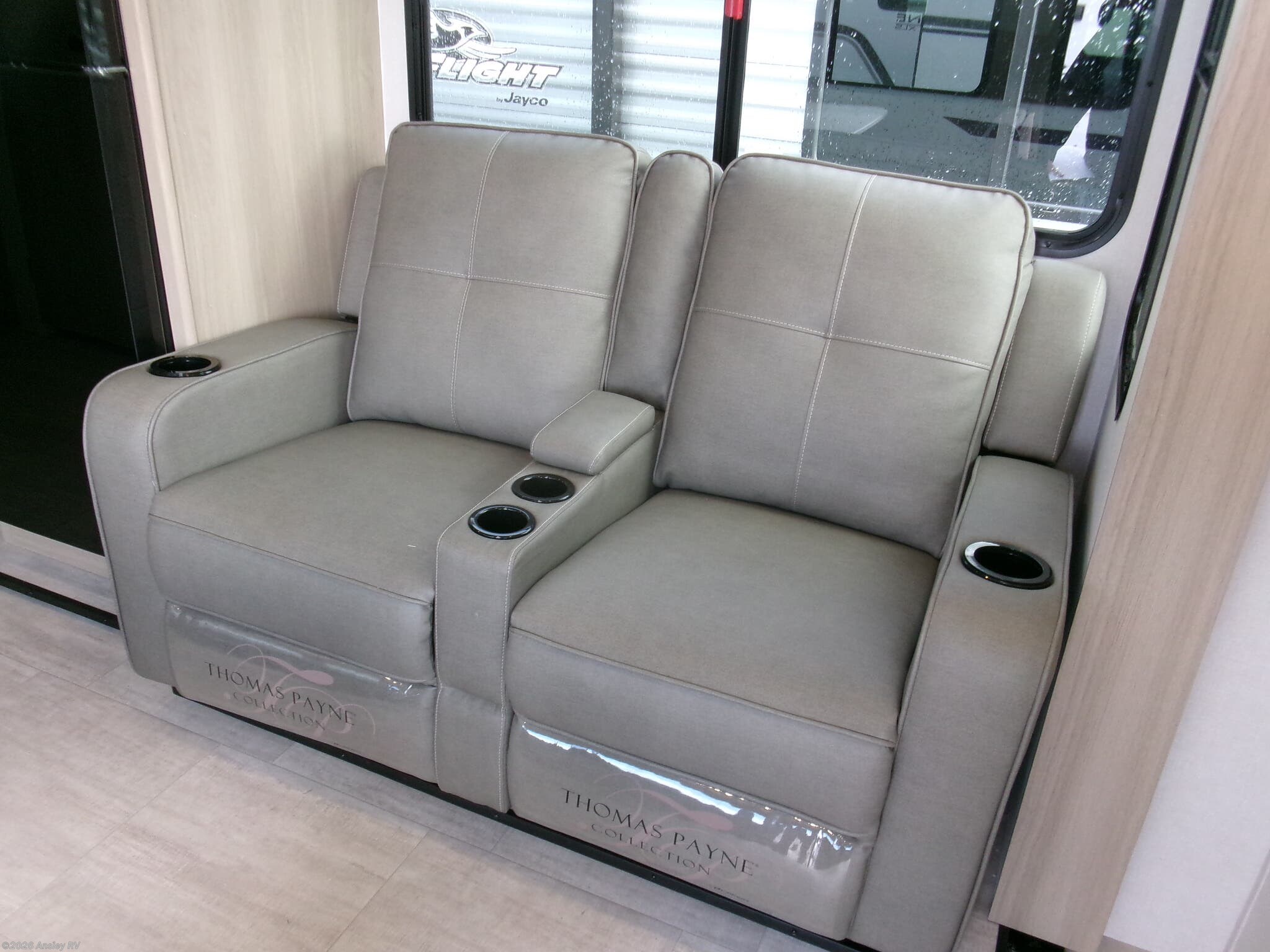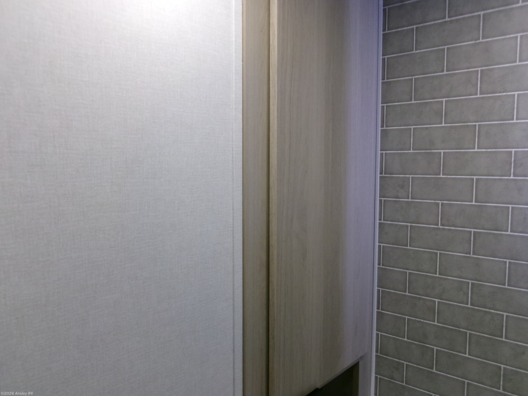 You'll love camping in this spacious travel trailer with a queen bed in the private bedroom, just like at home! The large slide out houses the theater seating and kitchen appliances, and there is a booth dinette across from the slide where you can dine at. The back of this unit includes ample counter space and a sink to clean dishes, plus a full bath with a shower, toilet, and linen closet for towels. You will also love the fiberglass exterior of this travel trailer for a sleeker look!
