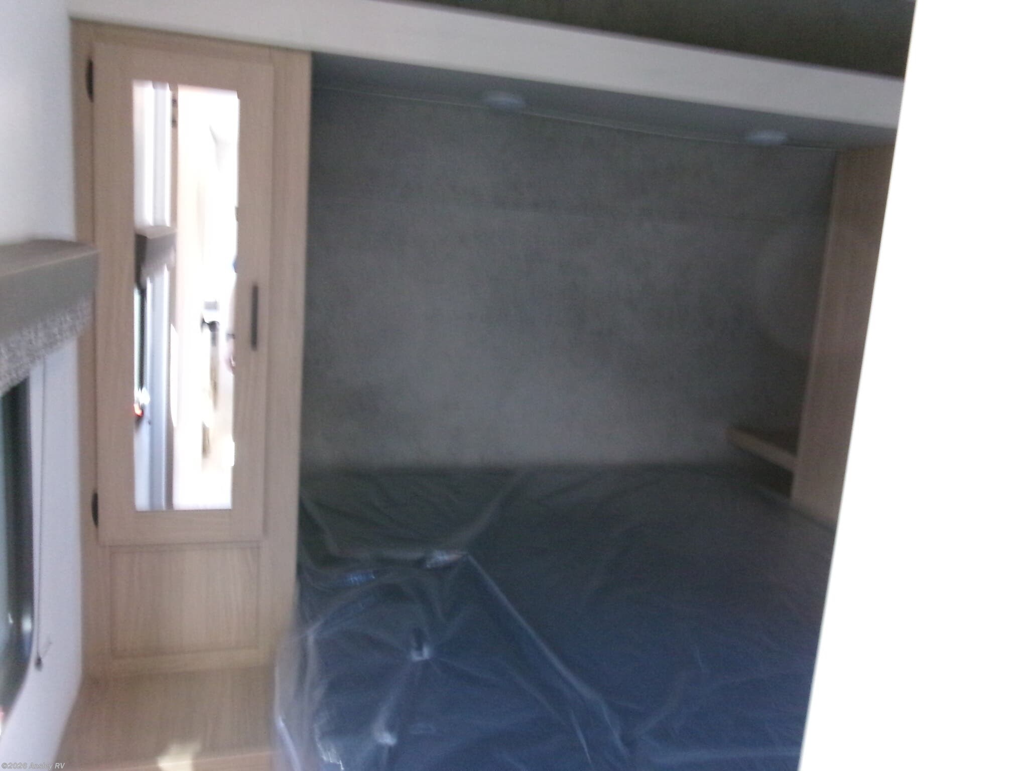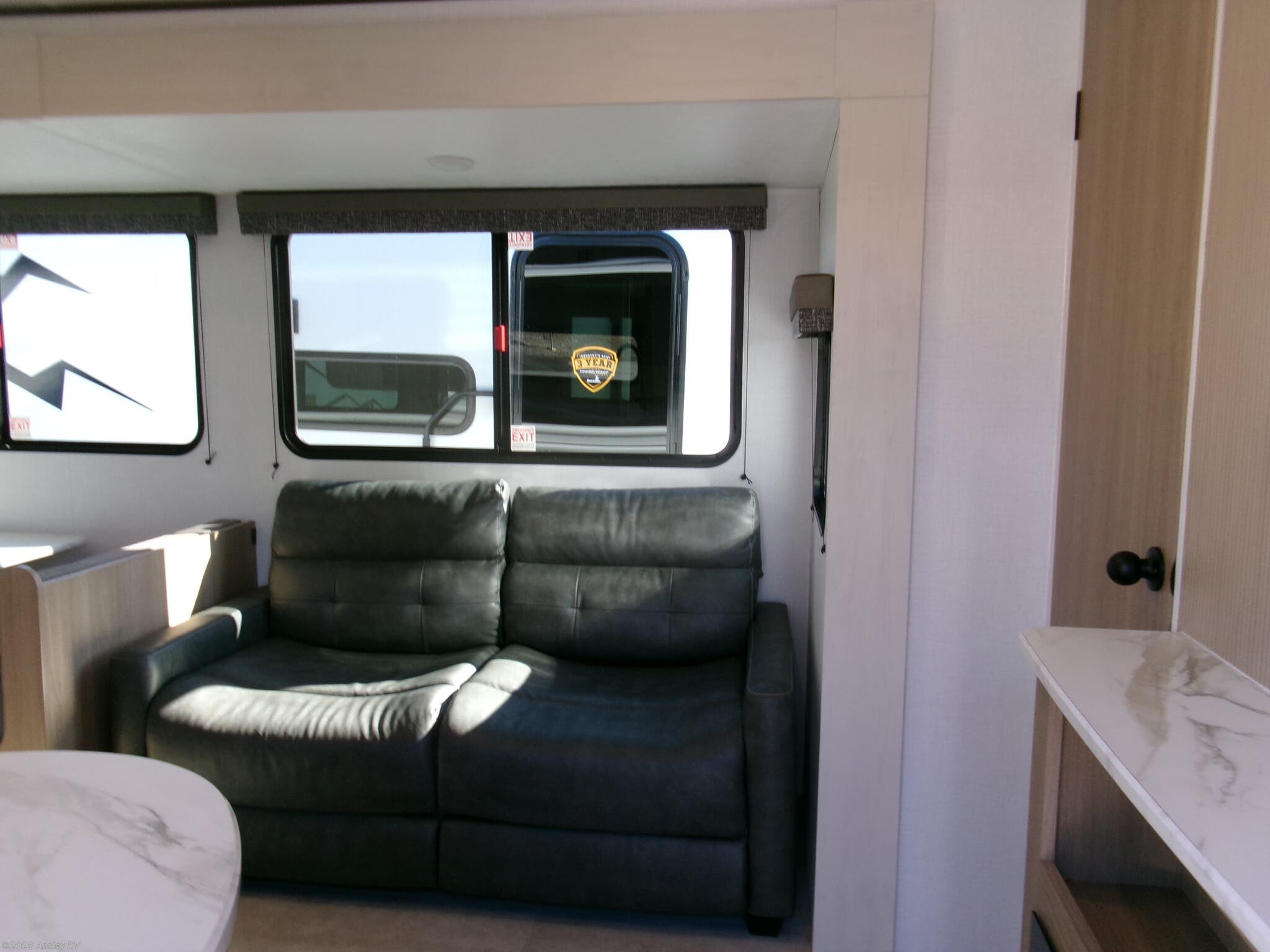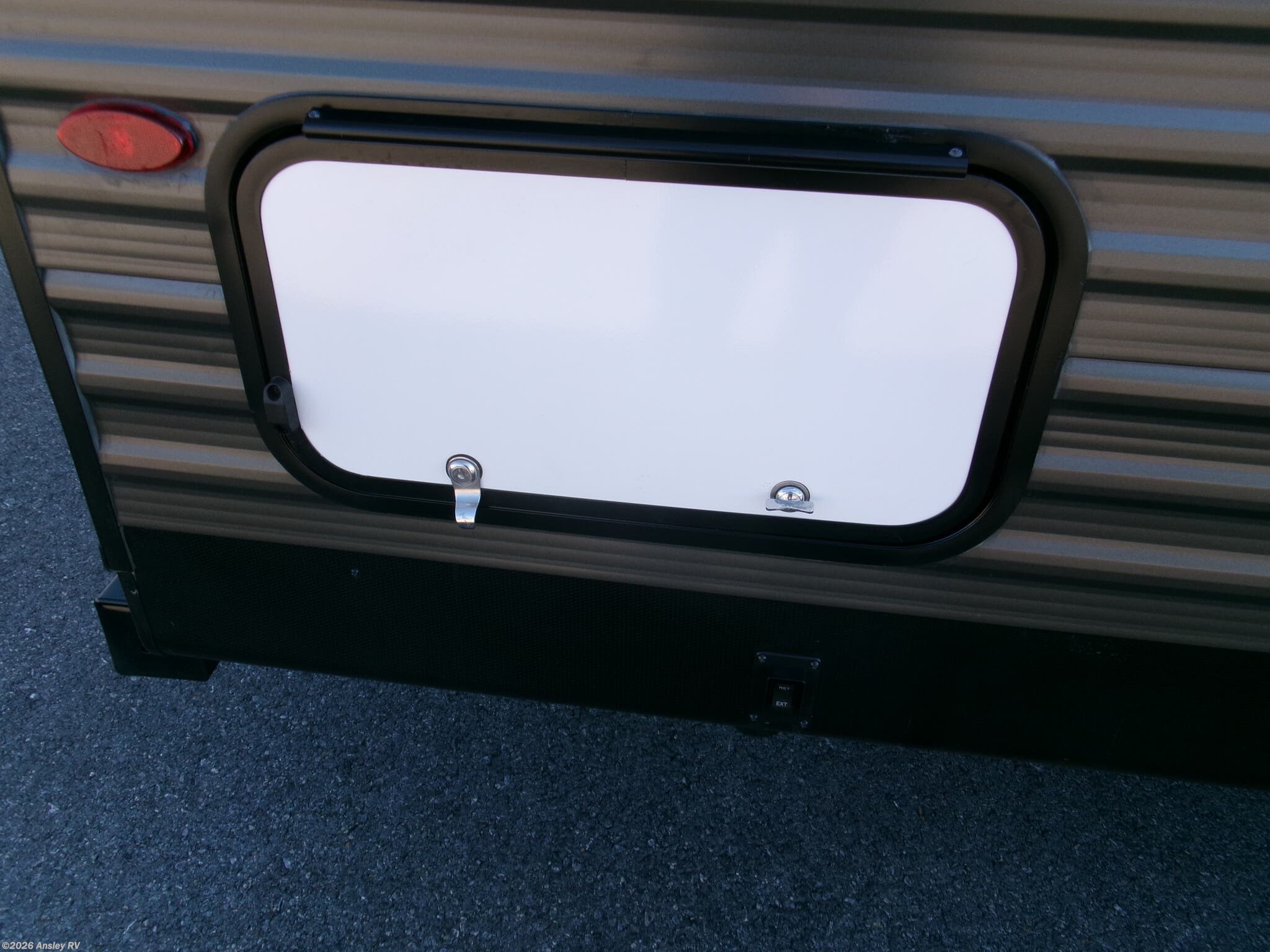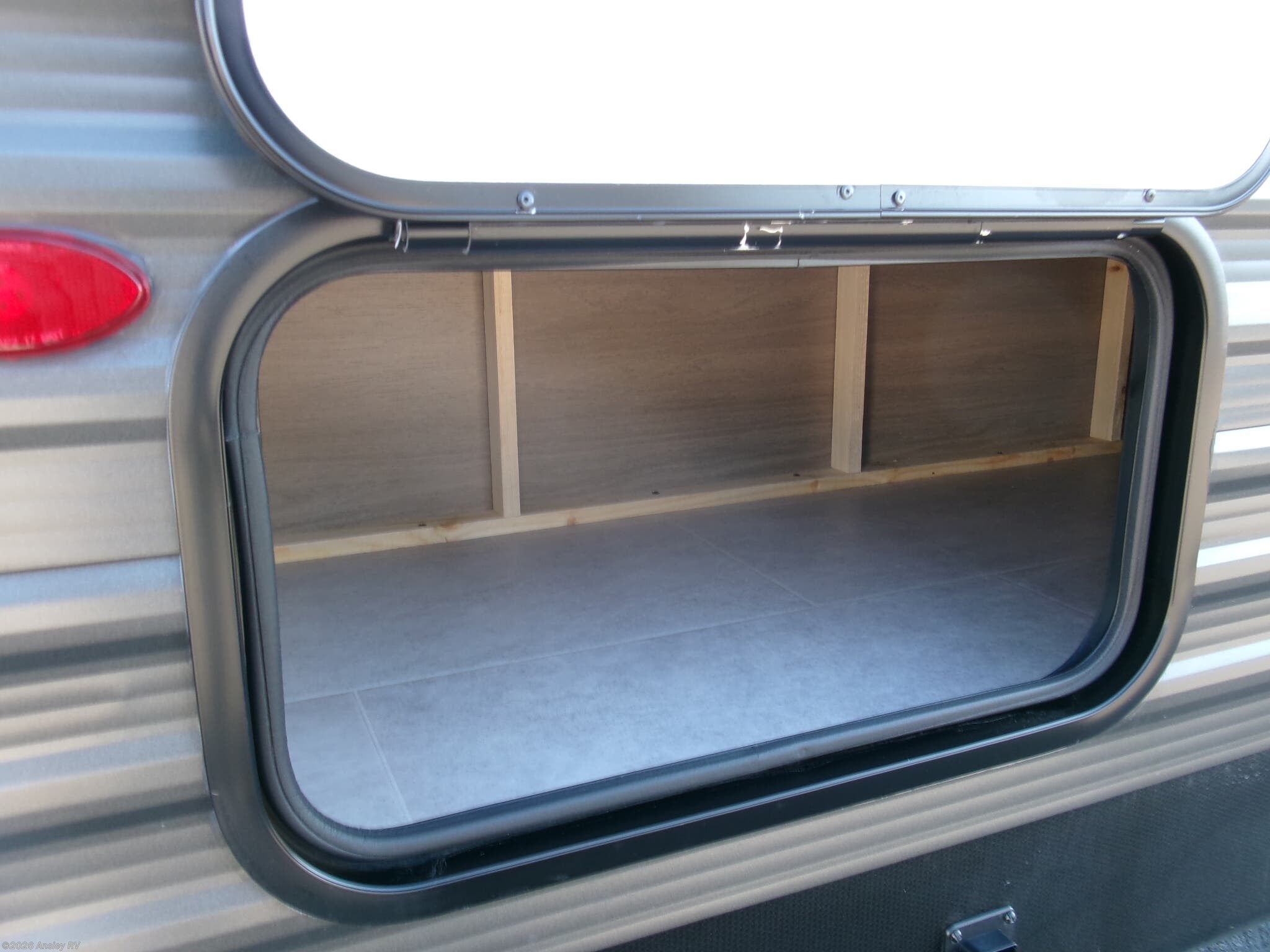 When you camp with your family you still need privacy, and this travel trailer will deliver that with the front bedroom with dual entry doors! Here, you'll find a residential queen bed with closets on each side and windows for some natural lighting. The main living and kitchen area offers a large slide out with a booth dinette and jack knife sofa with a footrest and your guests can sleep here as well as the double-size bunks. You'll also enjoy the 16' awning and the pass-through storage where fishing poles can be stored!