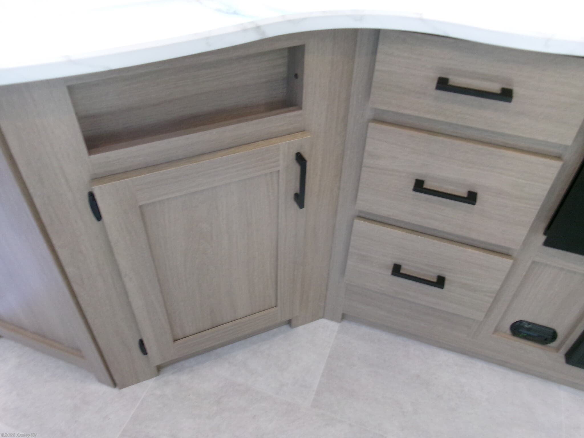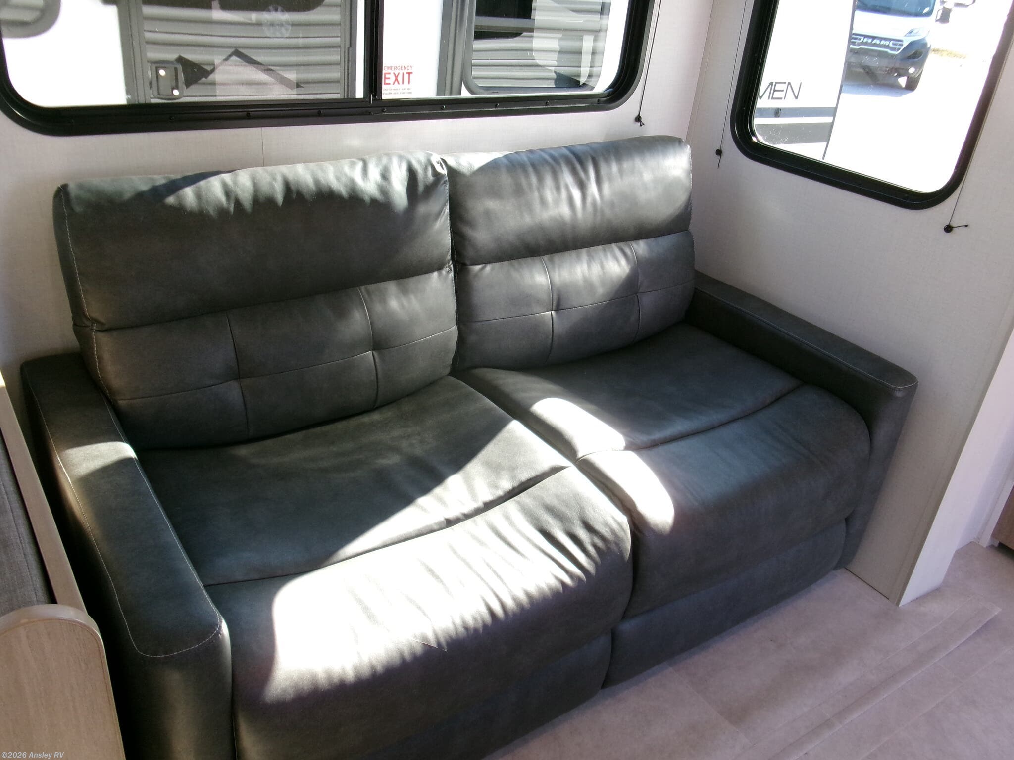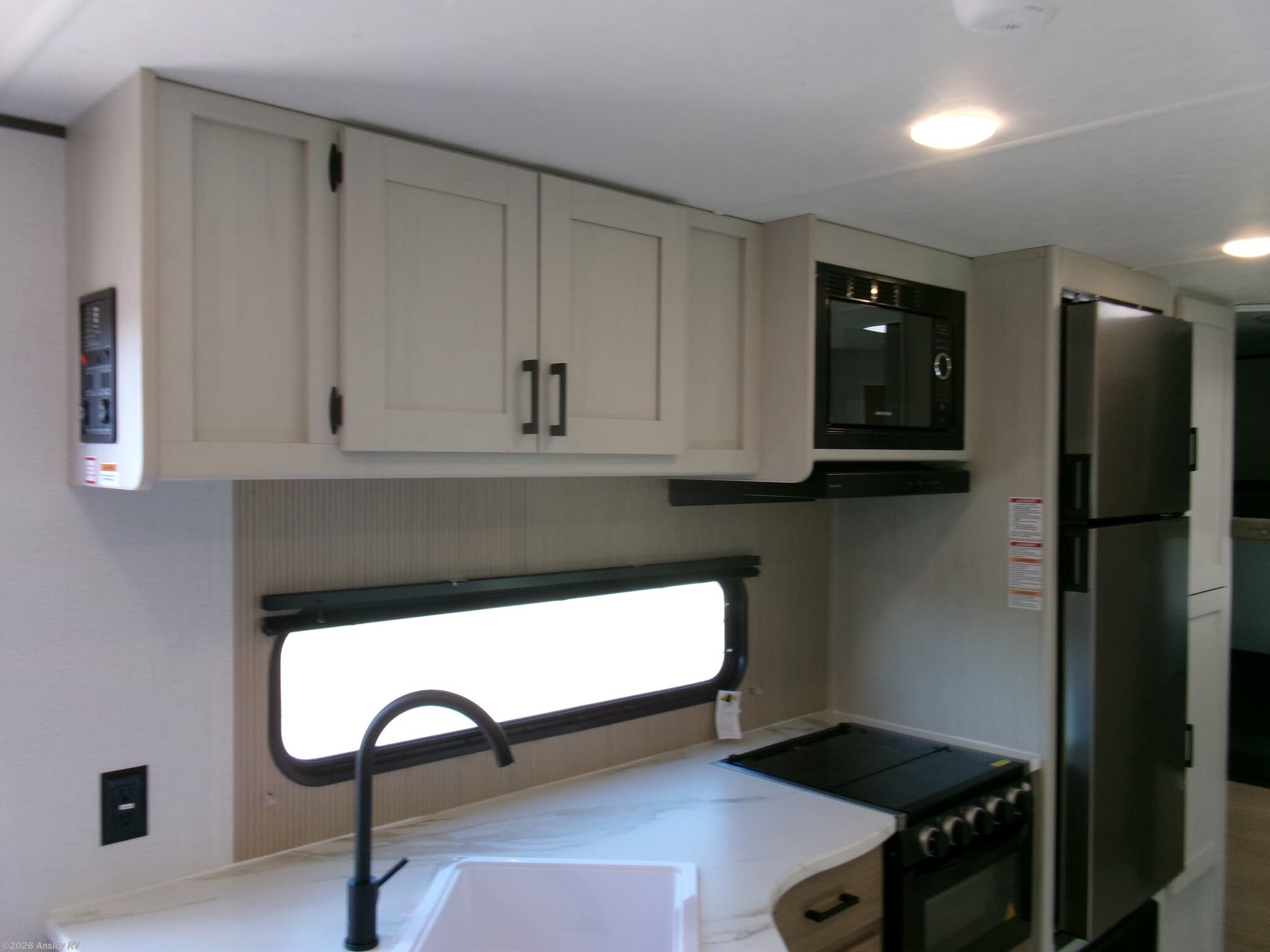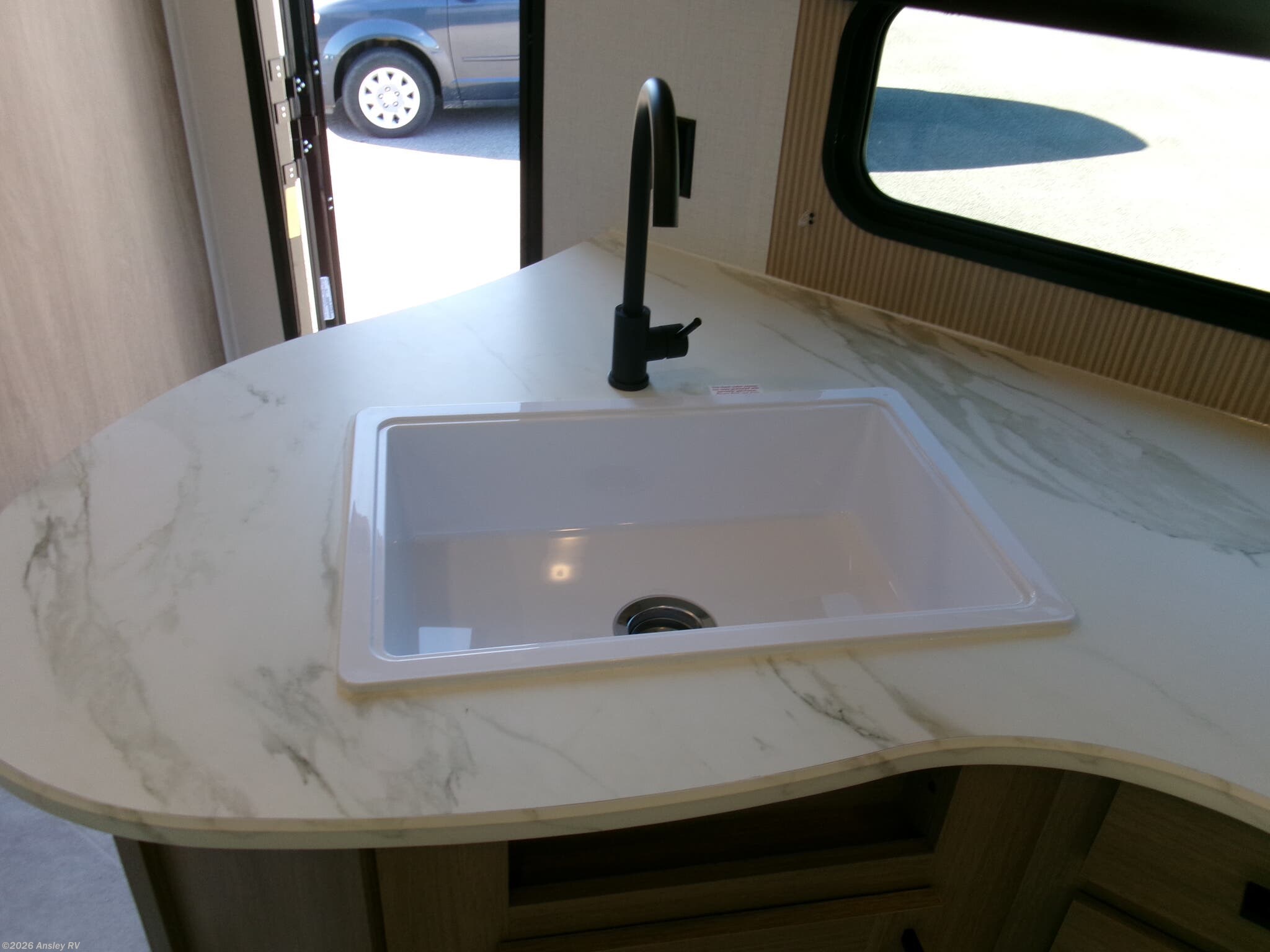 When you camp with your family you still need privacy, and this travel trailer will deliver that with the front bedroom with dual entry doors! Here, you'll find a residential queen bed with closets on each side and windows for some natural lighting. The main living and kitchen area offers a large slide out with a booth dinette and jack knife sofa with a footrest and your guests can sleep here as well as the double-size bunks. You'll also enjoy the 16' awning and the pass-through storage where fishing poles can be stored!
