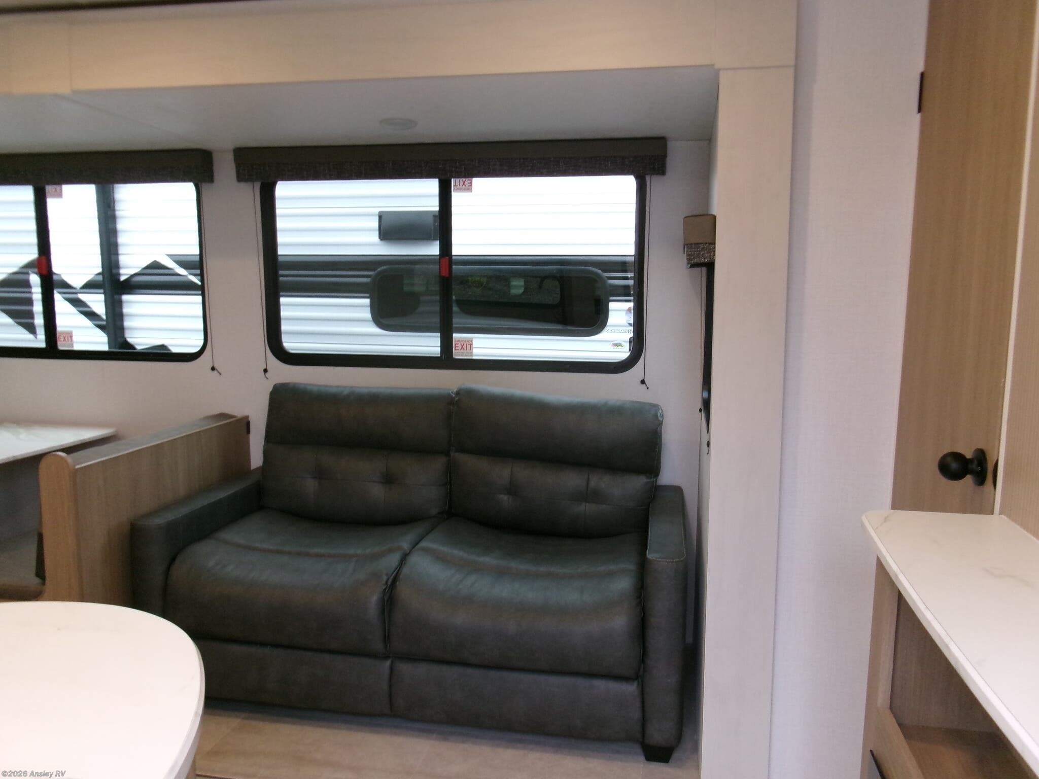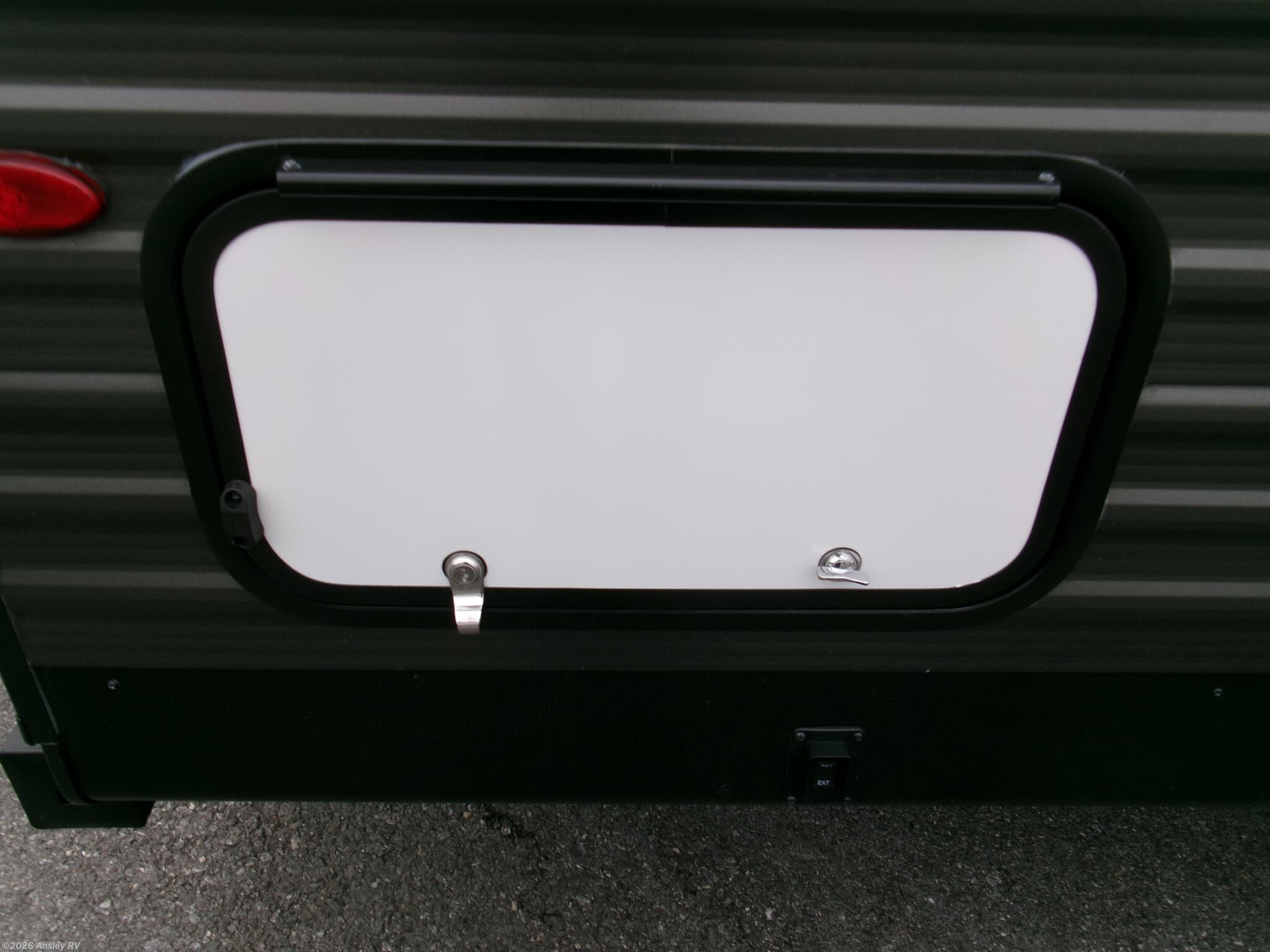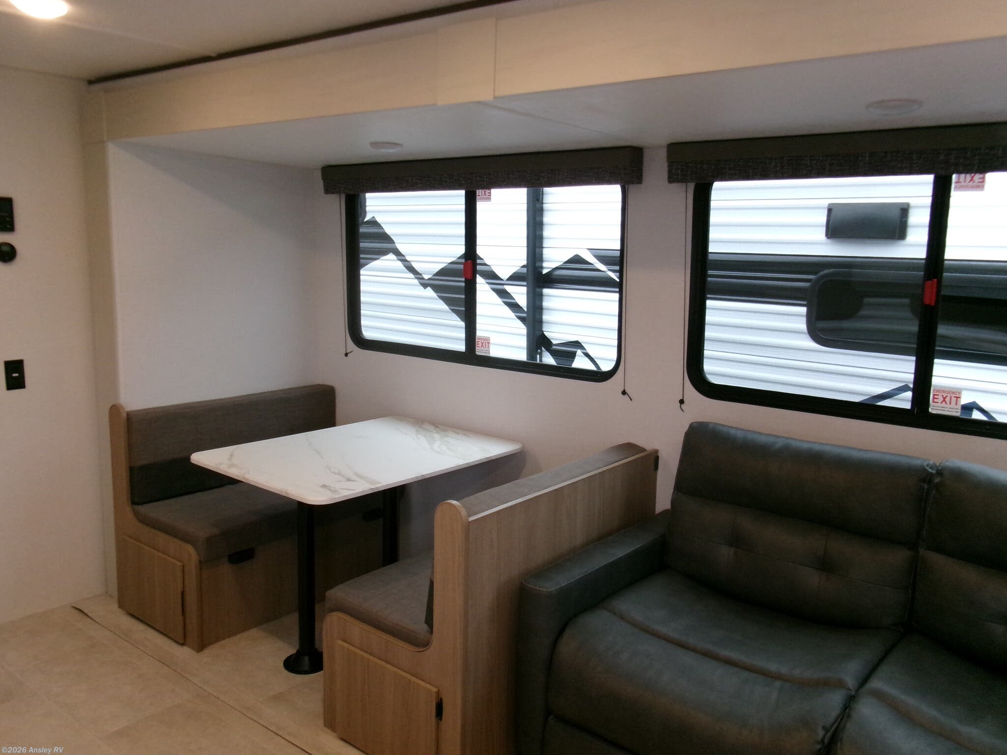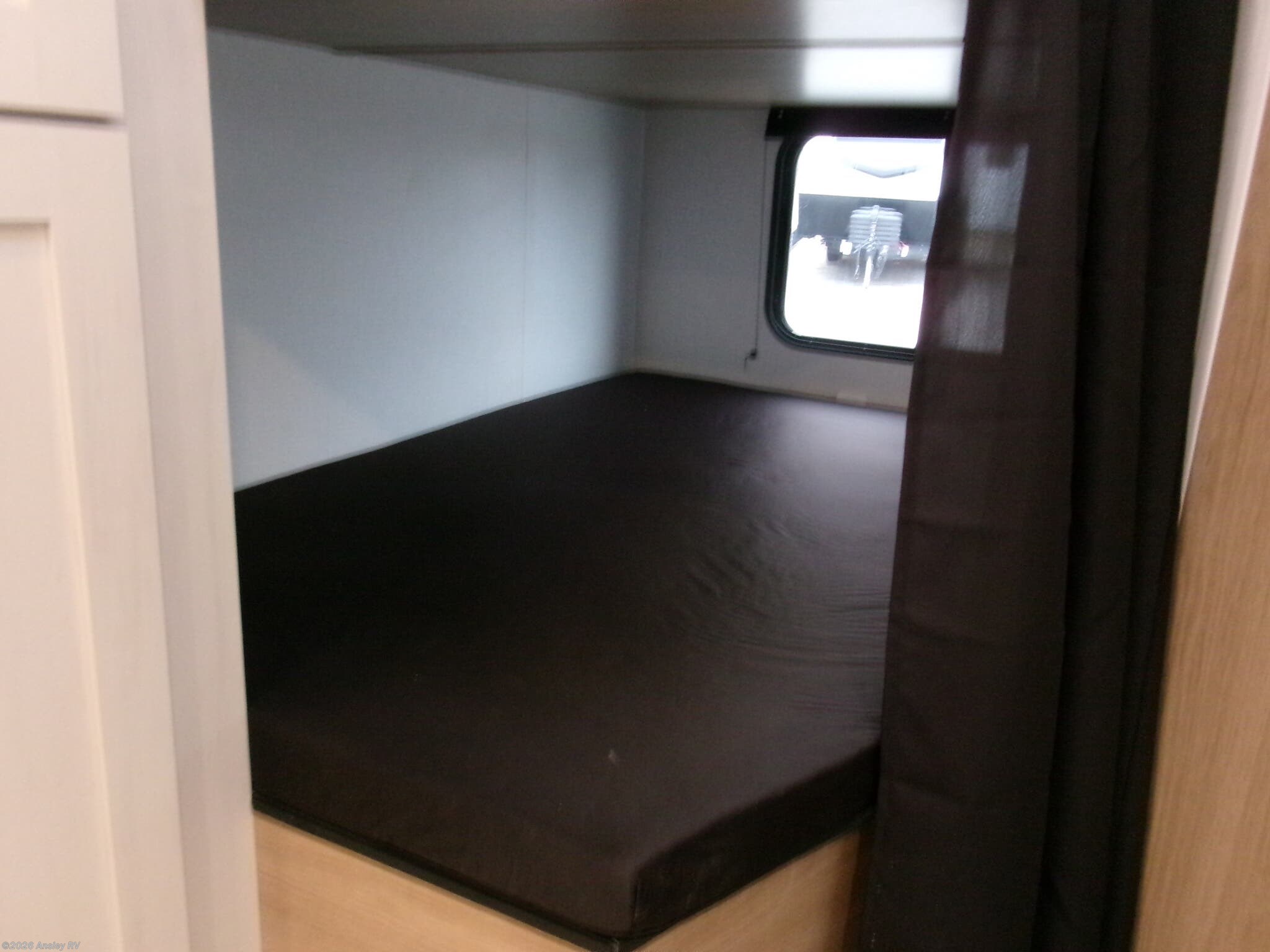 When you camp with your family you still need privacy, and this travel trailer will deliver that with the front bedroom with dual entry doors! Here, you'll find a residential queen bed with closets on each side and windows for some natural lighting. The main living and kitchen area offers a large slide out with a booth dinette and jack knife sofa with a footrest and your guests can sleep here as well as the double-size bunks. You'll also enjoy the 16' awning and the pass-through storage where fishing poles can be stored!