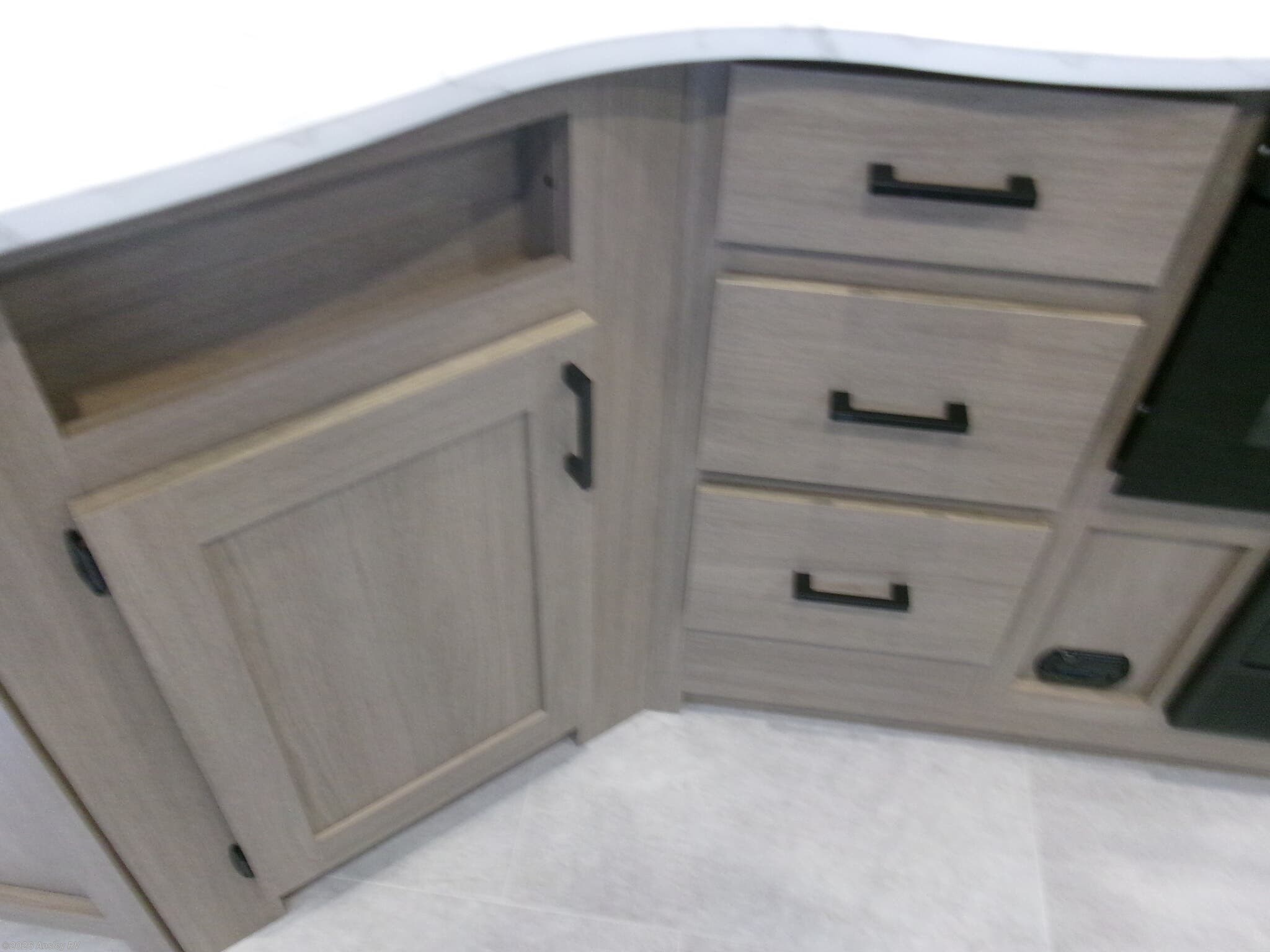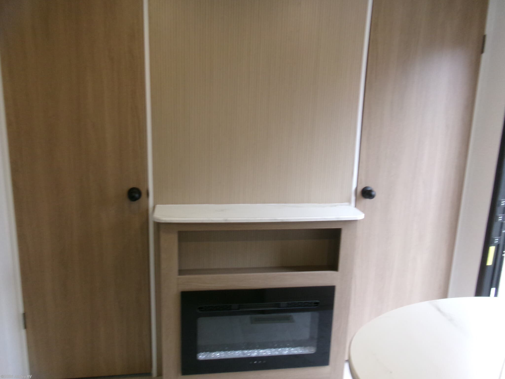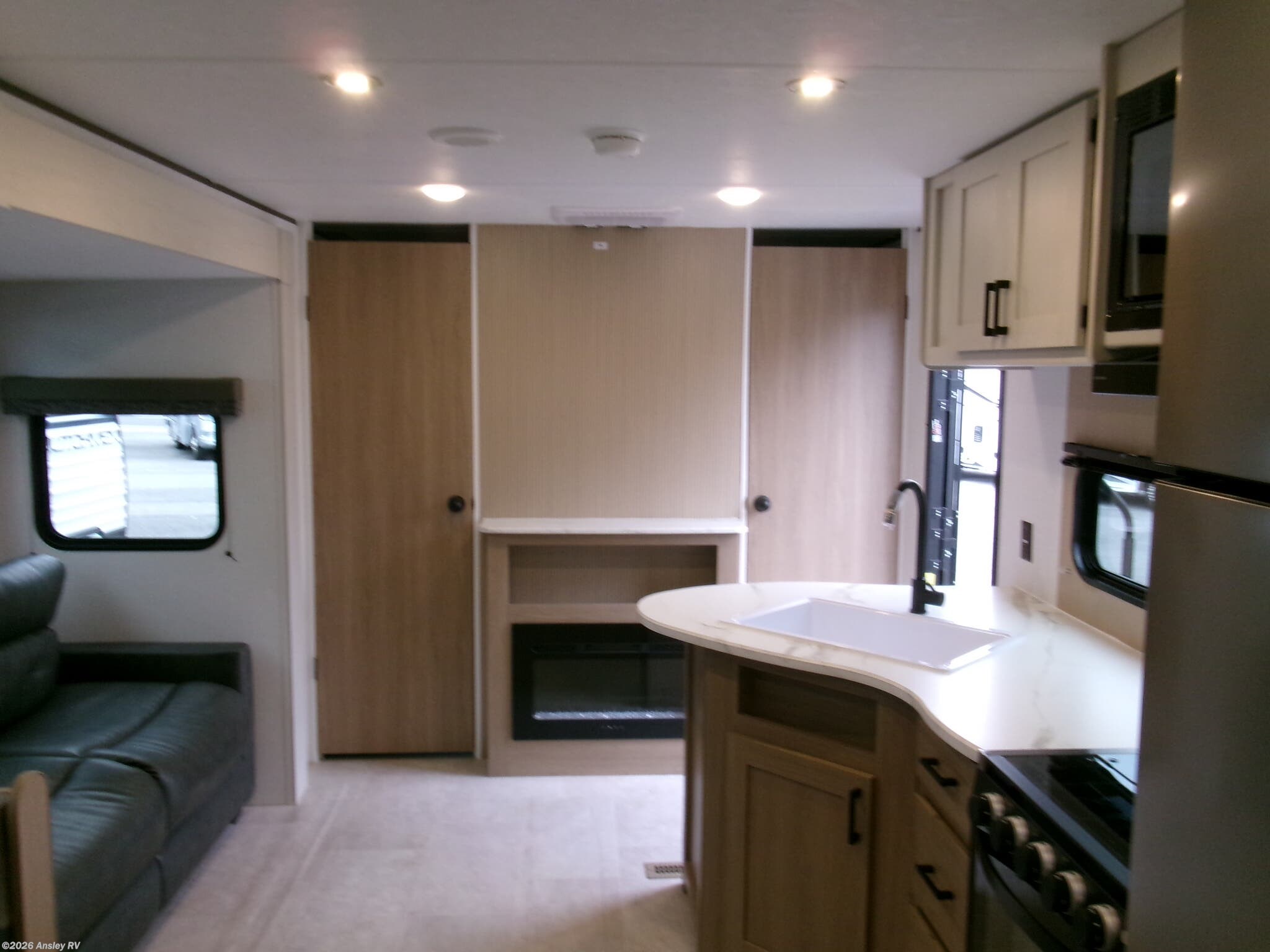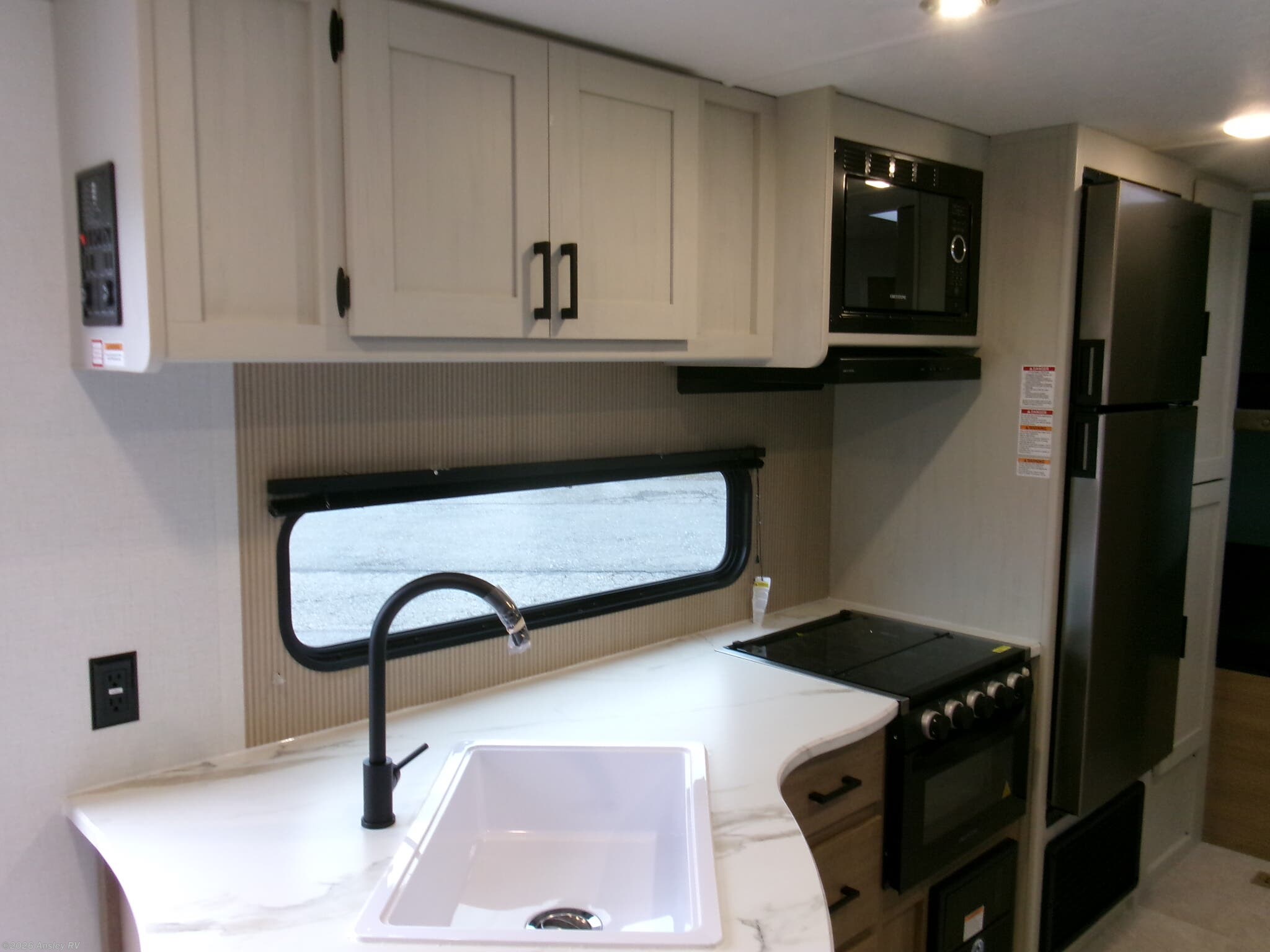 When you camp with your family you still need privacy, and this travel trailer will deliver that with the front bedroom with dual entry doors! Here, you'll find a residential queen bed with closets on each side and windows for some natural lighting. The main living and kitchen area offers a large slide out with a booth dinette and jack knife sofa with a footrest and your guests can sleep here as well as the double-size bunks. You'll also enjoy the 16' awning and the pass-through storage where fishing poles can be stored!