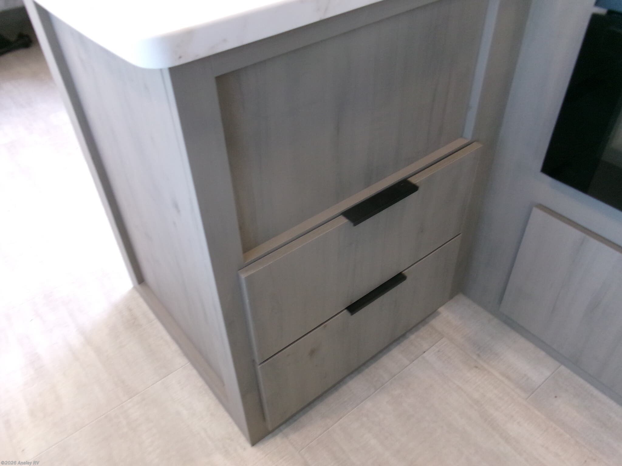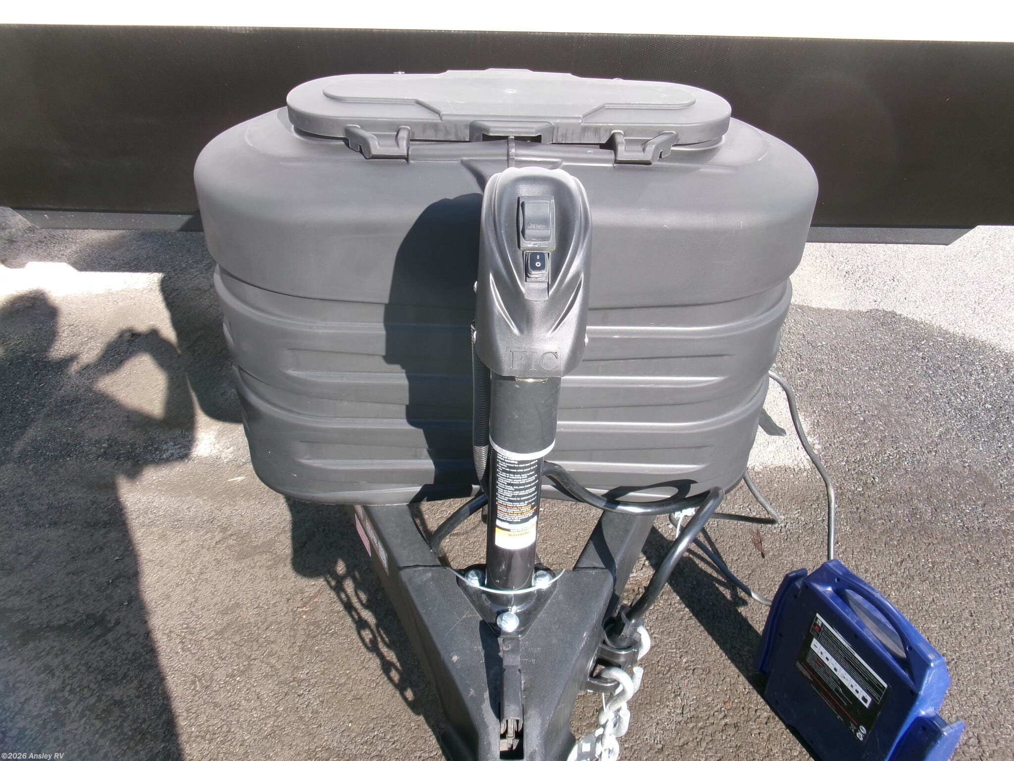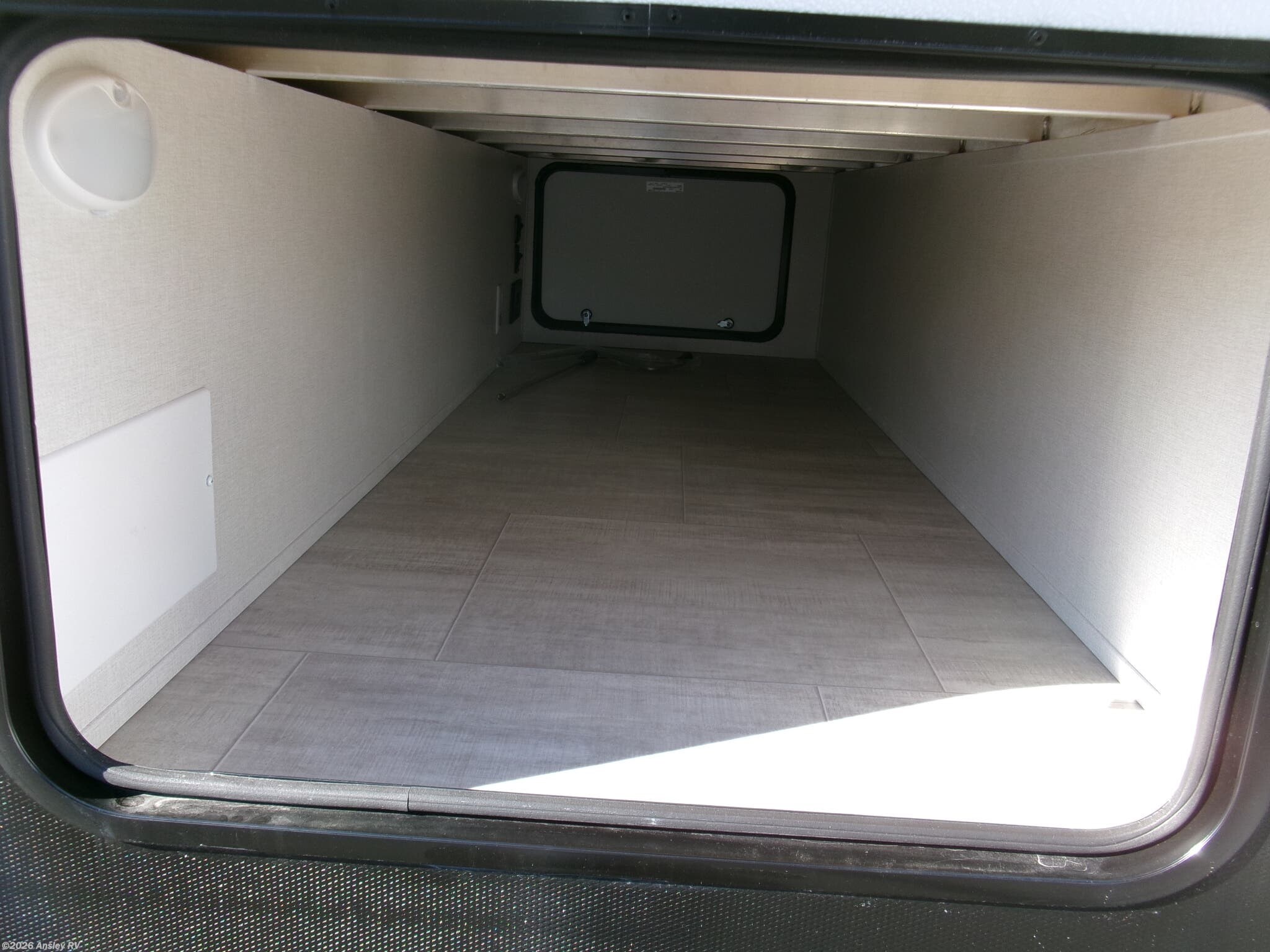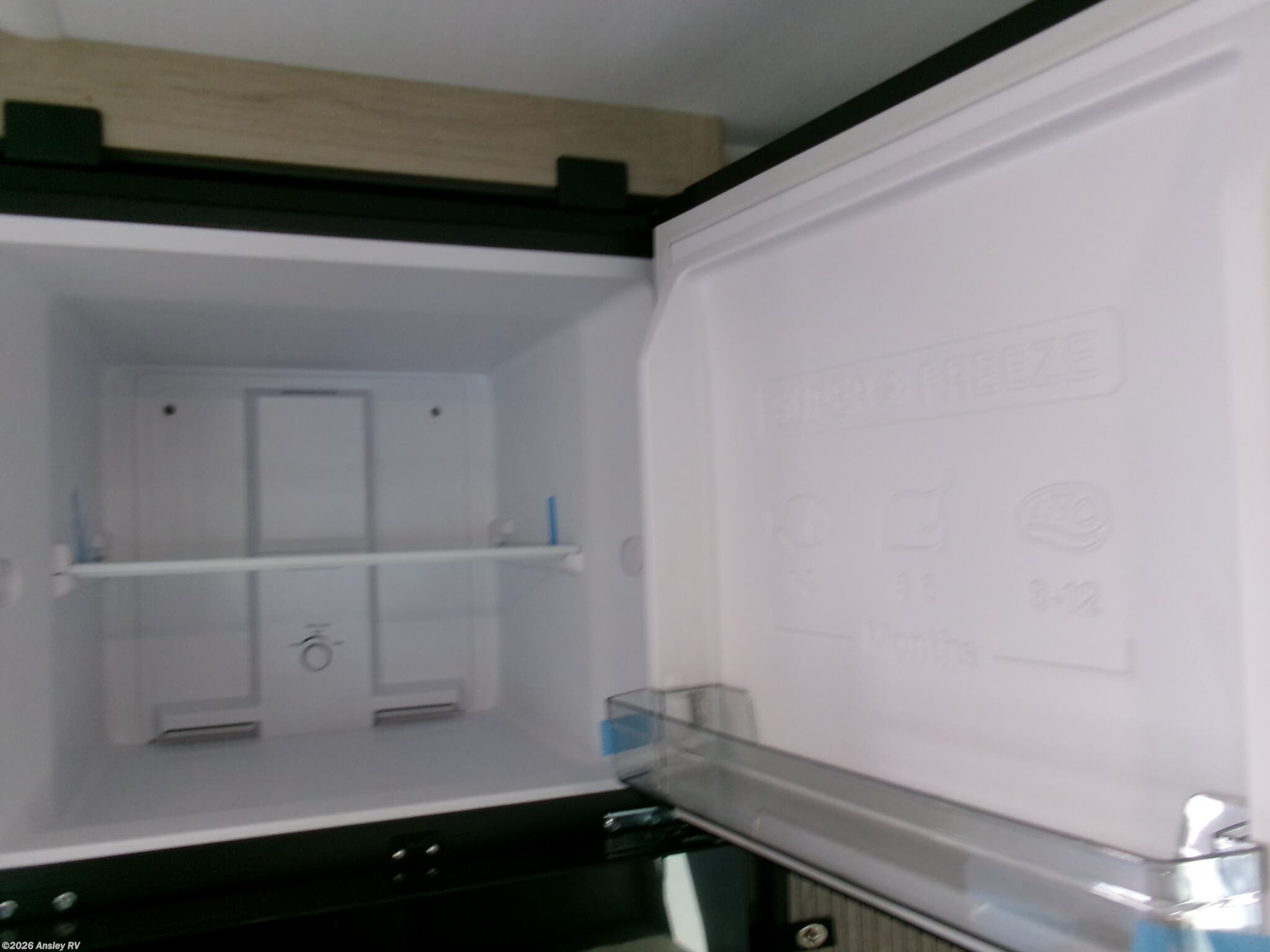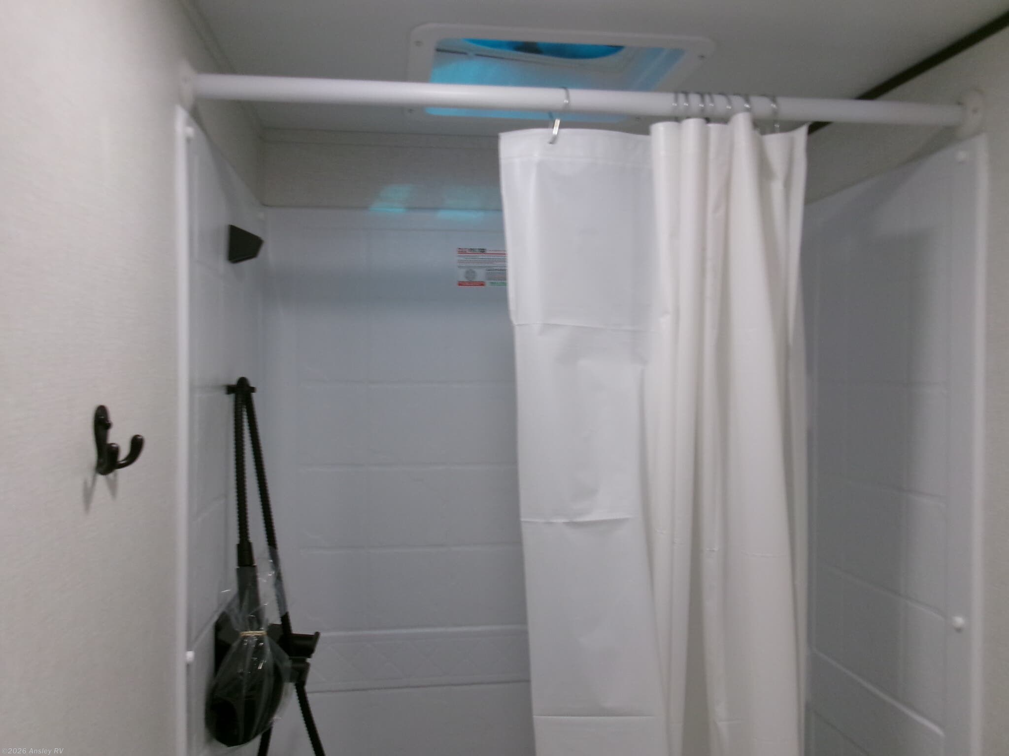 Your whole family will have a good time in this travel trailer! You can easily set up the 14' awning with LED lights, grab your camp chairs from the pass-through storage, and start making meals using the inside kitchen amenities like a refrigerator and three burner range. After mealtime, you can play games at the booth dinette before getting cleaned up in the full corner bathroom. The kids or guests can have their own double-size bunk beds, and you will love having a front residential queen bed at night. There is even a hinged entertainment center with a fireplace and a hidden pantry behind it to conveniently grab a snack and set up a movie!