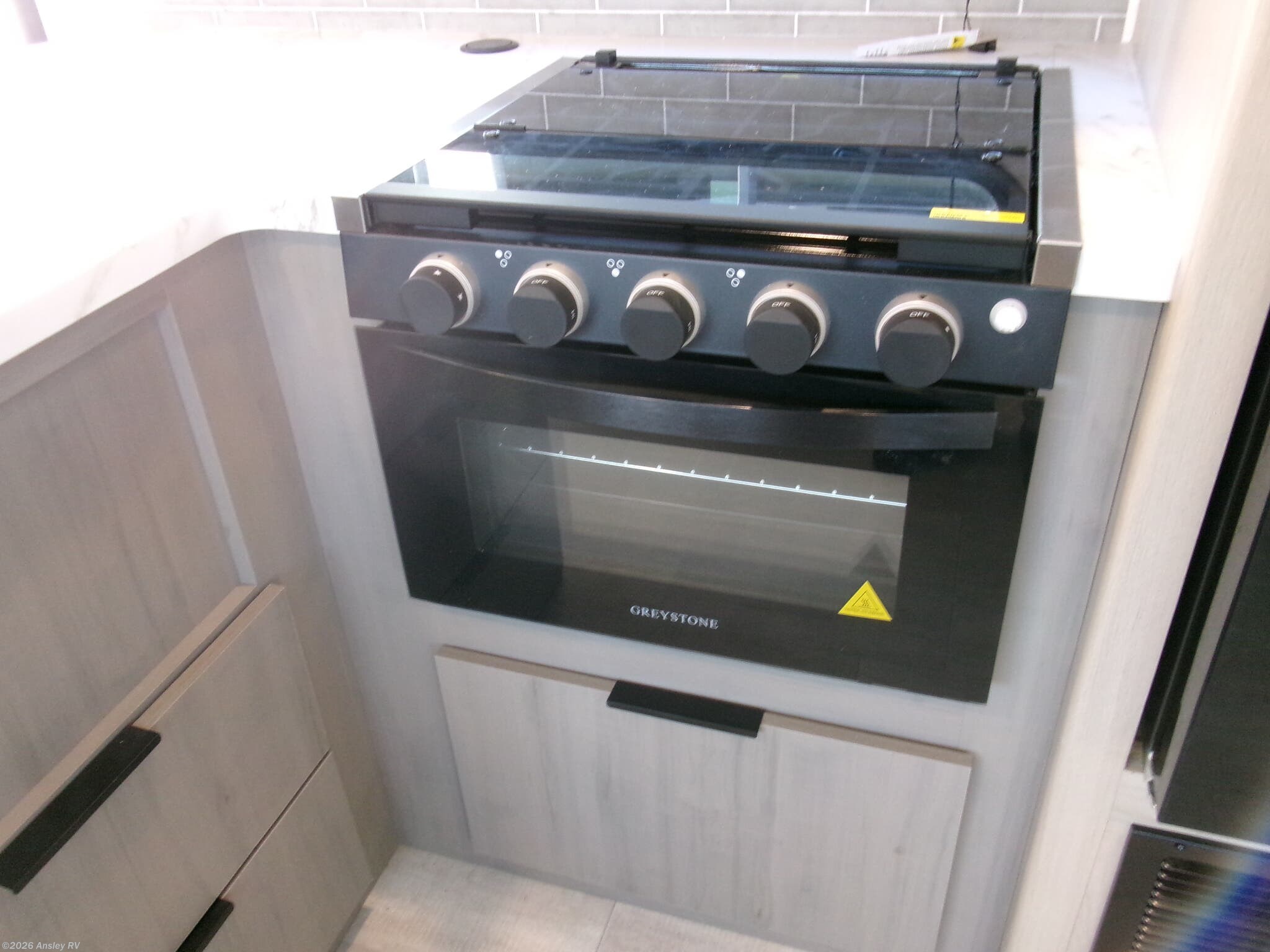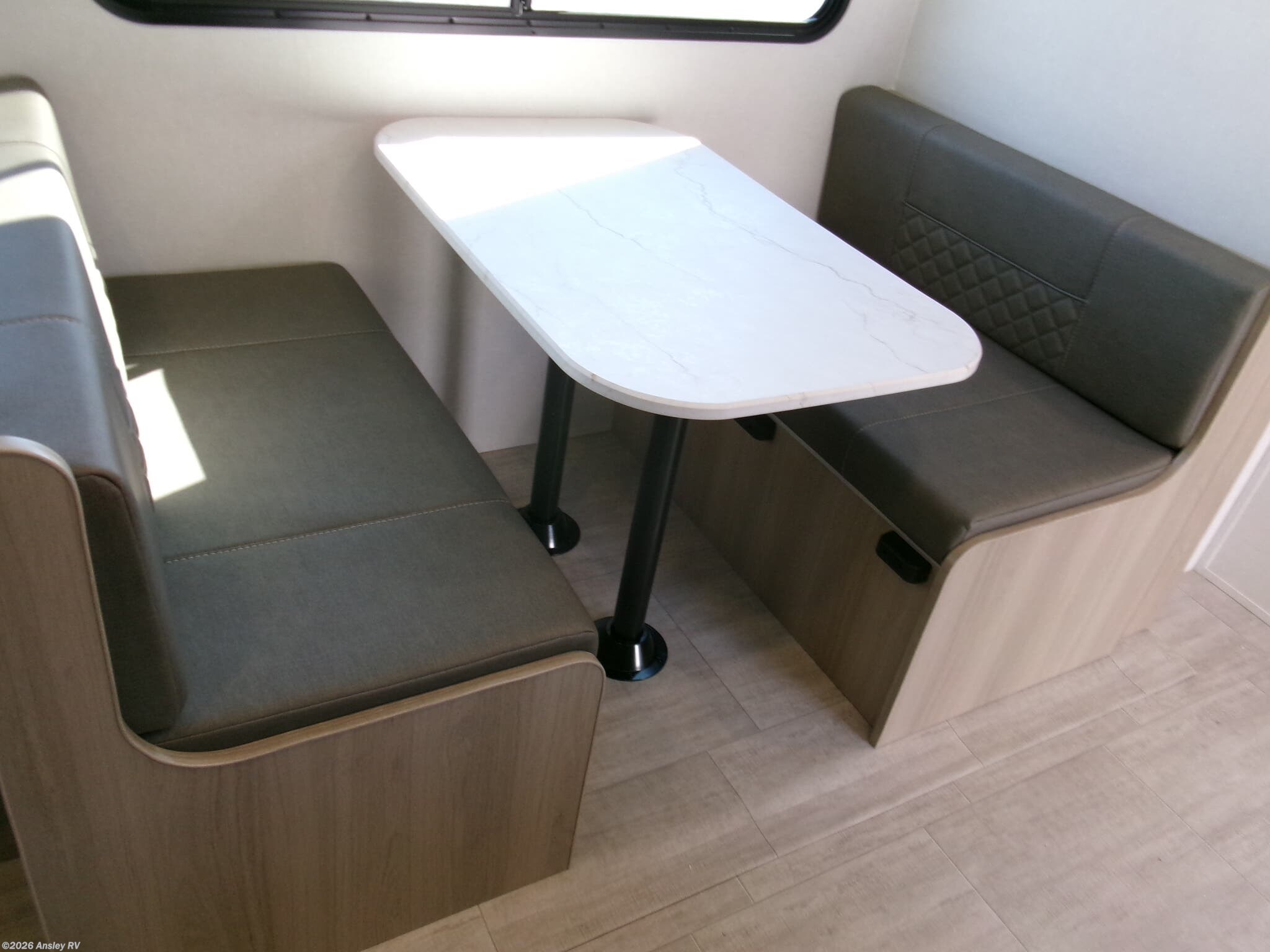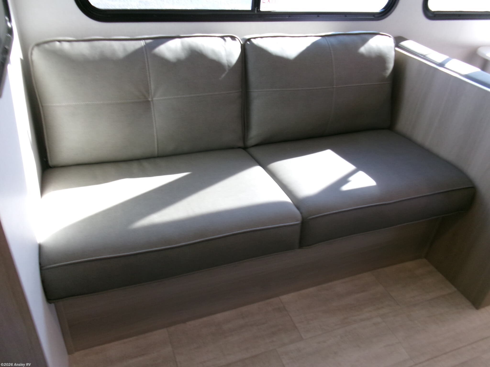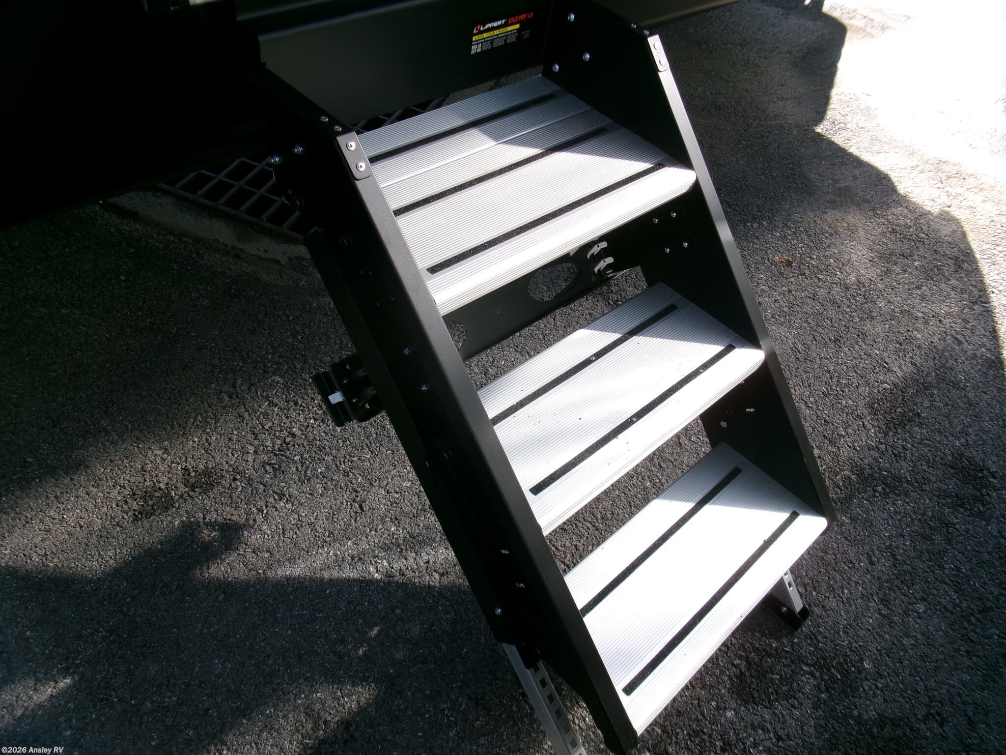 Your whole family will have a good time in this travel trailer! You can easily set up the 14' awning with LED lights, grab your camp chairs from the pass-through storage, and start making meals using the inside kitchen amenities like a refrigerator and three burner range. After mealtime, you can play games at the booth dinette before getting cleaned up in the full corner bathroom. The kids or guests can have their own double-size bunk beds, and you will love having a front residential queen bed at night. There is even a hinged entertainment center with a fireplace and a hidden pantry behind it to conveniently grab a snack and set up a movie!