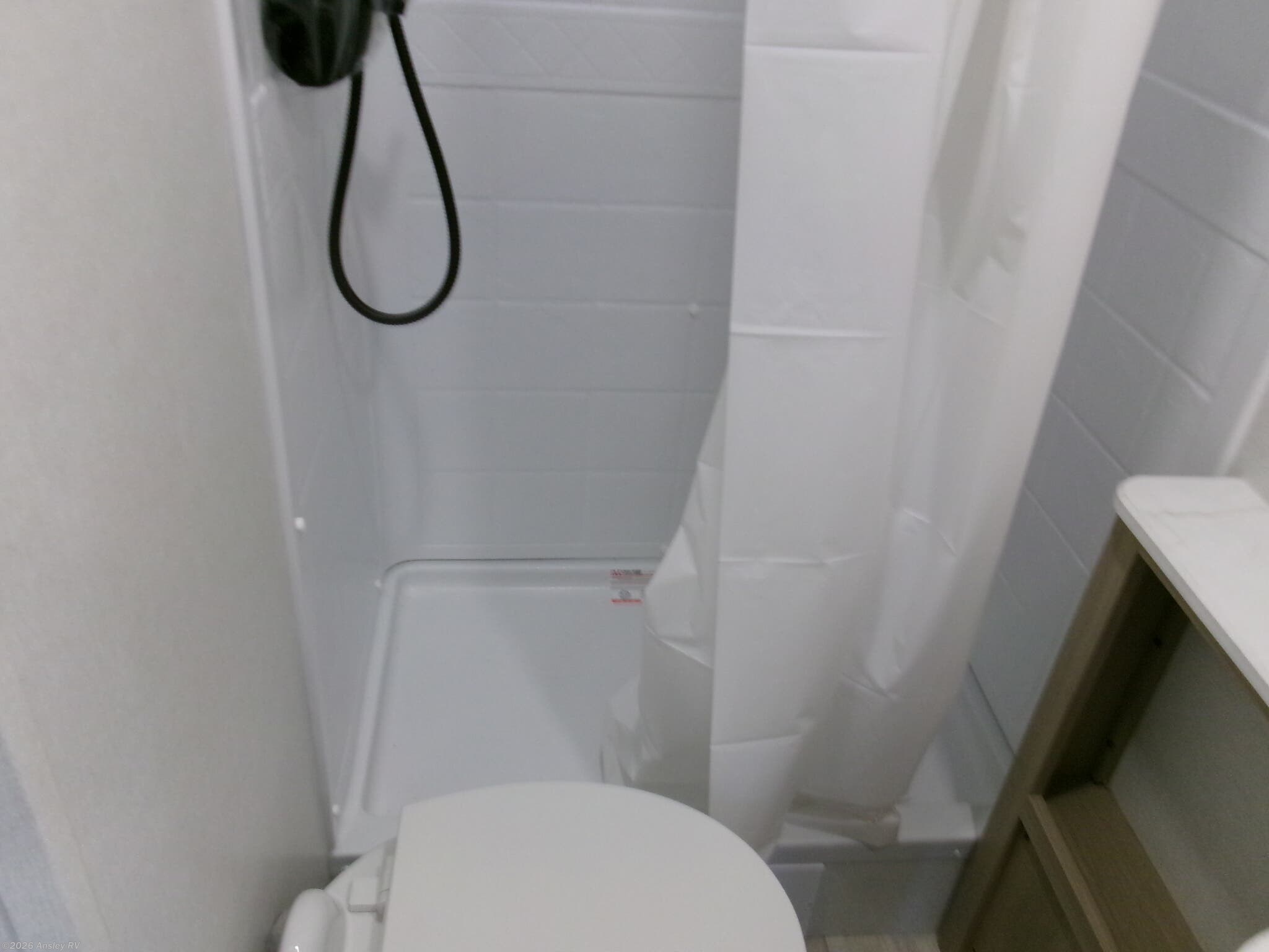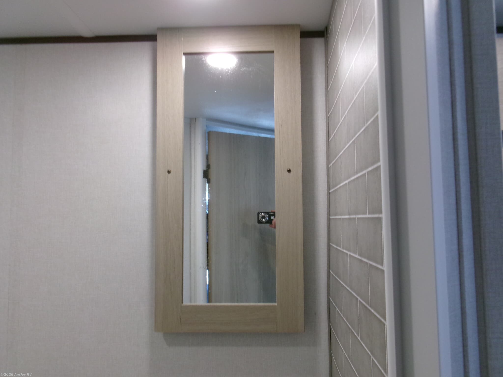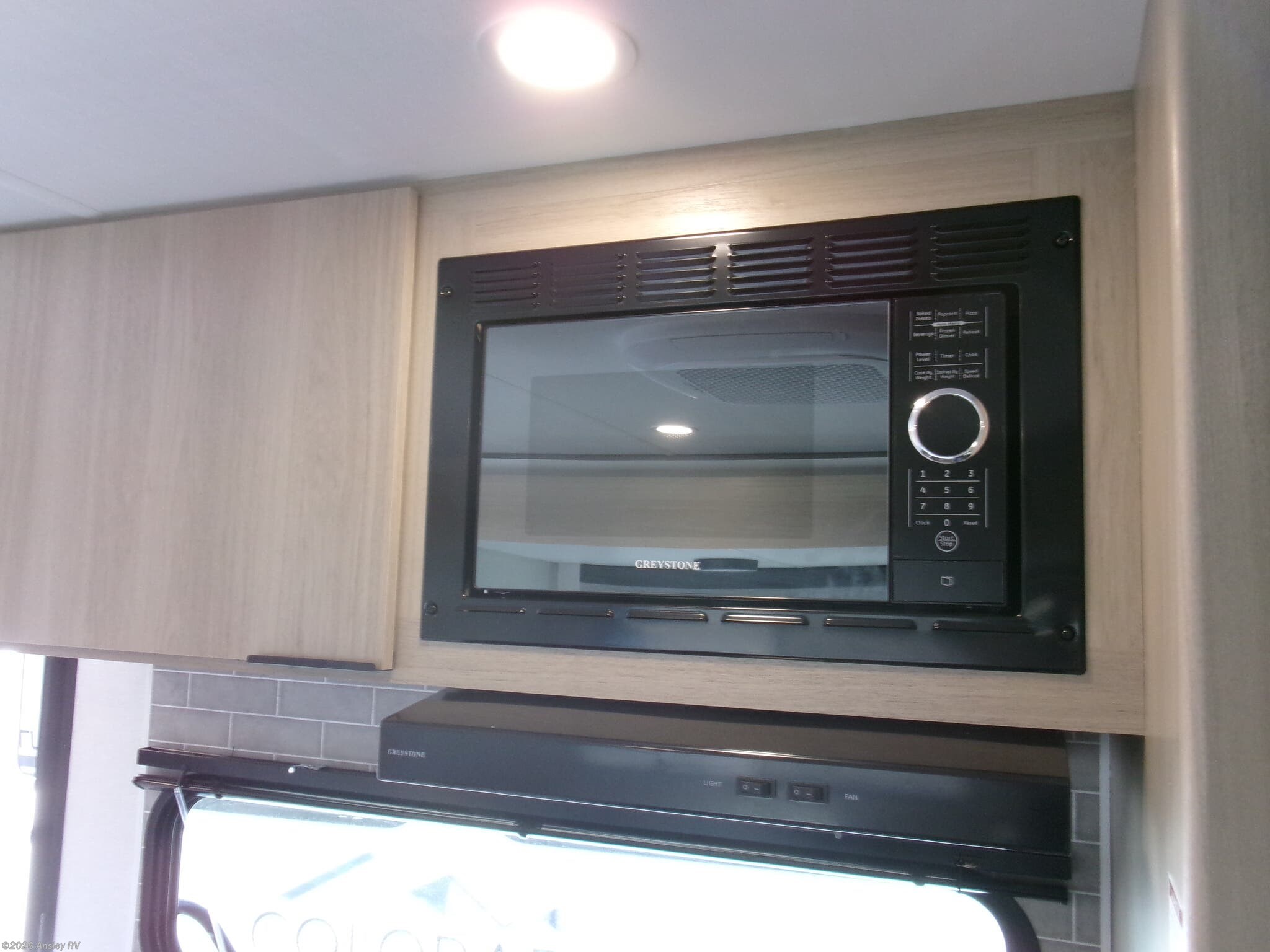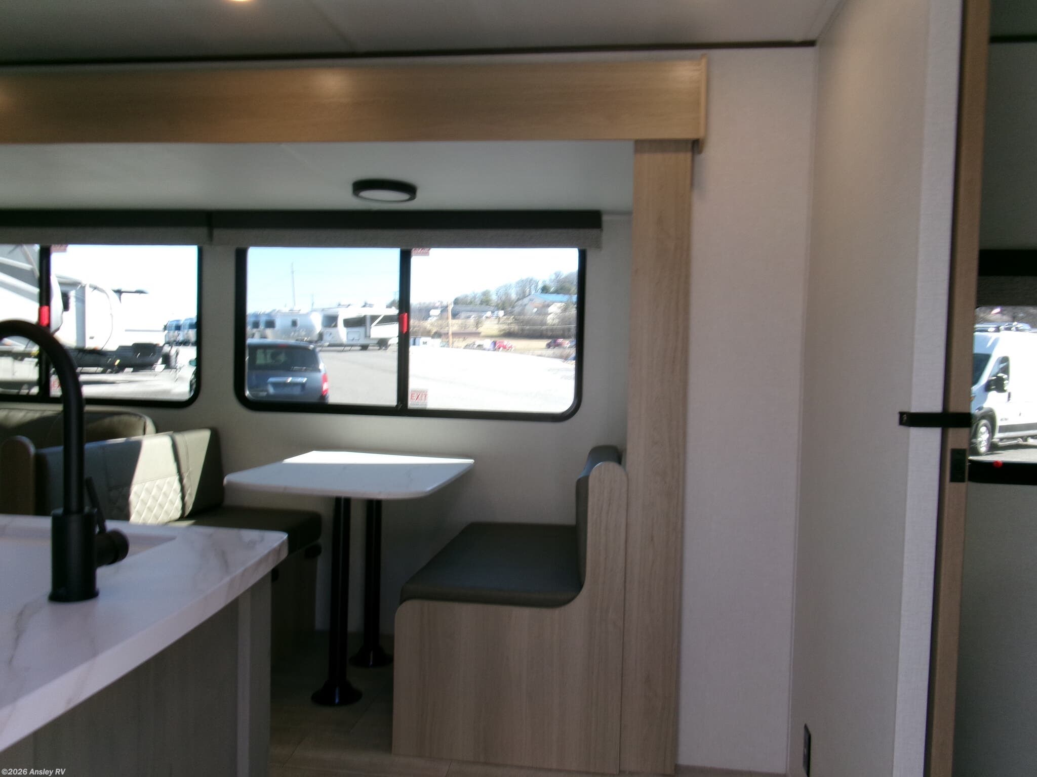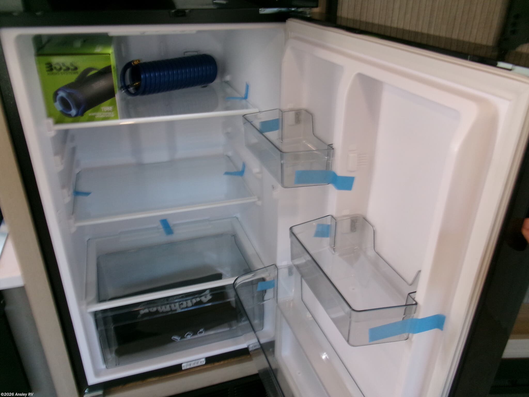 Your whole family will have a good time in this travel trailer! You can easily set up the 14' awning with LED lights, grab your camp chairs from the pass-through storage, and start making meals using the inside kitchen amenities like a refrigerator and three burner range. After mealtime, you can play games at the booth dinette before getting cleaned up in the full corner bathroom. The kids or guests can have their own double-size bunk beds, and you will love having a front residential queen bed at night. There is even a hinged entertainment center with a fireplace and a hidden pantry behind it to conveniently grab a snack and set up a movie!