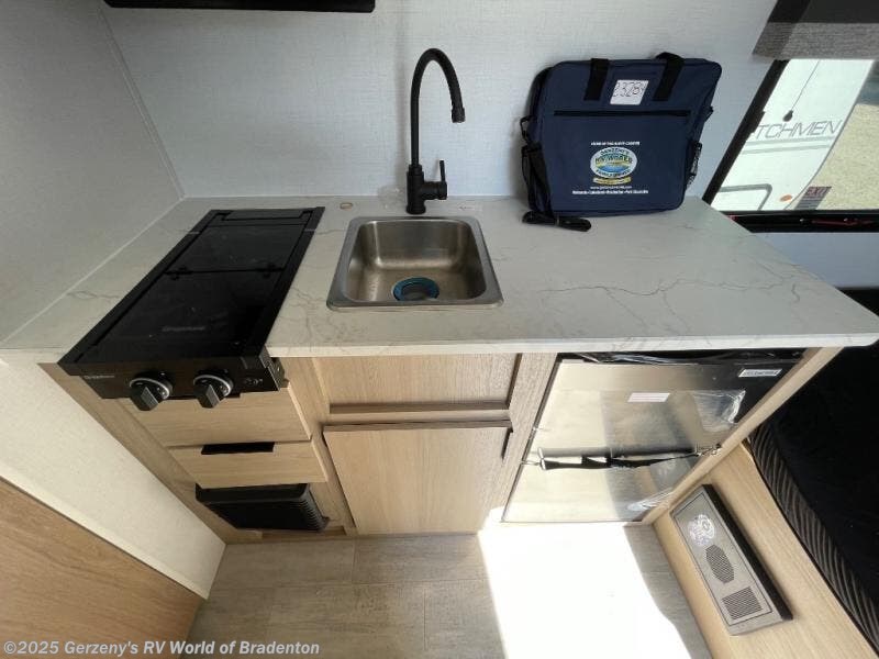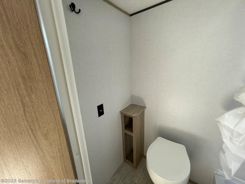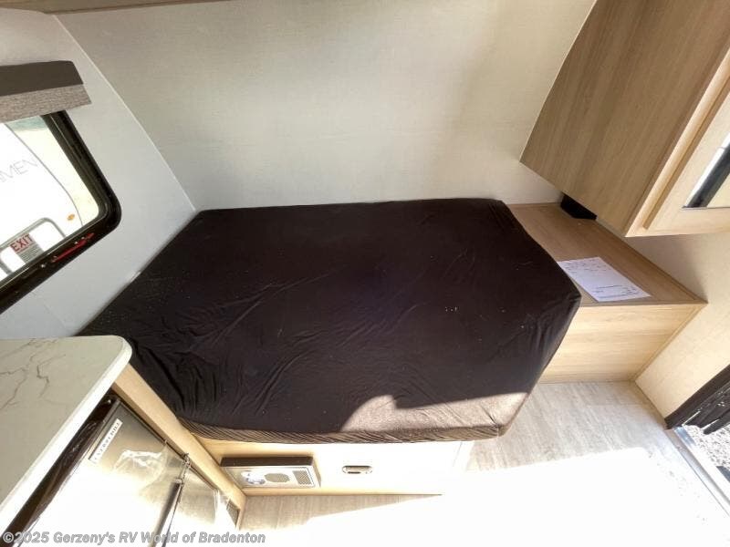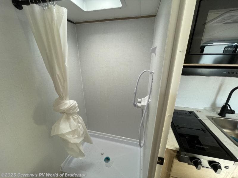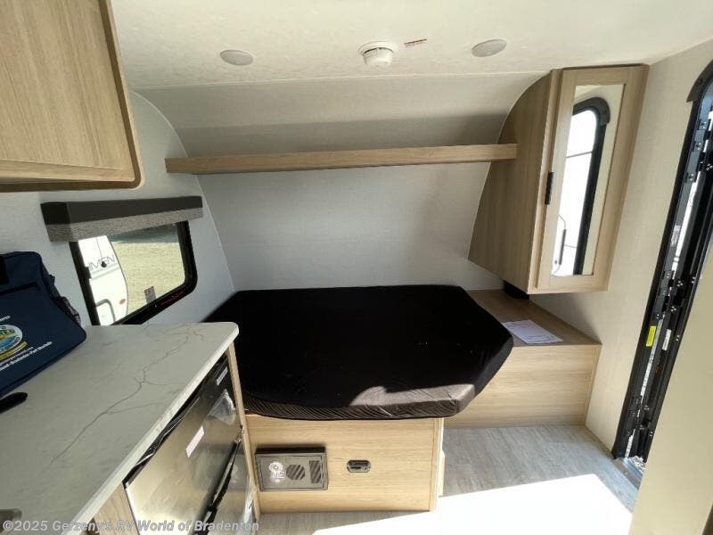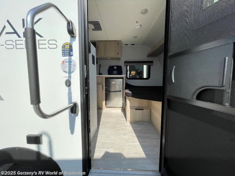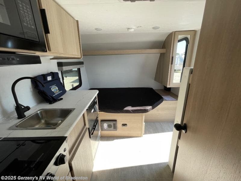 This family-friendly travel trailer is ideal for you! This model offers accommodations for all family members, starting with bunk beds for the kids (or kids at heart!), a queen bed for a comfortable night's sleep, and a private bathroom for personal convenience. Preparing meals has never been easier thanks to the two-burner cooktop, microwave for quick snacks, and a 3.3 cu. ft. refrigerator for keeping food and drinks fresh. You will be able to keep the RV organized due to an overhead cabinet for storing essentials, a closet for hanging clothes and gear, plus a pass-through storage for extra luggage or equipment.