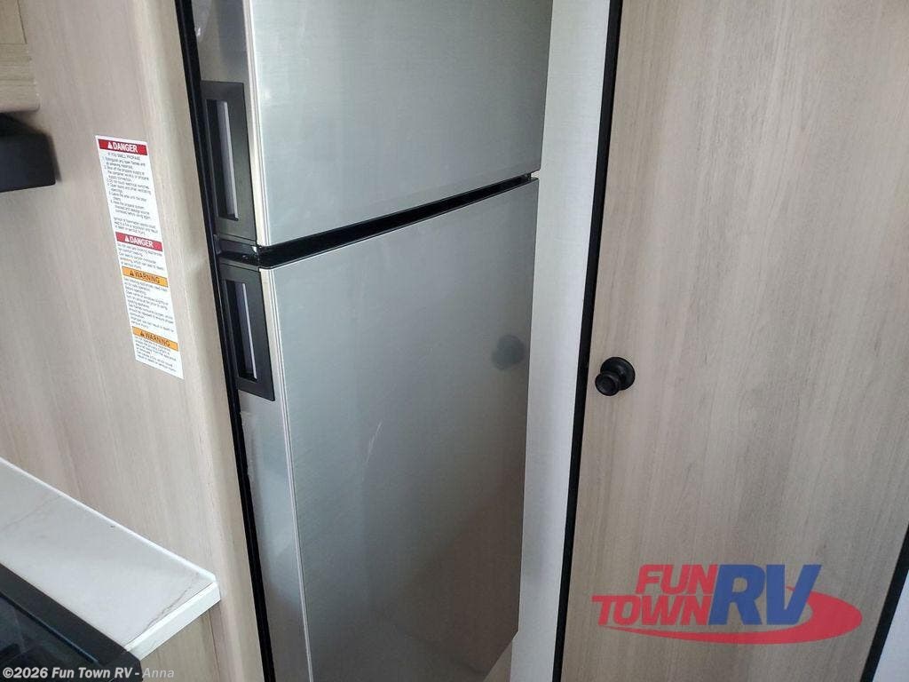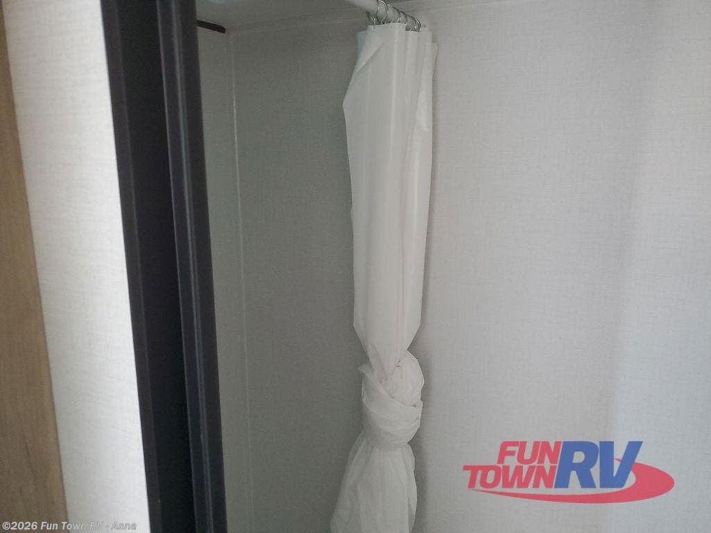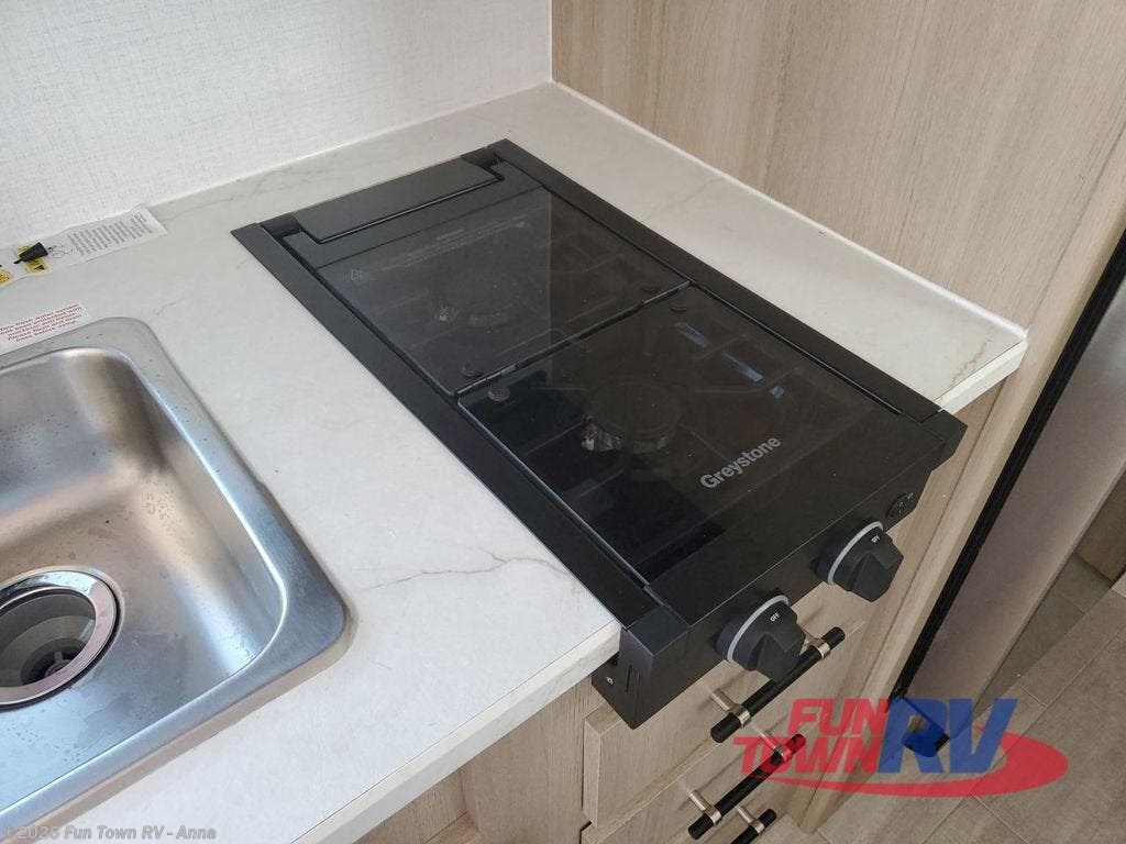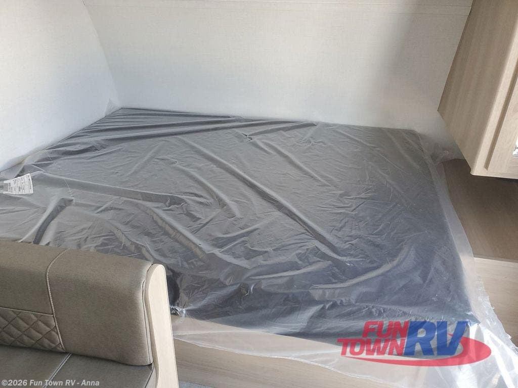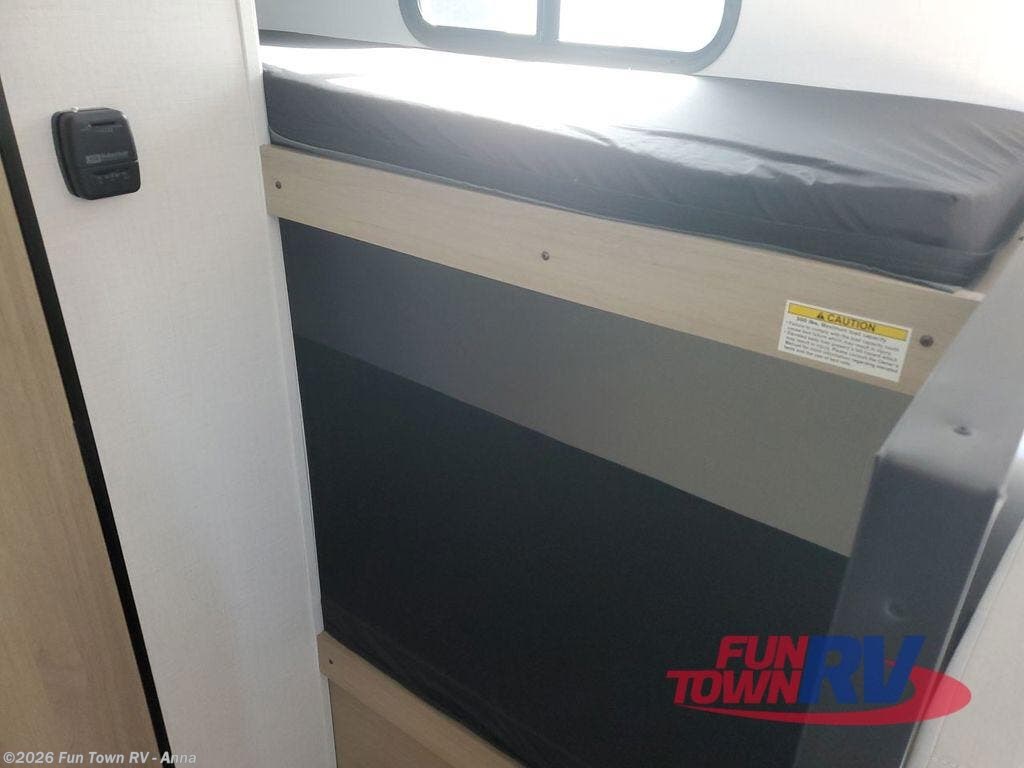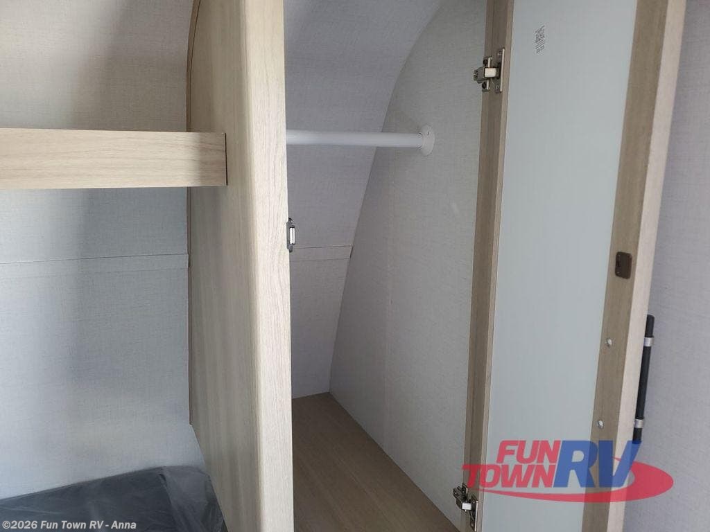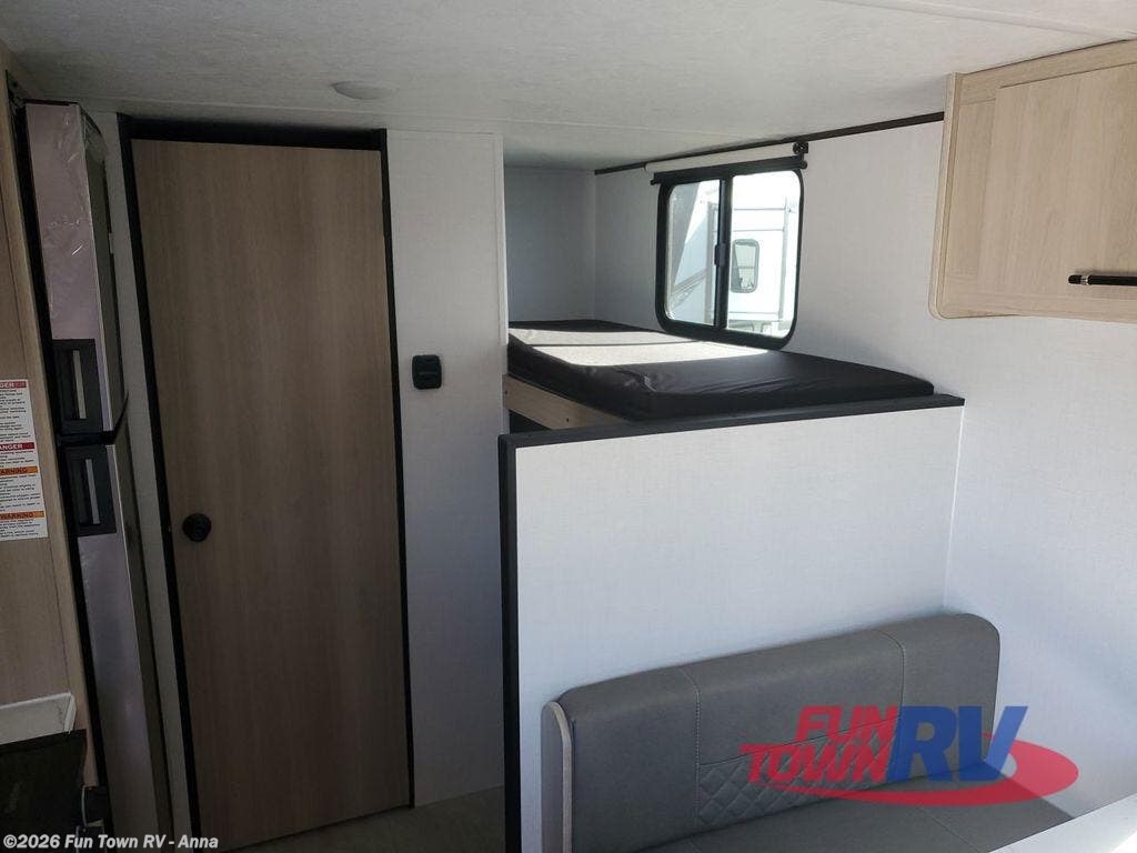 Luxurious travel trailer for the ultimate adventurer! This unit boasts spacious sleeping quarters, including bunk beds for kids or guests, and a plush queen bed for a restful night's sleep. Savor every meal with our premium kitchen features, including a microwave, two-burner cooktop, and spacious 10 cu. ft. refrigerator. The convenient amenities include a private bathroom with ample storage, an elegant booth dinette for meals or relaxation, overhead cabinets for organized storage, spacious closet for hanging clothes and gear, plus a pass-through storage for extra luggage or equipment.
