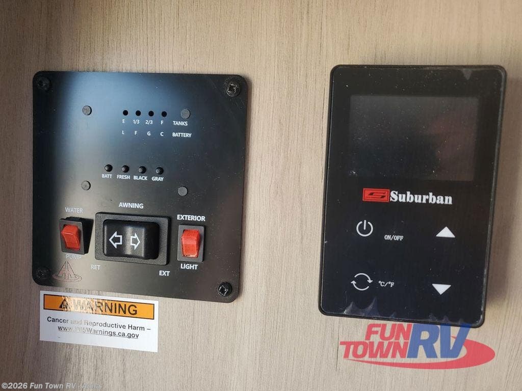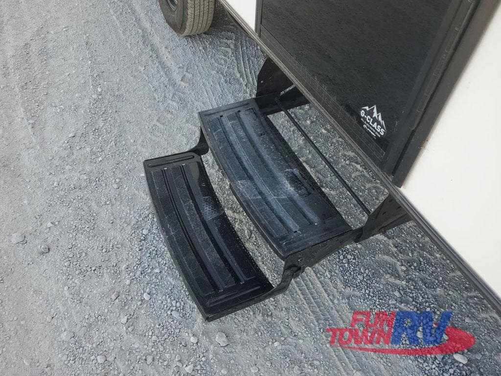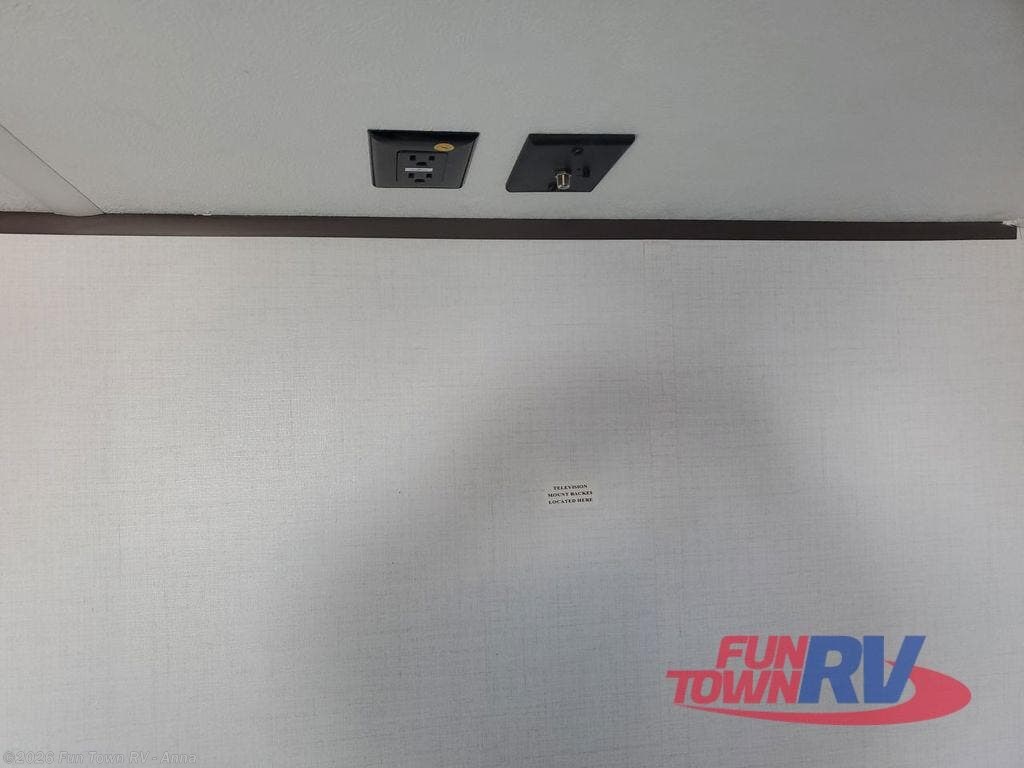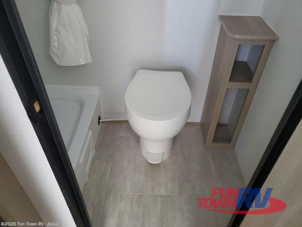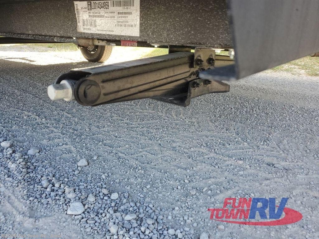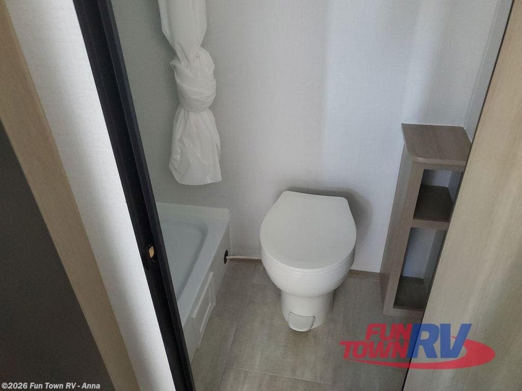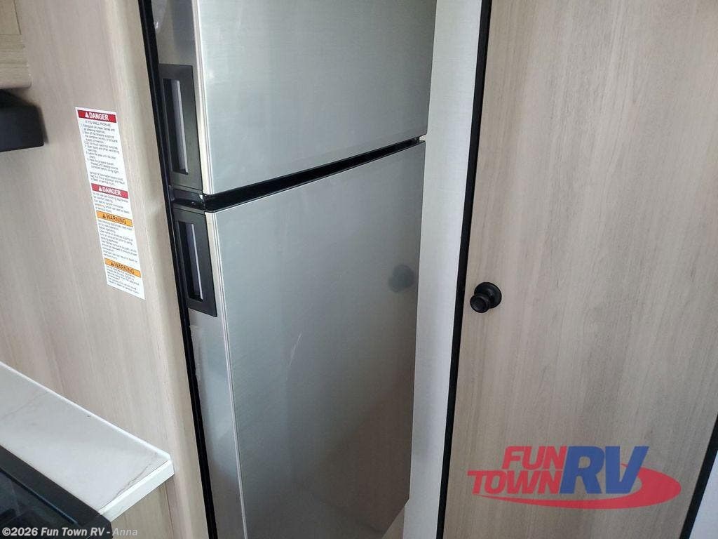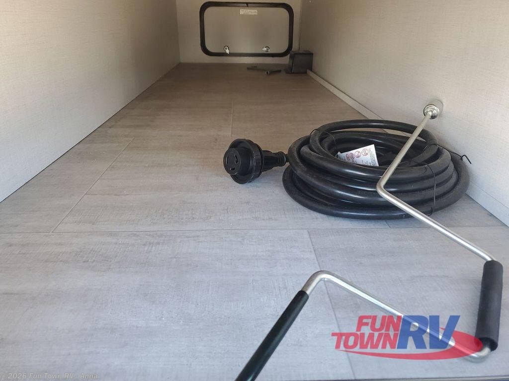 Luxurious travel trailer for the ultimate adventurer! This unit boasts spacious sleeping quarters, including bunk beds for kids or guests, and a plush queen bed for a restful night's sleep. Savor every meal with our premium kitchen features, including a microwave, two-burner cooktop, and spacious 10 cu. ft. refrigerator. The convenient amenities include a private bathroom with ample storage, an elegant booth dinette for meals or relaxation, overhead cabinets for organized storage, spacious closet for hanging clothes and gear, plus a pass-through storage for extra luggage or equipment.