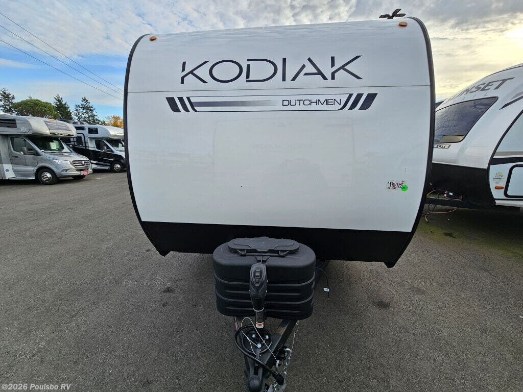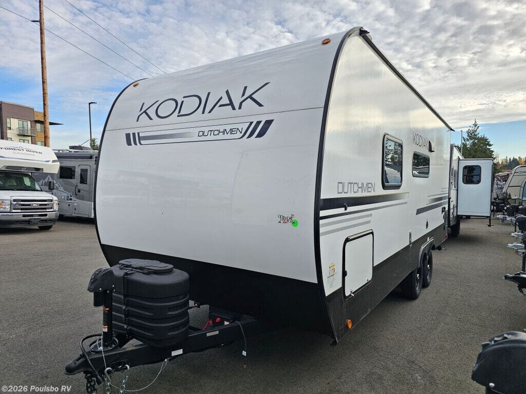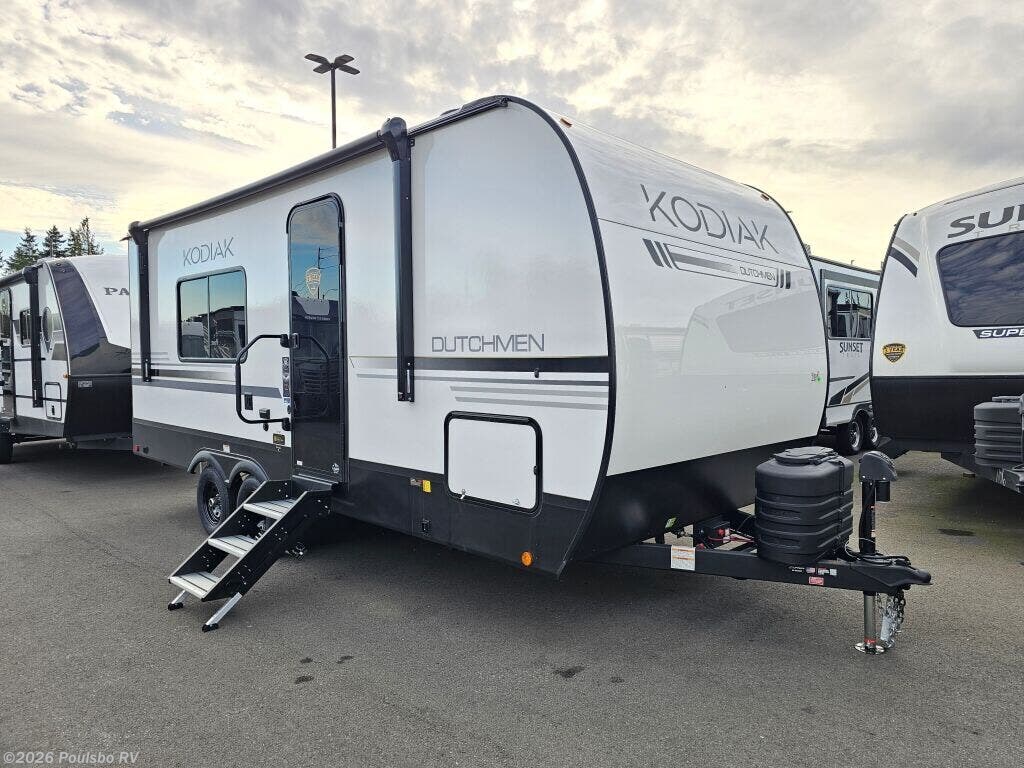 The 2026 Dutchmen Kodiak 201QB is a new travel trailer designed to elevate your outdoor adventures with its perfect balance of size and functionality. Measuring just over 24 feet in length, this Kodiak model offers a cozy yet spacious living area crafted to make every journey comfortable and memorable. With a sleeping capacity for four, it is an ideal choice for couples or small families seeking flexibility and ease on the road. The interior is thoughtfully arranged to maximize space, providing a welcoming atmosphere for relaxation and rejuvenation after a day of exploration. Convenience is enhanced with features such as an awning that creates additional outdoor living space, perfect for enjoying the fresh air and scenic views. Stability and ease of setup are supported by the precise hitch weight of 475.98 pounds and a manageable dry weight of 4,135 pounds, making towing straightforward and less stressful. Although it does not include slide outs or a bunkhouse, this Kodiak perfectly suits travelers who value simplicity without sacrificing comfort. Whether you are embarking on a weekend escape or an extended excursion, the Dutchmen Kodiak 201QB is built to support your lifestyle with reliable quality and thoughtful design. As a family owned, award winning local RV dealer with multiple locations in Sumner, Everett, Kent, and Mt. Vernon Washington, Poulsbo RV is here to help you find the perfect RV. Stock#: K6231, VIN: 4YDTKDJ24TZ970428.