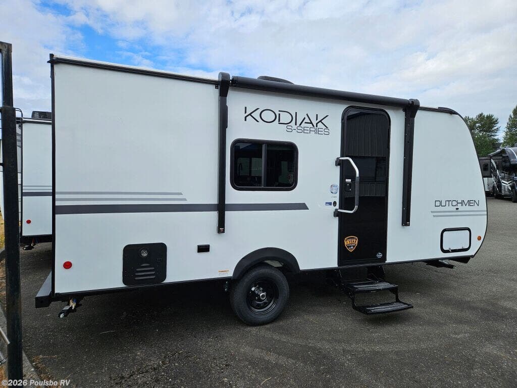 Step into the outdoors with confidence in the 2026 Dutchmen Kodiak 179RBS, an exceptional new travel trailer designed to merge comfort with practicality. This model showcases a compact length of 21.5 feet, making it a superb choice for those seeking a balance between nimbleness on the road and spaciousness within. Accommodating up to three occupants, the trailer features a well-structured living area that invites relaxation after a day of adventures. The smartly designed kitchen area ensures that meal preparation is a breeze, while the cozy seating provides the perfect spot to unwind or enjoy quality time with family and friends. Weighing in at a dry weight of 3,190 pounds and with a hitch weight of 405 pounds, the Kodiak 179RBS is easy to tow, opening up limitless possibilities for travel and exploration. Without slide-outs, this trailer is meticulously designed, ensuring that every space is utilized efficiently, providing an inviting atmosphere without feeling cramped. The flexible sleeping arrangements ensure everyone gets a good night?s sleep, enhancing your camping experience. As a family-owned, award-winning local RV dealer with multiple locations in Sumner, Everett, Kent, and Mt. Vernon Washington, Poulsbo RV is dedicated to helping you find the perfect RV for your next journey. Prepare to embrace the RVing lifestyle, as this model marries reliability with ease of use, making every trip memorable. Stock#: E5955, VIN: 4YDTKDG16TJ970136.