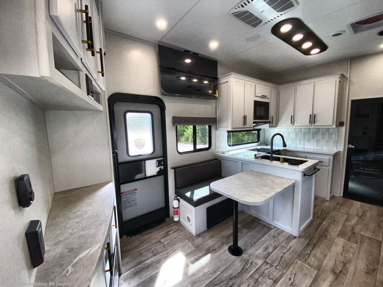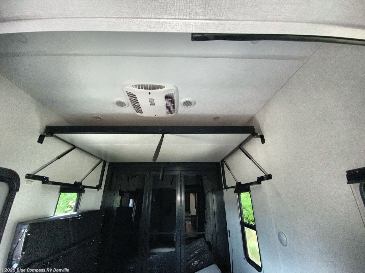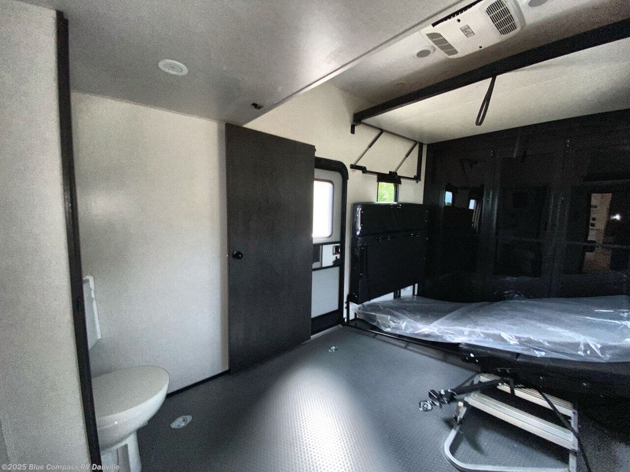 Load up your favorite off-road toys, grab a few friends and head out for a weekend of fun! This Voltage V-Series features a 14' garage with sleeping for seven or eight with the Bed Lift System over the dual sofas and dinette which convert to more sleeping in the garage area, a loft, and private front bedroom with queen bed. The main combined kitchen and living space features a reclining sofa with foot rest housed in the large slide that also includes a 16 cu. ft. 12V refrigerator and pantry for all of your food storage needs. There are full kitchen and bath amenities to keep you fueled and clean, and you will also enjoy the 40" TV and fireplace when relaxing inside. A 21' awning offers additional living space outside, and there is a Pac & Stack half bath in the garage for added convenience when coming in from a ride located beneath the loft. This unit also offers ample storage with a full pass-through compartment outside, and inside cabinets, pantry storage, plus wardrobe, dresser, and under bed storage as well.