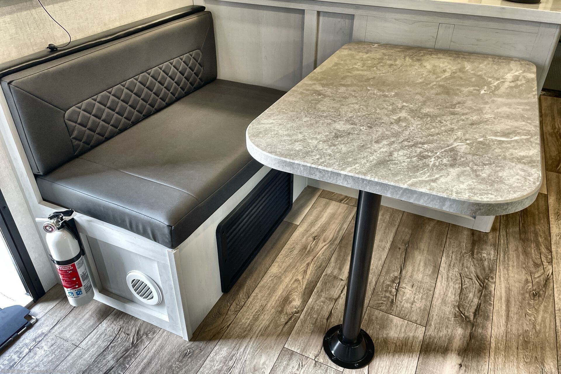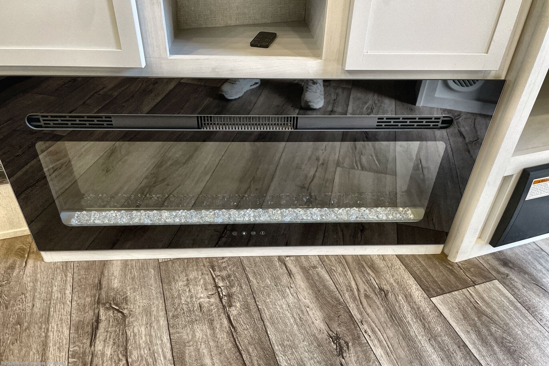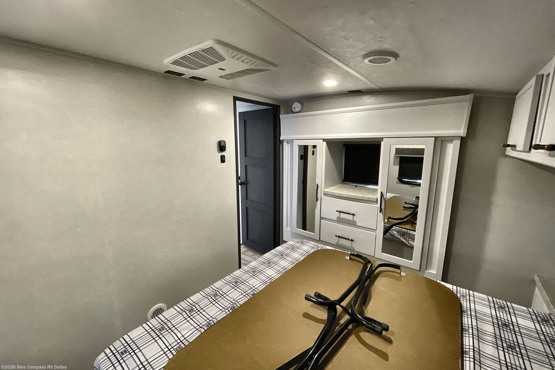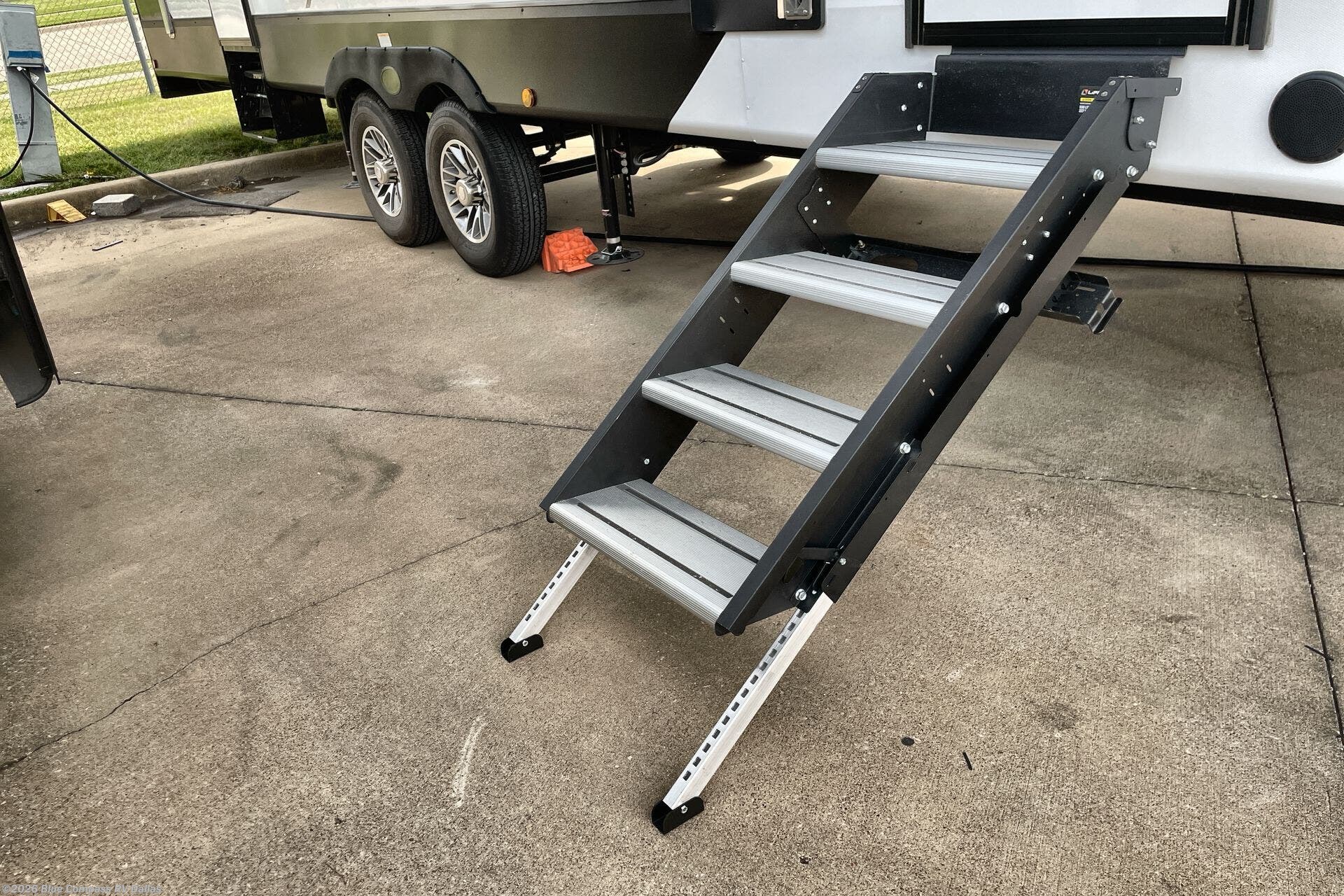 Load up your favorite off-road toys, grab a few friends and head out for a weekend of fun! This Voltage V-Series features a 14' garage with sleeping for seven or eight with the Bed Lift System over the dual sofas and dinette which convert to more sleeping in the garage area, a loft, and private front bedroom with queen bed. The main combined kitchen and living space features a reclining sofa with foot rest housed in the large slide that also includes a 16 cu. ft. 12V refrigerator and pantry for all of your food storage needs. There are full kitchen and bath amenities to keep you fueled and clean, and you will also enjoy the 40" TV and fireplace when relaxing inside. A 21' awning offers additional living space outside, and there is a Pac & Stack half bath in the garage for added convenience when coming in from a ride located beneath the loft. This unit also offers ample storage with a full pass-through compartment outside, and inside cabinets, pantry storage, plus wardrobe, dresser, and under bed storage as well.