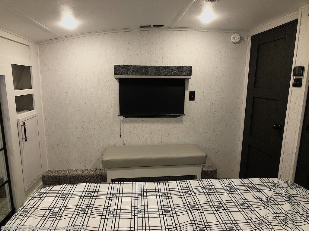 The Voltage V-Series by Dutchmen RV is a smaller and lighter weight choice when it comes to a toy hauler. These were designed with the same comforts that you would find in the standard Voltage models with the Signature Series collection including glazed cabinets with raised panel cabinet doors, modern hardware throughout, upgraded finishes and custom paint and stain. You will also enjoy the tankless water heater, garage Bed Lift System, Tuff Ply garage floor, and weight assisted ramp door for ease in loading and unloading your toys. A few bonus features like a 50" walk-in shower, 40" fireplace, and 30 gallon fuel station just makes your adventures that much more enjoyable! Come choose the Voltage V-Series as your new lightweight companion toy hauler today!