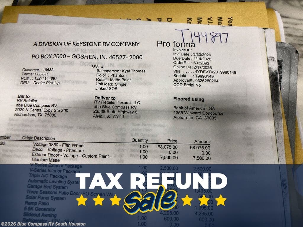 Request More Info on this 2026 Dutchmen Voltage V-Series 3850 Offered for sale by Blue Compass RV South Houston
