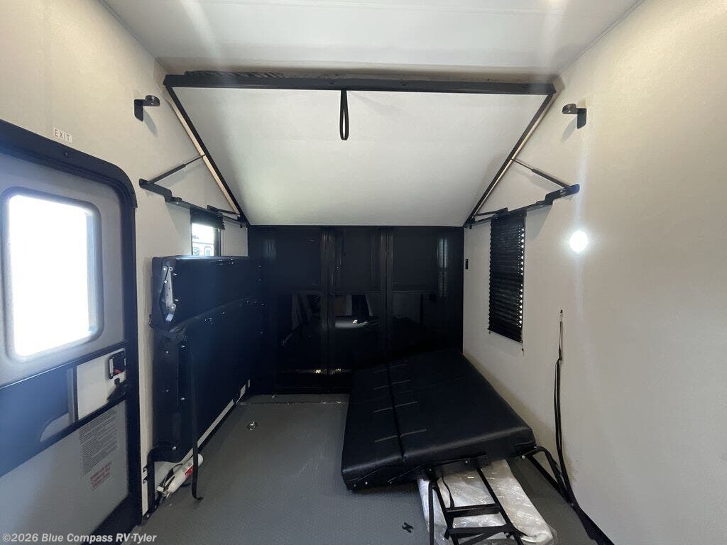 This toy hauler includes dual entry doors for a smooth flow of traffic, a bath and a half for hassle-free camping, plus a 14' separate garage for your favorite toys! The garage also includes a bed lift system and lay-flat Happi Jack seating plus a loft bed for more sleeping space. You'll find your own space up front in the private bedroom, complete with a king bed slide out and a large front closet to keep your things organized. And the full bath with a walk-in shower is close by for easy nighttime use! Everyone can meet in the middle kitchen and living room to enjoy the reclining sofa with a footrest and 50" TV while the chef whips up dinner on the three burner cooktop! There is also a kitchen island for more counter space plus a pantry and 16 cu. ft. 12V refrigerator for food storage!