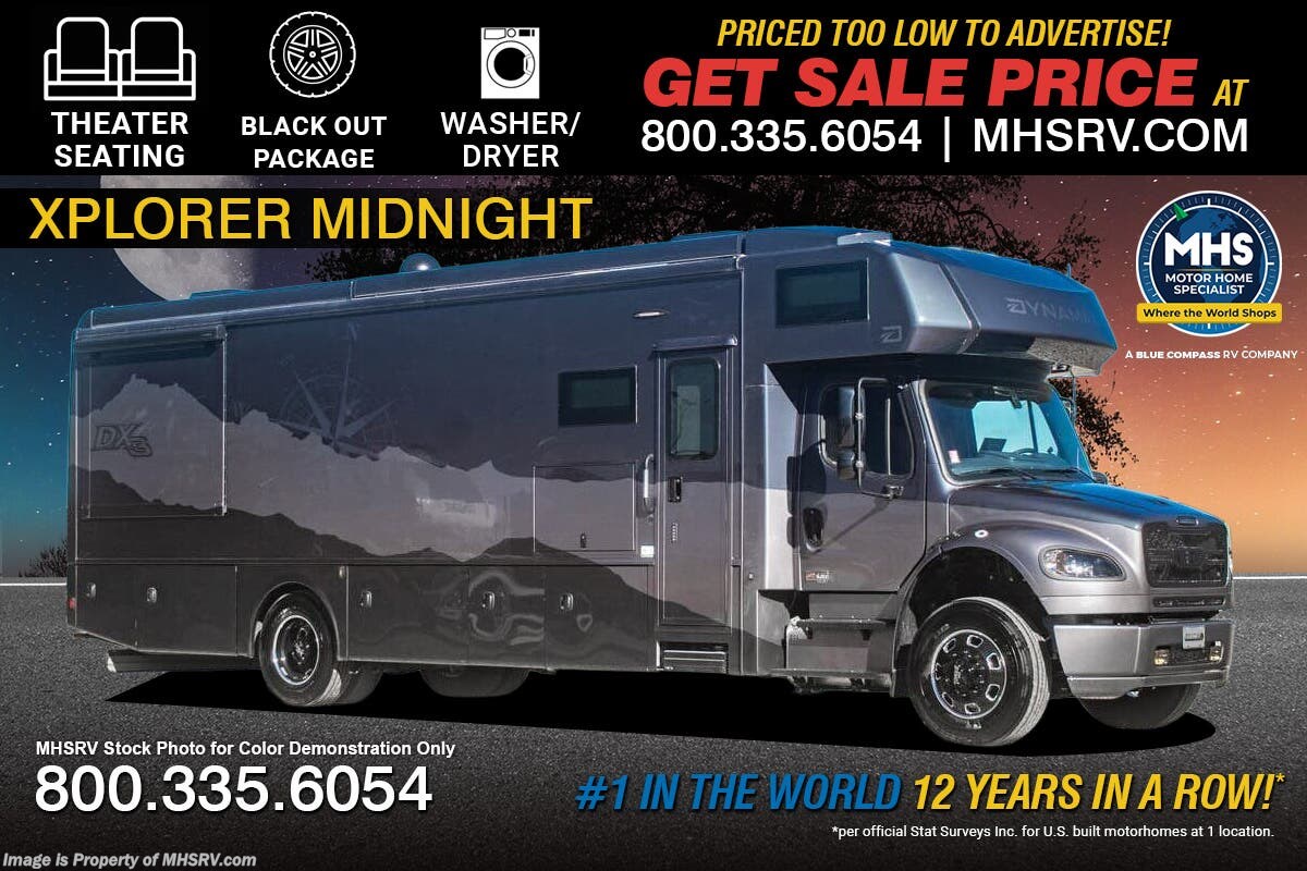 - Xplorer Package Shop hundreds of motorhomes including Super C RVs at MHSRV! Choose from Entegra Accolade – Accolade XL – Accolade XT – Esteem XL – Dynamax DX3 – Dynaquest XL – Europa – isata 5 - Thor Magnitude – Magnitude Grand – Omni – Omni Trail – Pasadena – Inception - East to West Bravado – Nexus Ghost – Wraith – Rebel – Verrado and much more. We also sell quality pre-owned models such as Jayco Seneca XT – Seneca – Seneca Prestige - Greyhawk XL – Tiffin Allegro Bay – Newmar Super Star – Supreme Aire – Renegade Veracruz – Valencia – Verona – Verona LE – Explorer – Coachmen Entourage and much more. Visit for our complete line-up and the sale prices that have made us the #1 volume selling motor home dealership in the world 12 years in a row! About This RV This DX3 features the all new plus chassis with redesigned dash, Cummins L9 turbo diesel engine making 360HP & 1,150 ft.-lbs of torque, air brakes & C-Brake by Jacobs with high/medium/low braking dash switch. About Us For more details on this unit, our full inventory, brochures, window stickers, videos, photos, and customer reviews, visit or call 800-335-6054 for the Texas location or 334-288-0331 for our Alabama location. At Motor Home Specialist, we never charge prep or orientation fees. Every new RV sale includes a multi-point inspection, full interior and exterior detail. At our Texas location we also offer a high-pressure rain booth test—an exclusive service in the industry. You'll also receive a comprehensive coach orientation with an MHSRV technician and a complimentary night in our delivery park with full hook-ups at our Texas Location. --Why Pay More? Why Settle for Less?—