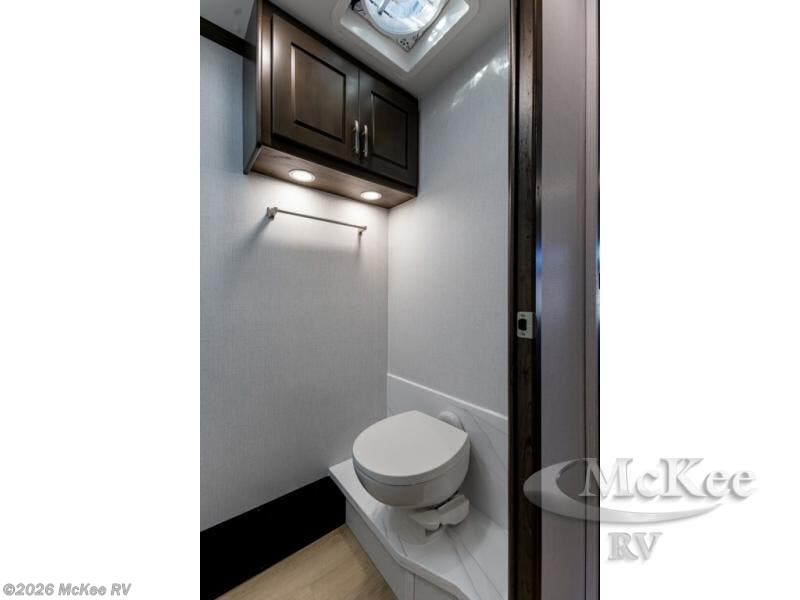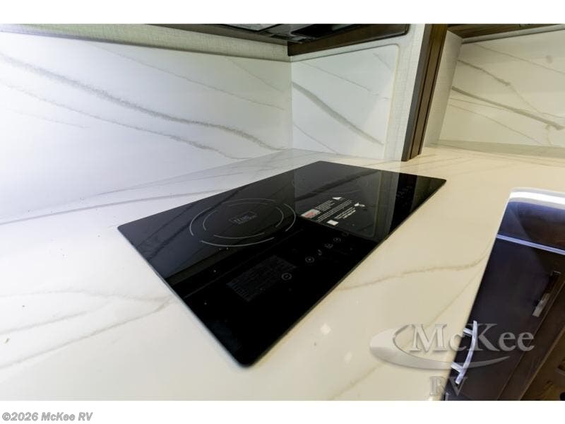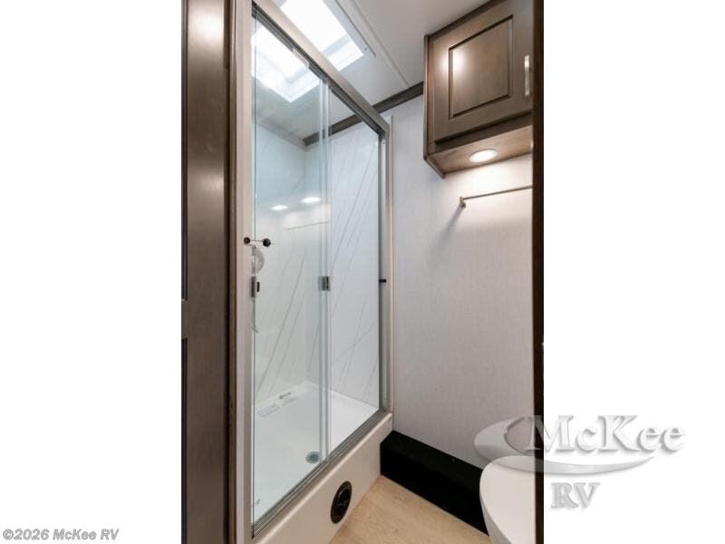 Nothing will stop you from experiencing first-class adventures with this DX3 Super C diesel motorhome! The king-size bed in the rear private bedroom will deliver the ultimate relaxation each night, and the bedroom 32" LED TV will let you watch your favorite movie before bed. Step foot into the fiberglass shower with glass shower door each morning and welcome the morning sunlight through the shower skylight above. After you are all ready for the day, you can grab a quick breakfast from the pantry or spend a little more time preparing a full meal on the three-burner range.