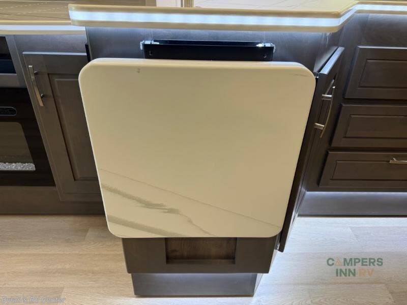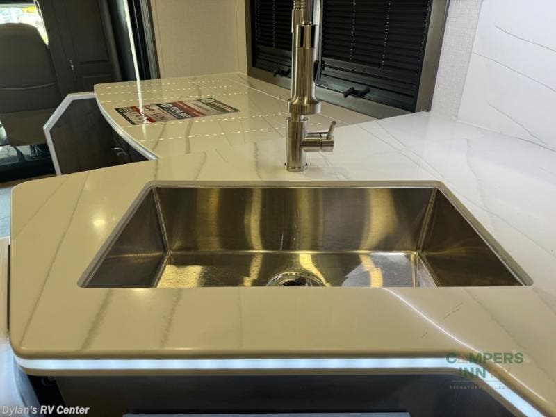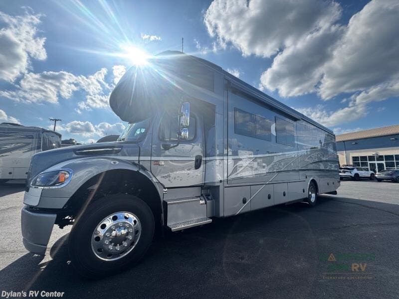 Dynamax DX3 Super C diesel motorhome 37TS highlights: Tri-Fold Sleeper Sofa Convection Microwave Residential Refrigerator Exterior Entertainment 50" Pop-Up TV with Fireplace Nothing will stop you from experiencing first-class adventures with this DX3 Super C diesel motorhome! The king-size bed in the rear private bedroom will deliver the ultimate relaxation each night, and the bedroom 32" LED TV will let you watch your favorite movie before bed. Step foot into the Polymarm shower with a glass shower door each morning and welcome the morning sunlight through the shower skylight above. After you are all ready for the day, you can grab a quick breakfast from the pantry or spend a little more time preparing a full meal on the three-burner range. You'll have a hard time finding anything else that quite compares to the powerful precision found on the Dynamax DX3 Super C diesel motorhome! These elegant coaches will feel like a dream home with their top-notch kitchens, deluxe bedrooms, comfortable lounge areas, and exceptional exteriors. The cab has leatherette driver/passenger air ride seats, a quad-view camera system, and a Kenwood 10" touchscreen dash infotainment system to keep you comfortable while you travel, and the King Dish Tailgater Pro Premium HD Satellite will deliver entertainment for the living room TV, bedroom TV, and exterior TV. You'll also find an 8kW OnanĀ® diesel generator with auto transfer switch to make it easy to adventure since you will have your own power source. 2025 Model Year Specs and Info Shown. Please ask for exact details on this RV. Please contact Campers Inn Signature RV today!