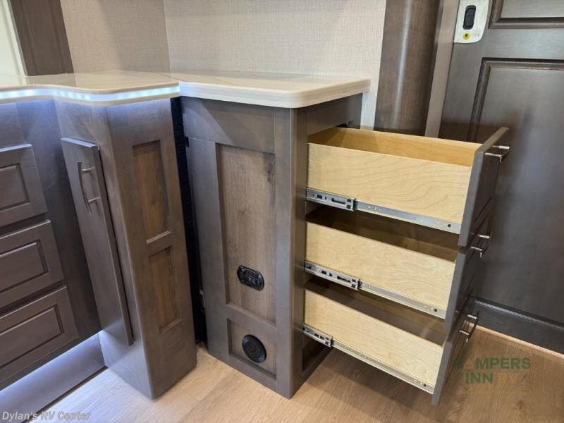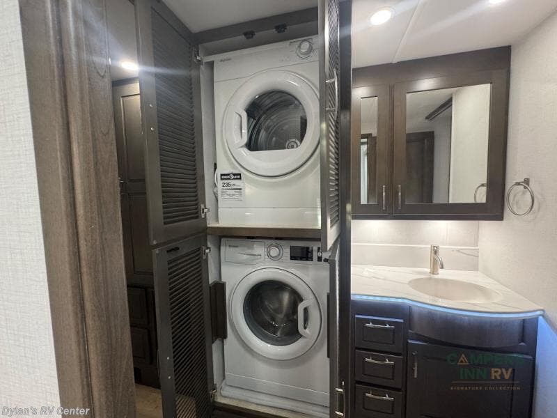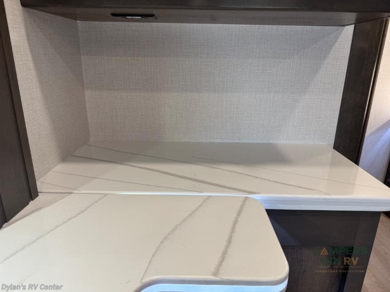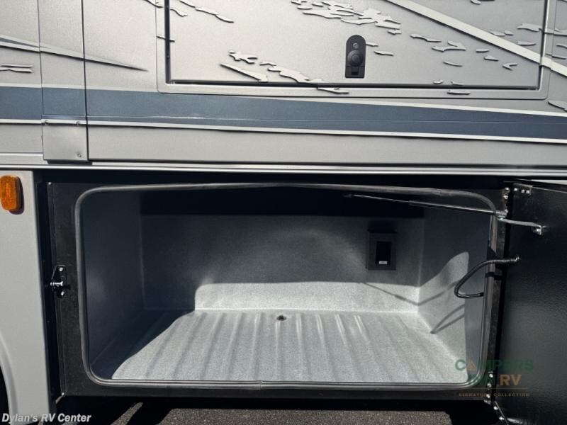 Dynamax DX3 Super C diesel motorhome 37TS highlights: Tri-Fold Sleeper Sofa Convection Microwave Residential Refrigerator Exterior Entertainment 50" Pop-Up TV with Fireplace Nothing will stop you from experiencing first-class adventures with this DX3 Super C diesel motorhome! The king-size bed in the rear private bedroom will deliver the ultimate relaxation each night, and the bedroom 32" LED TV will let you watch your favorite movie before bed. Step foot into the Polymarm shower with a glass shower door each morning and welcome the morning sunlight through the shower skylight above. After you are all ready for the day, you can grab a quick breakfast from the pantry or spend a little more time preparing a full meal on the three-burner range. You'll have a hard time finding anything else that quite compares to the powerful precision found on the Dynamax DX3 Super C diesel motorhome! These elegant coaches will feel like a dream home with their top-notch kitchens, deluxe bedrooms, comfortable lounge areas, and exceptional exteriors. The cab has leatherette driver/passenger air ride seats, a quad-view camera system, and a Kenwood 10" touchscreen dash infotainment system to keep you comfortable while you travel, and the King Dish Tailgater Pro Premium HD Satellite will deliver entertainment for the living room TV, bedroom TV, and exterior TV. You'll also find an 8kW Onan® diesel generator with auto transfer switch to make it easy to adventure since you will have your own power source. Please ask for exact details on this RV. Please contact Campers Inn Signature RV today!