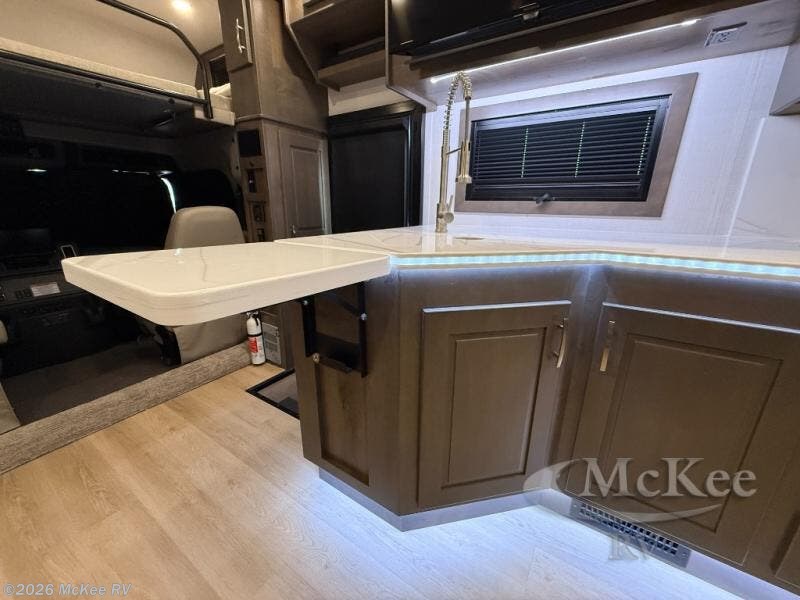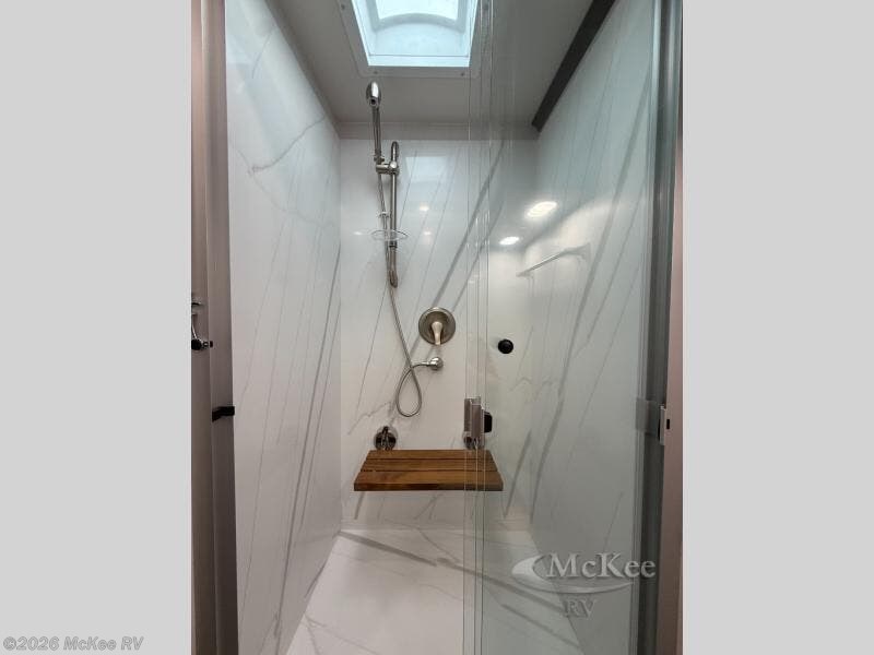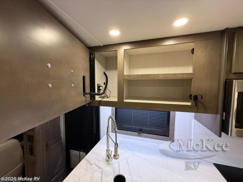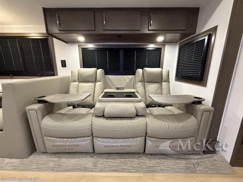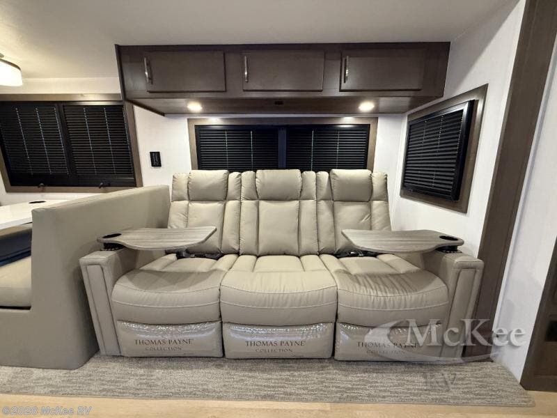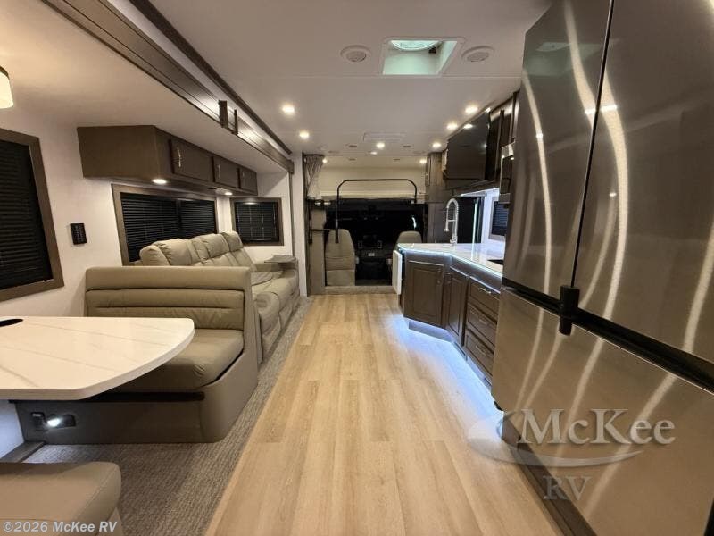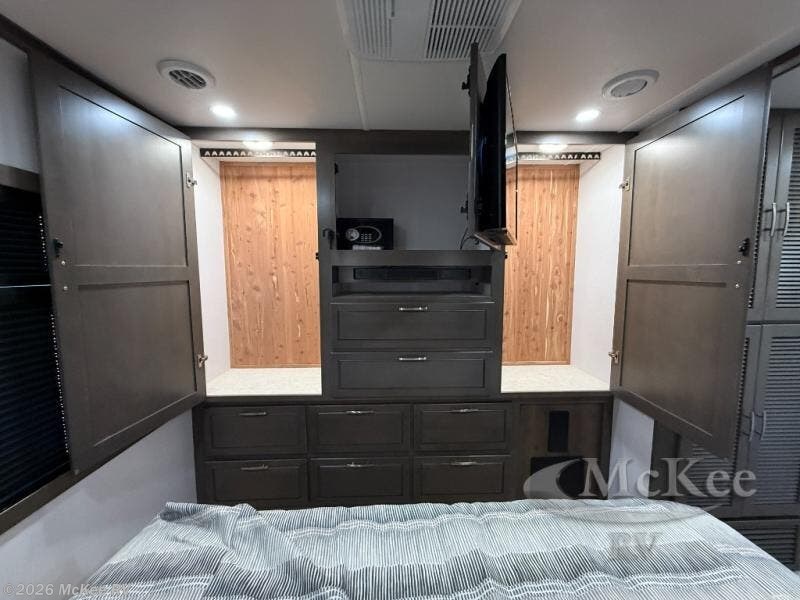 You will have everything you need for a comfortable trip in this motorhome! The rear private bedroom has a king bed slide across from a dresser with a 32" TV above it and wardrobes on either side. With the separated bathroom, one person can freshen up with the private toilet and radius shower while another washes up with the sink next to the area prepped to add an optional washer and dryer. Prepare your best meals with the two burner cooktop and countertop extension, then enjoy them at the Dream Dinette. The dinette and tri-fold sleeper sofa can transform into extra sleeping spaces, and if you need more sleeping spaces then you can choose to add the optional bunk over cab. Watch the big game outside with the 32" TV at the exterior entertainment center while staying protected by the power armless awning with LED lighting!